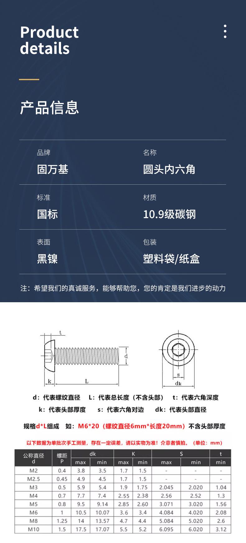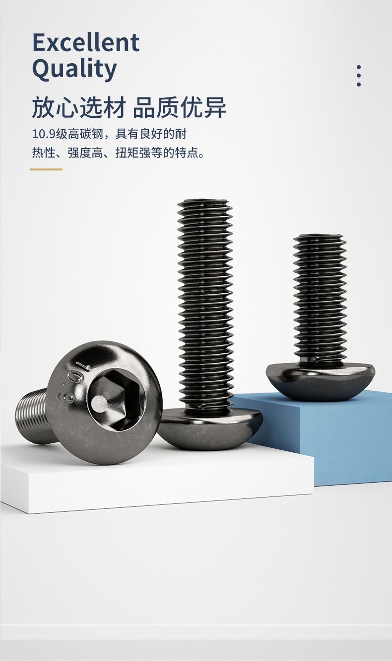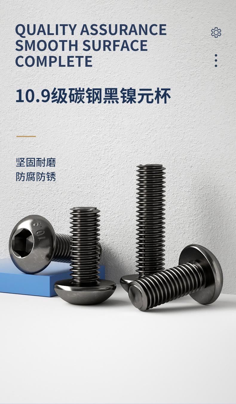 Tornillo de cabeza hueca hexagonal de níquel negro de grado 10,9, tornillo de cabeza plana, tornillo de cabeza hueca hexagonal, perno de copa redonda M23M4M5M10