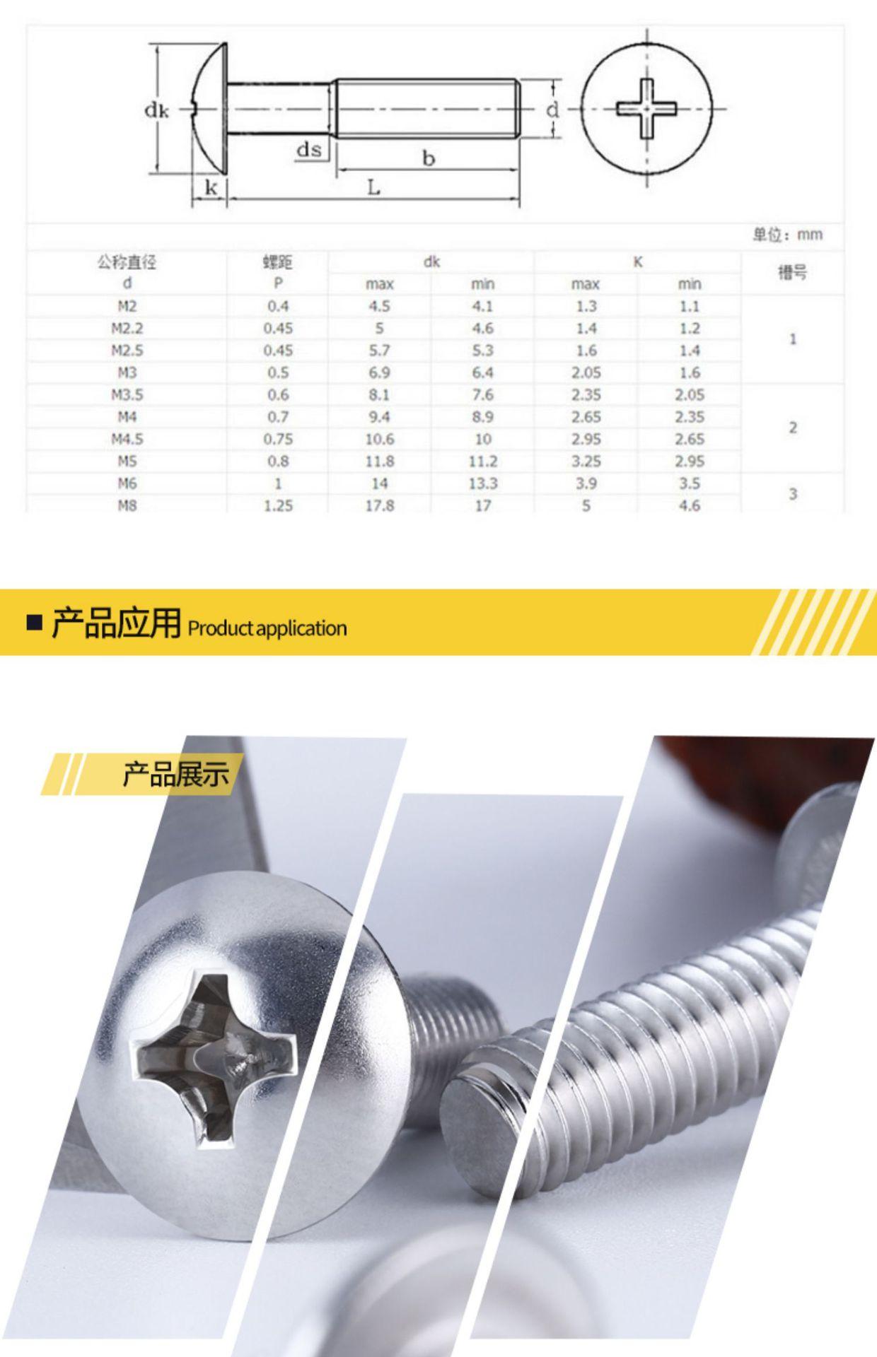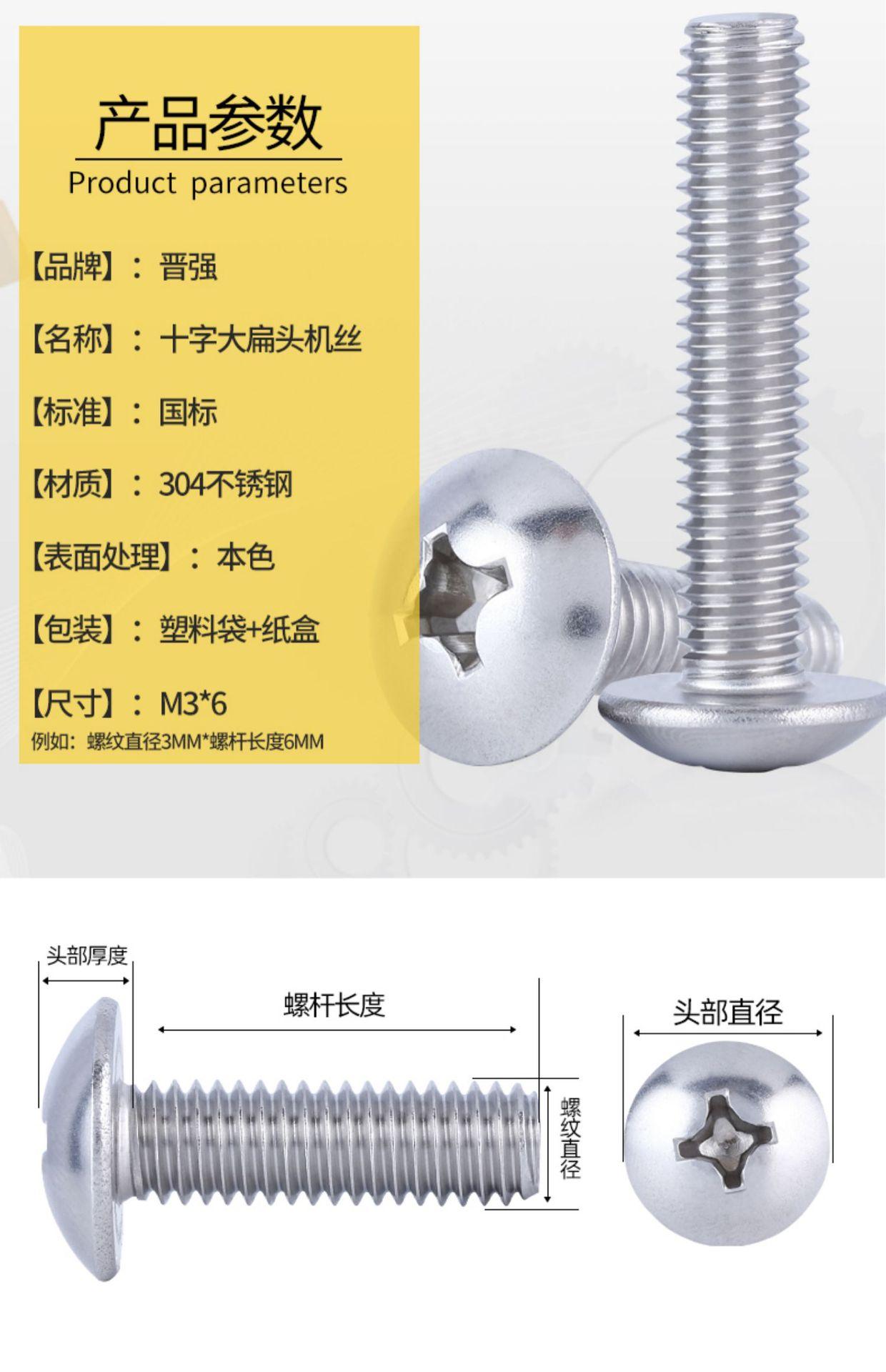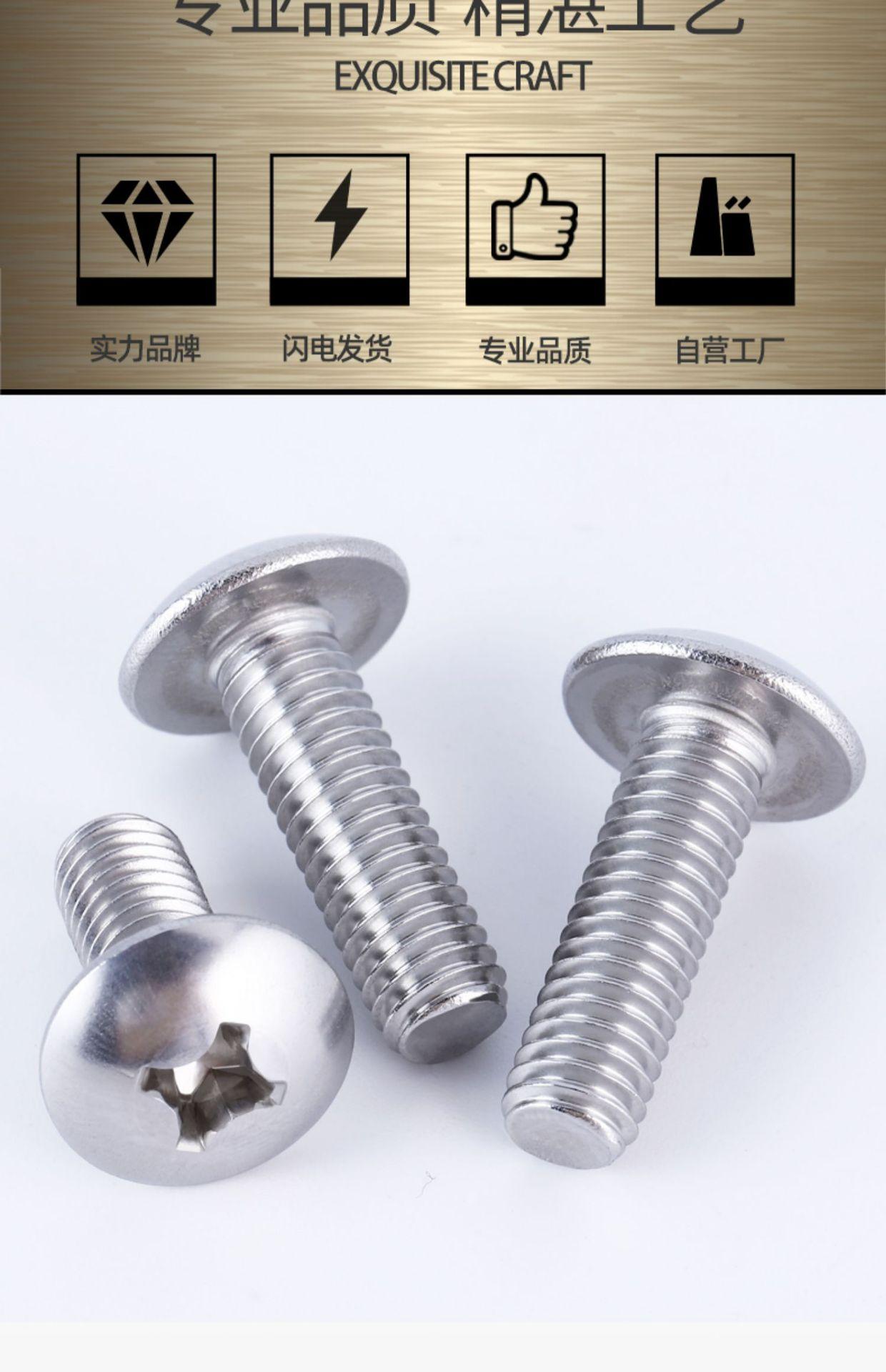Tornillo de cabeza plana grande de acero inoxidable 304, tornillo de cabeza de hongo, tornillo de máquina, tornillo de cabeza de paraguas M3M4M5M6
