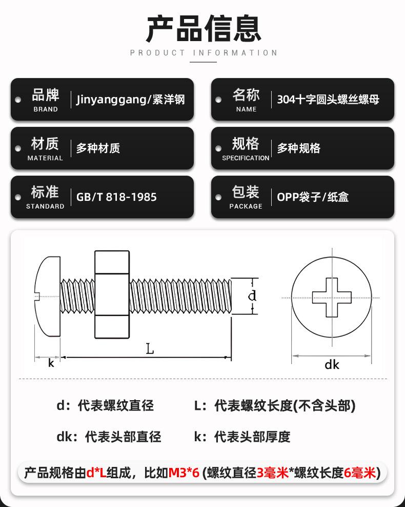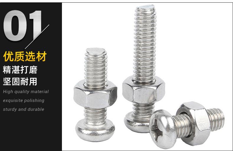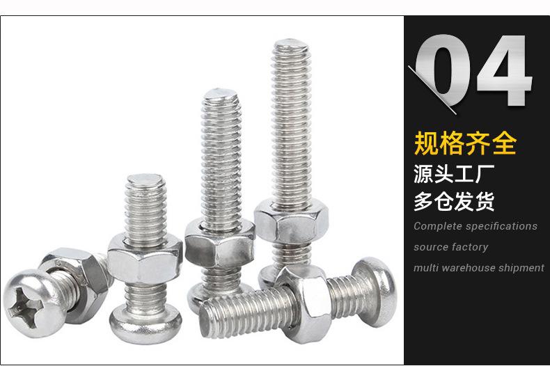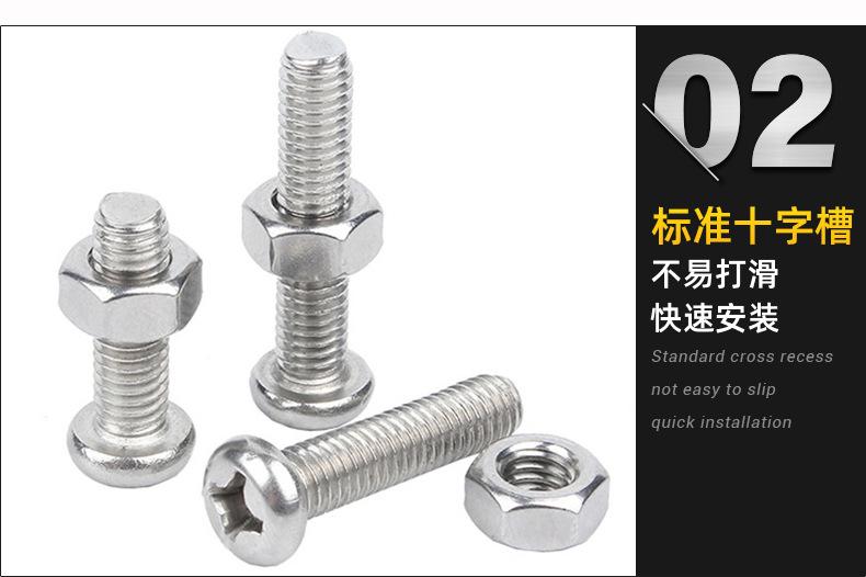 Acero inoxidable 304 PM Phillips cabeza redonda tornillo tuerca traje cabeza plana tornillo tuerca combinación M3M4M5M6M8M10
