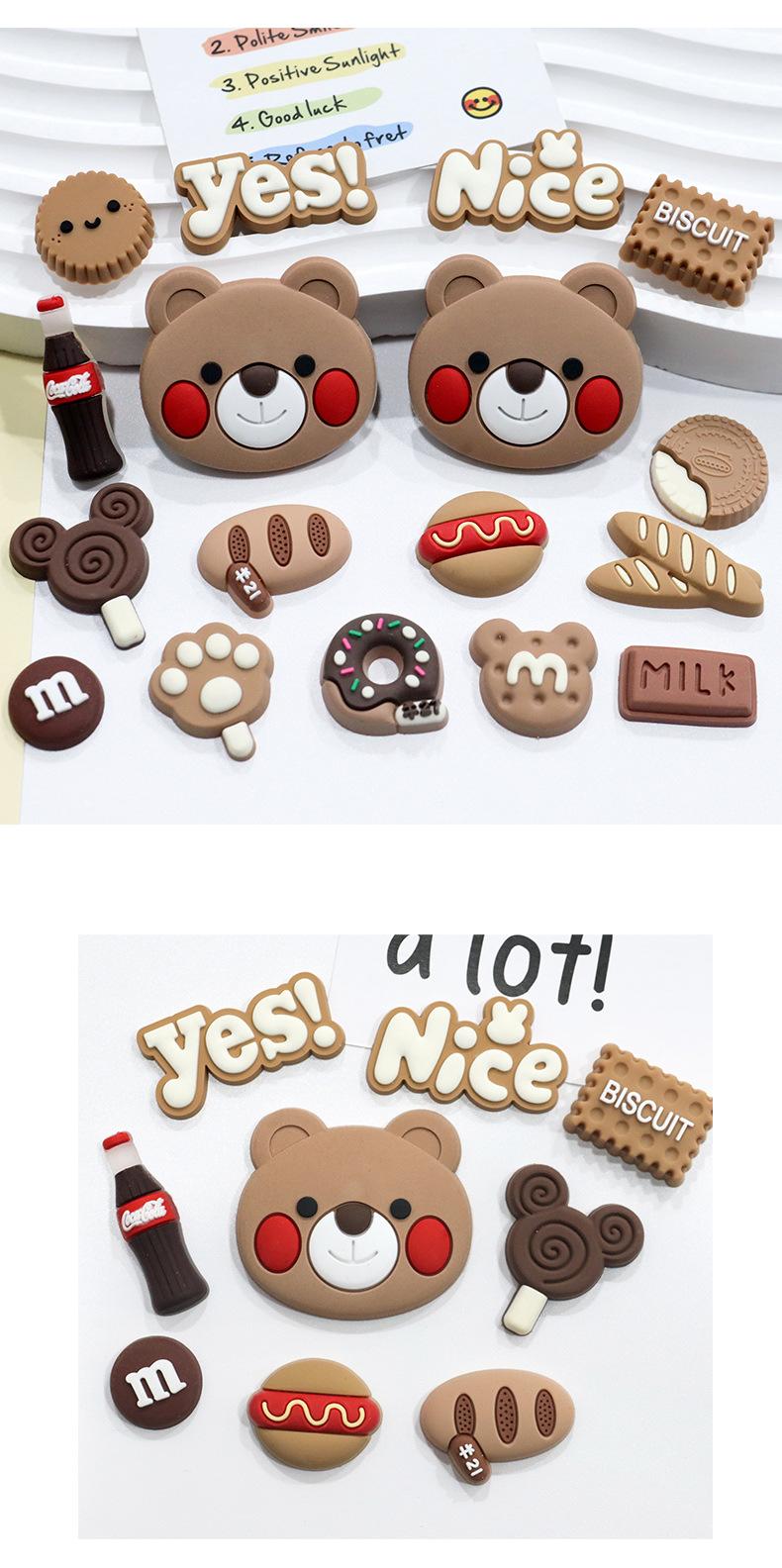 Soft glue: brown blush bear [3.8*4.1cm]], Soft glue: brown milk [1.3*2.2cm small]], Soft glue: brown smiley fa...