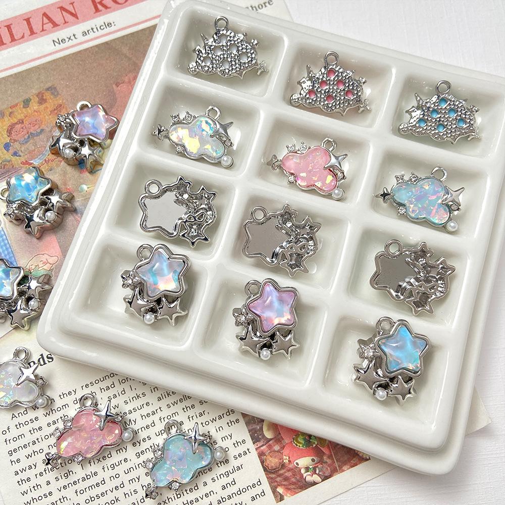 Colgante de aleación con forma de nube y estrellas que combina con todo, con un toque de frescura y un collar y pendientes hechos a mano con cuentas, accesorios.