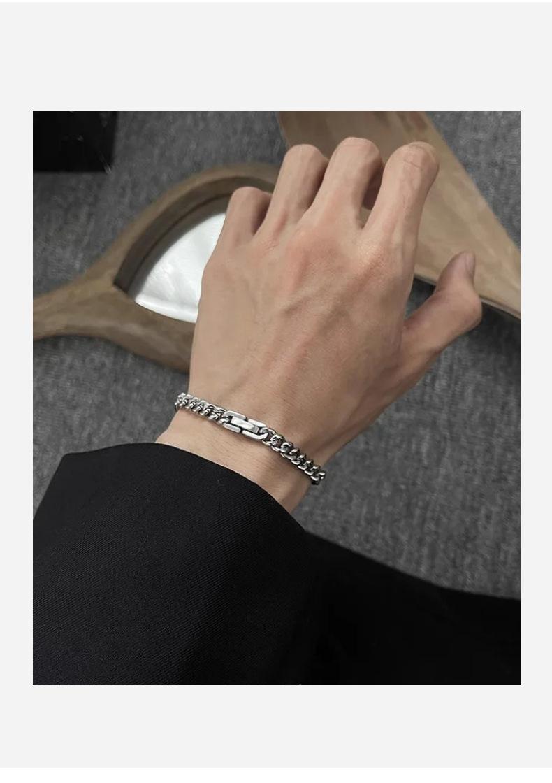 Pulsera de Acero Titanio Joyería Cierre Cadena Redonda Pulida Cadena Cubana de Acero Inoxidable Cifrada Joyería para Hombre Audaz Versátil Accesorio para Hombre Hecho a Mano Moderno