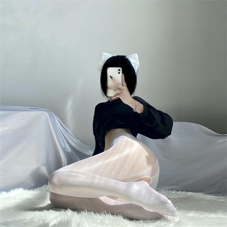 Medias de seda negra y blanca sexys 0D, suaves y aceitosas, con entrepierna abierta, tentación, medias de seda perladas ultrafinas.