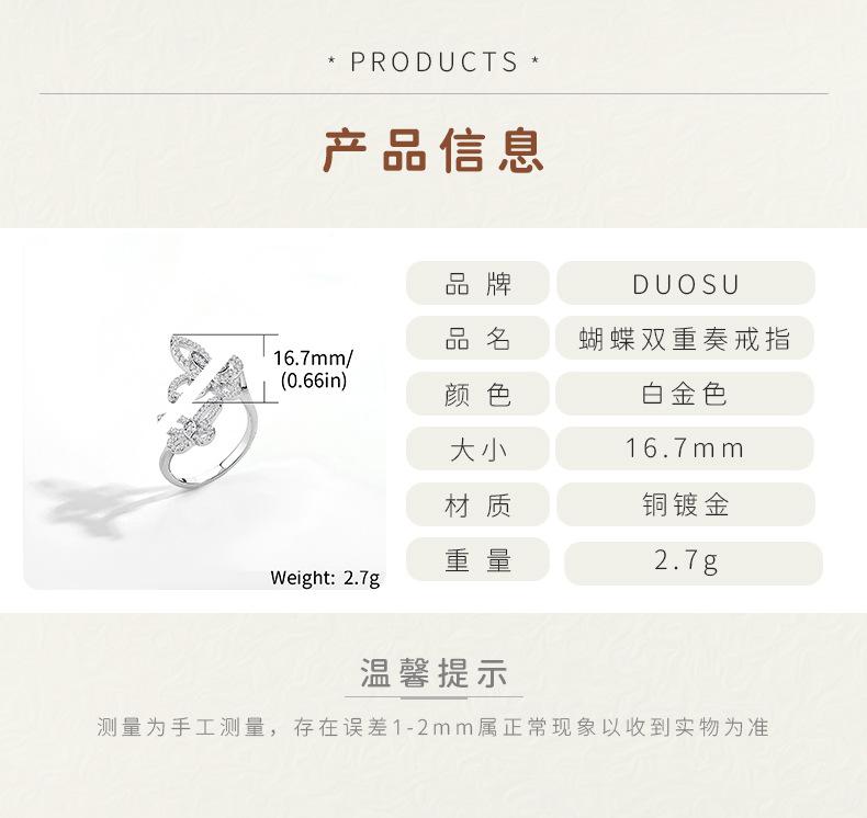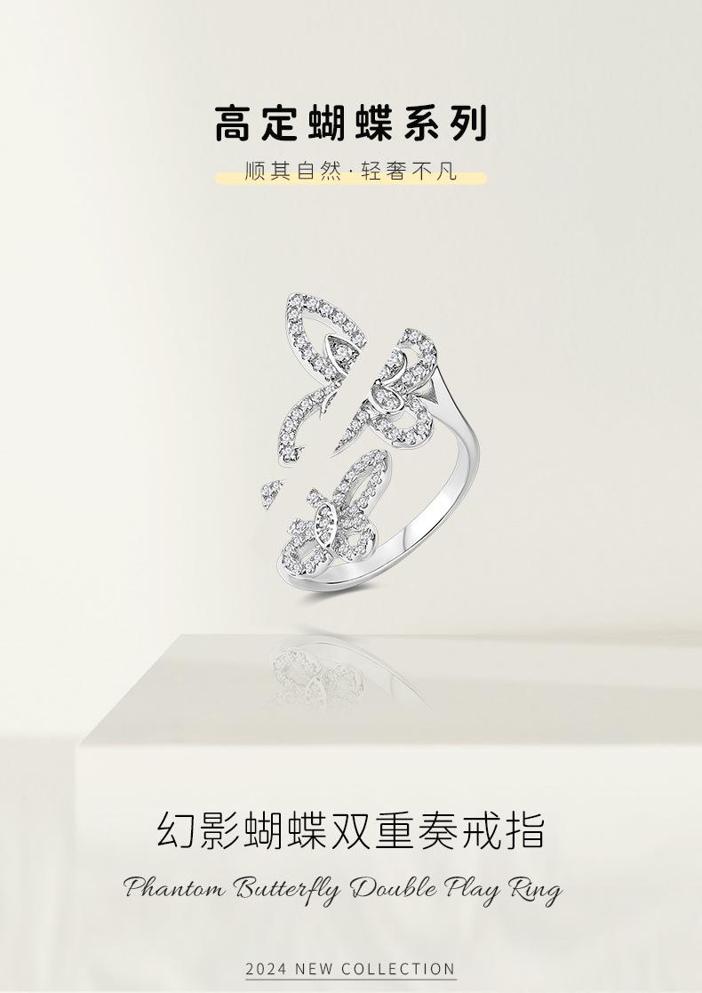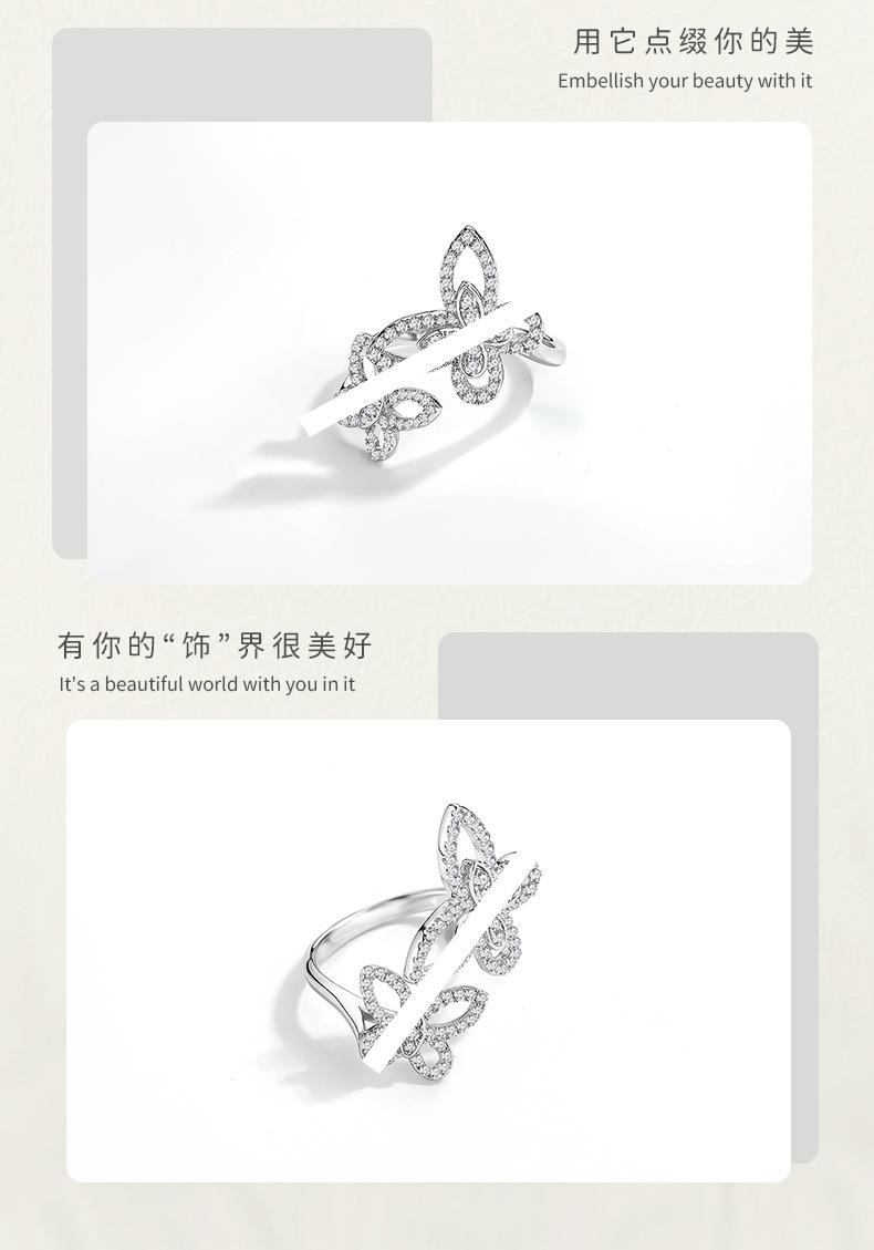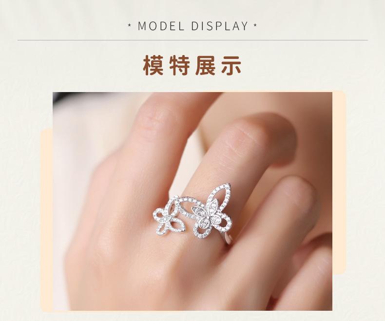 Anillo de Circonita Serie Mariposa Fantasma Chapado en Platino para Mujer, Mariposa que no se Desvanece, Doble Luz de Lujo de Alta Gama para Mujer