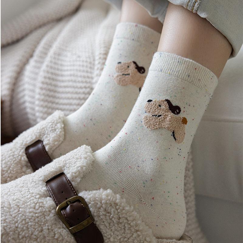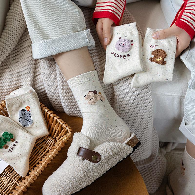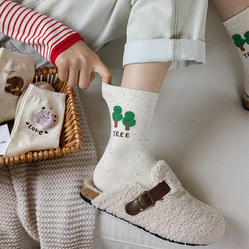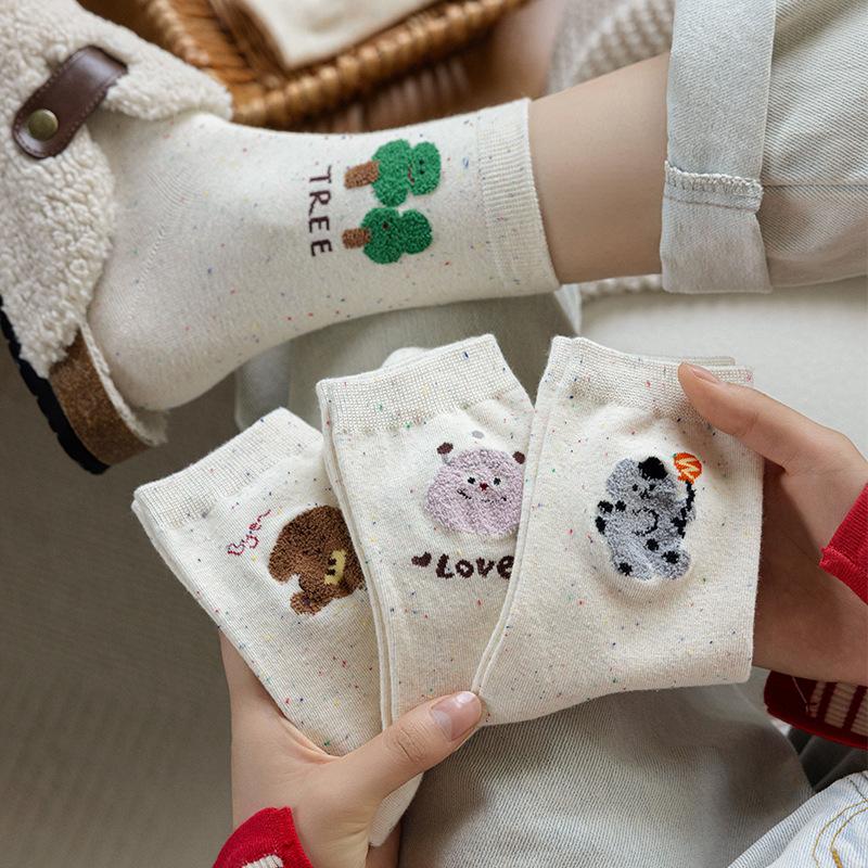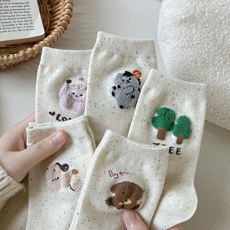 Calcetines de punto para mujer, otoño e invierno, nuevos calcetines de moda con dibujos de gatitos, estilo coreano, estilo académico.