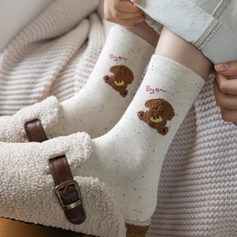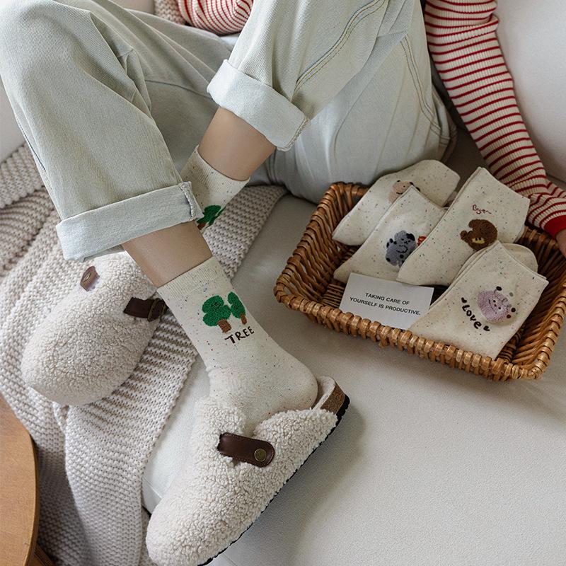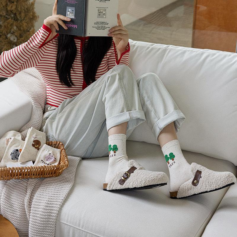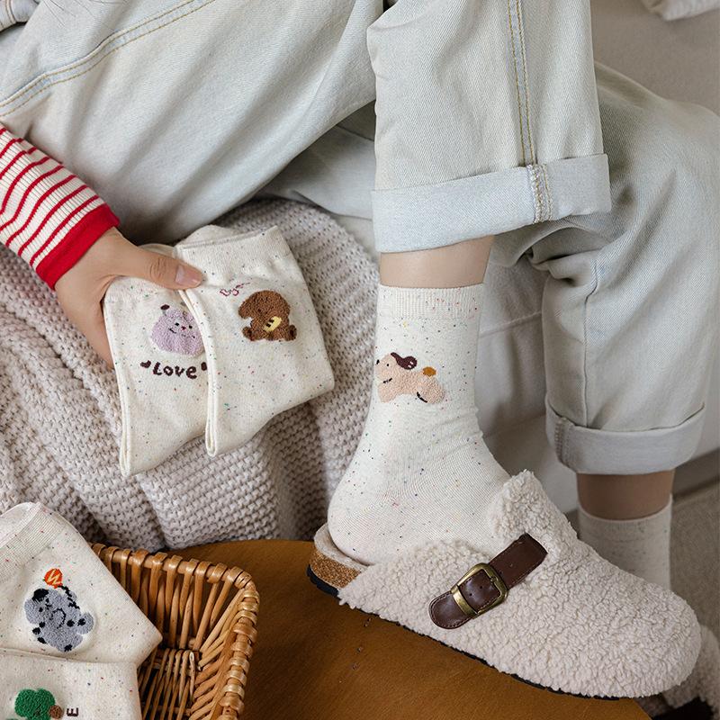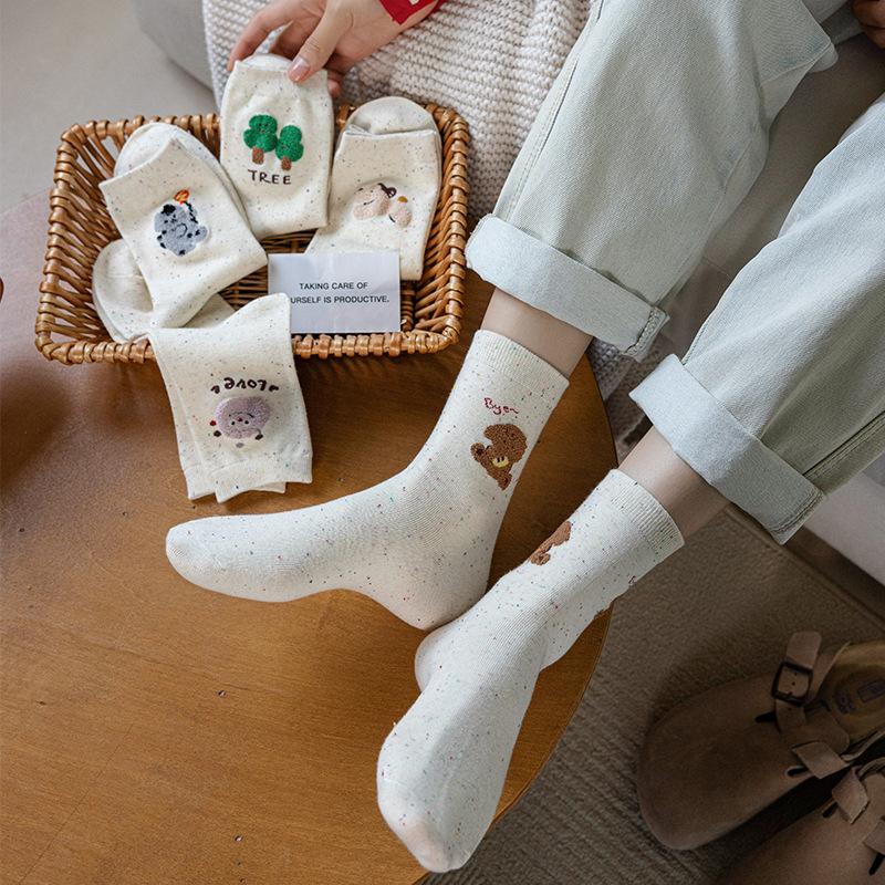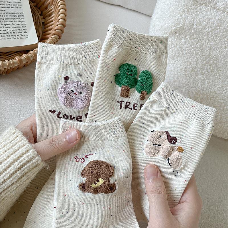 Calcetines de punto para mujer, otoño e invierno, nuevos calcetines de moda con dibujos de gatitos, estilo coreano, estilo académico.