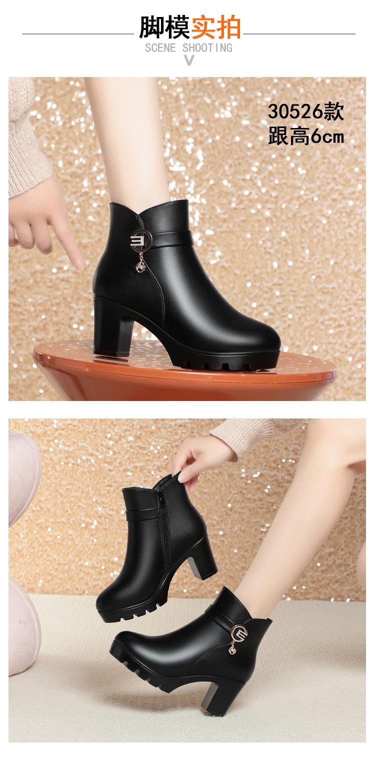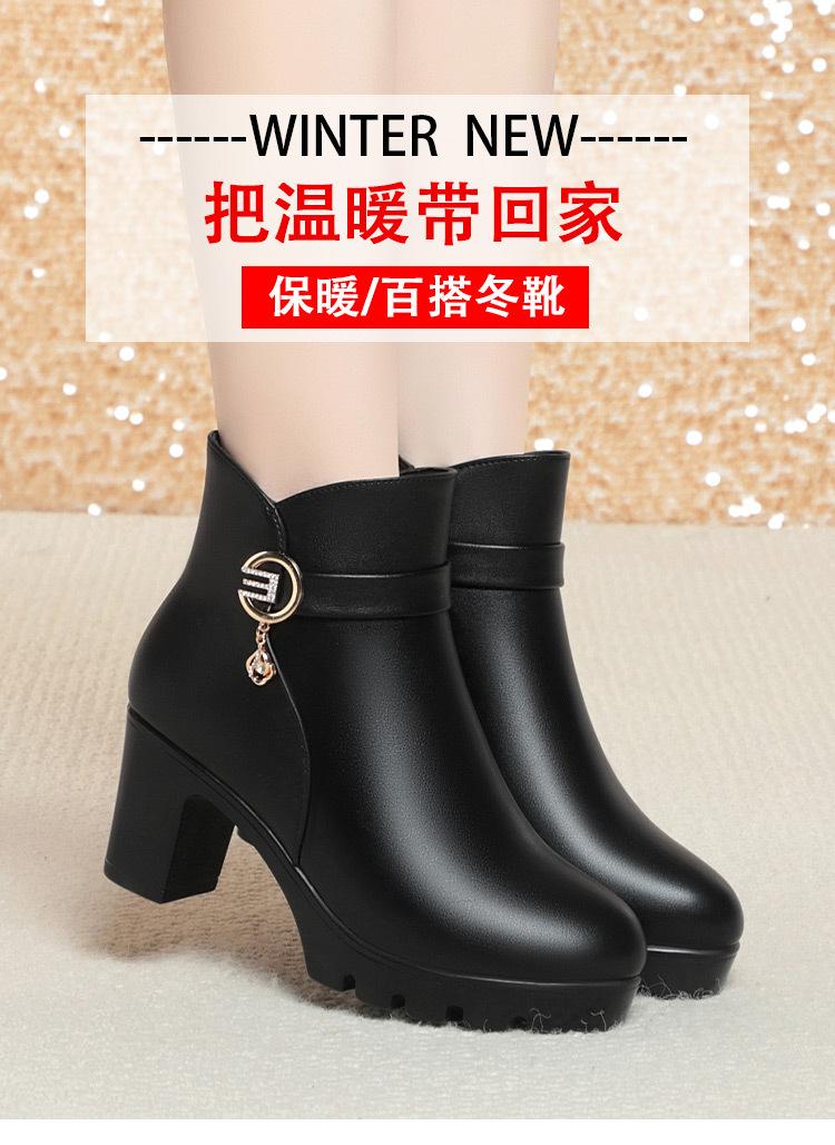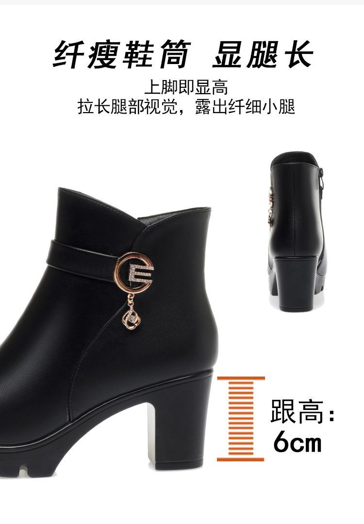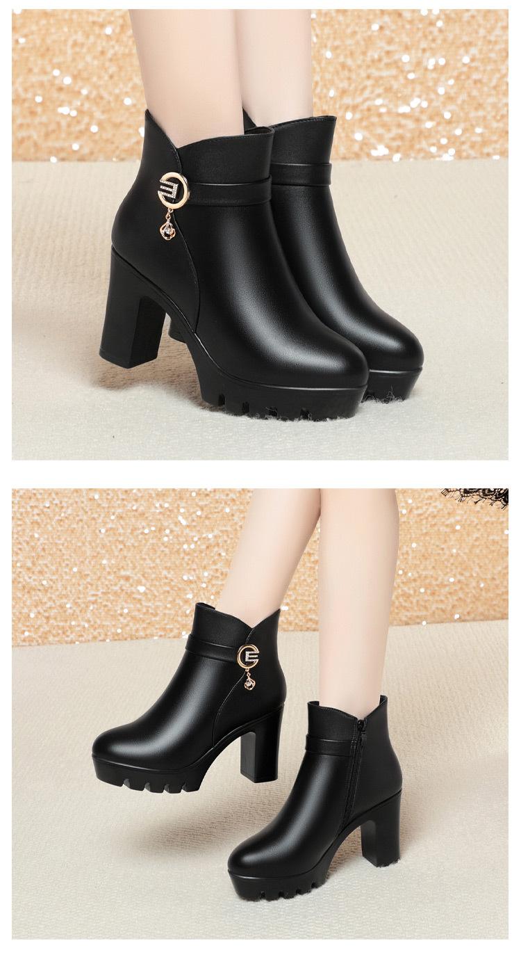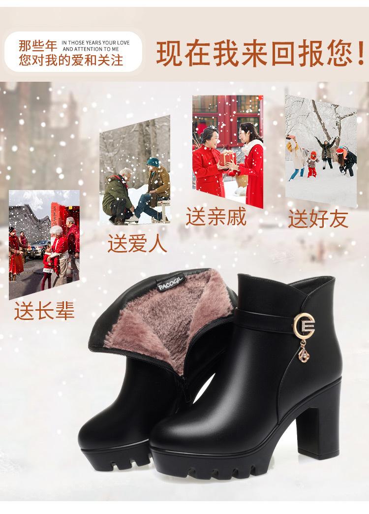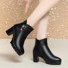 Botas cortas de mamá otoño e invierno 2023, nuevos zapatos acolchados de algodón, botas cortas de mujer con plataforma y tacón grueso, zapatos de cuero con forro polar, botas de moda