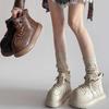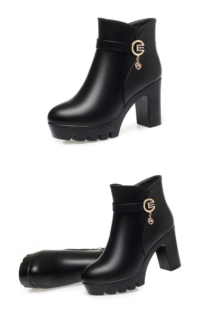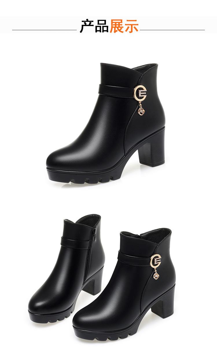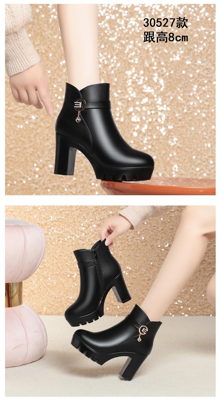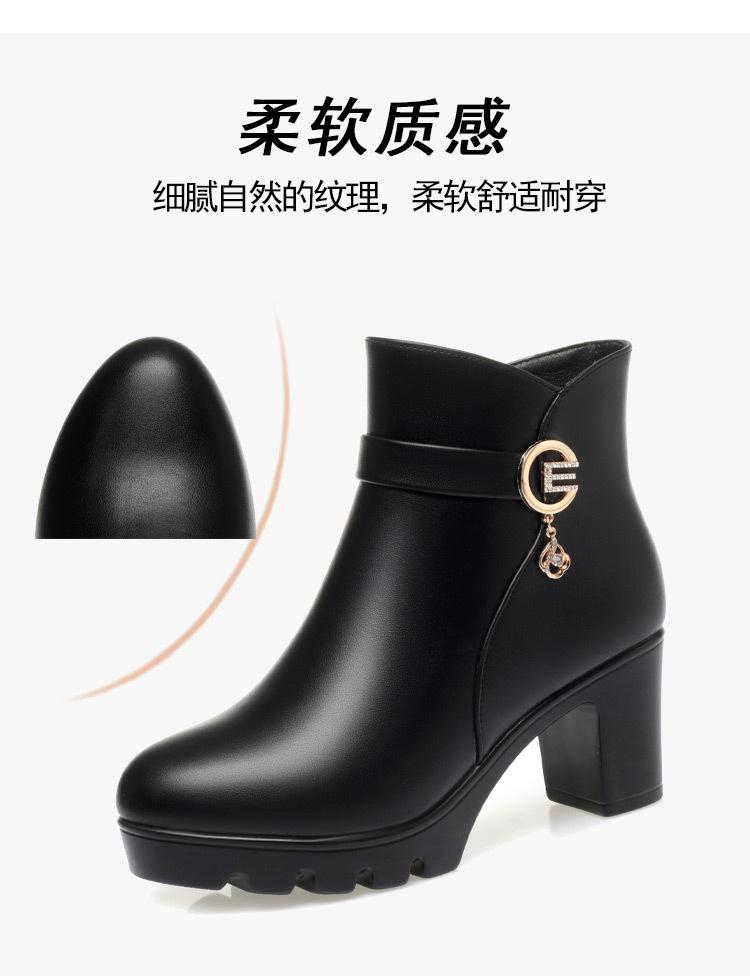 Botas cortas de mamá otoño e invierno 2023, nuevos zapatos acolchados de algodón, botas cortas de mujer con plataforma y tacón grueso, zapatos de cuero con forro polar, botas de moda