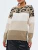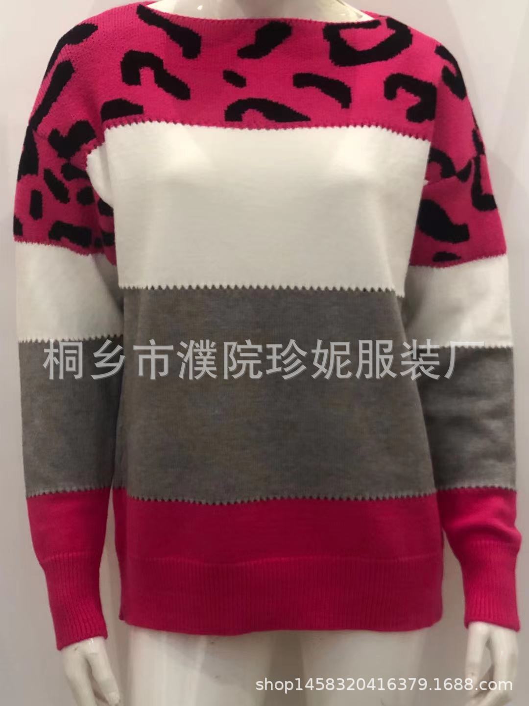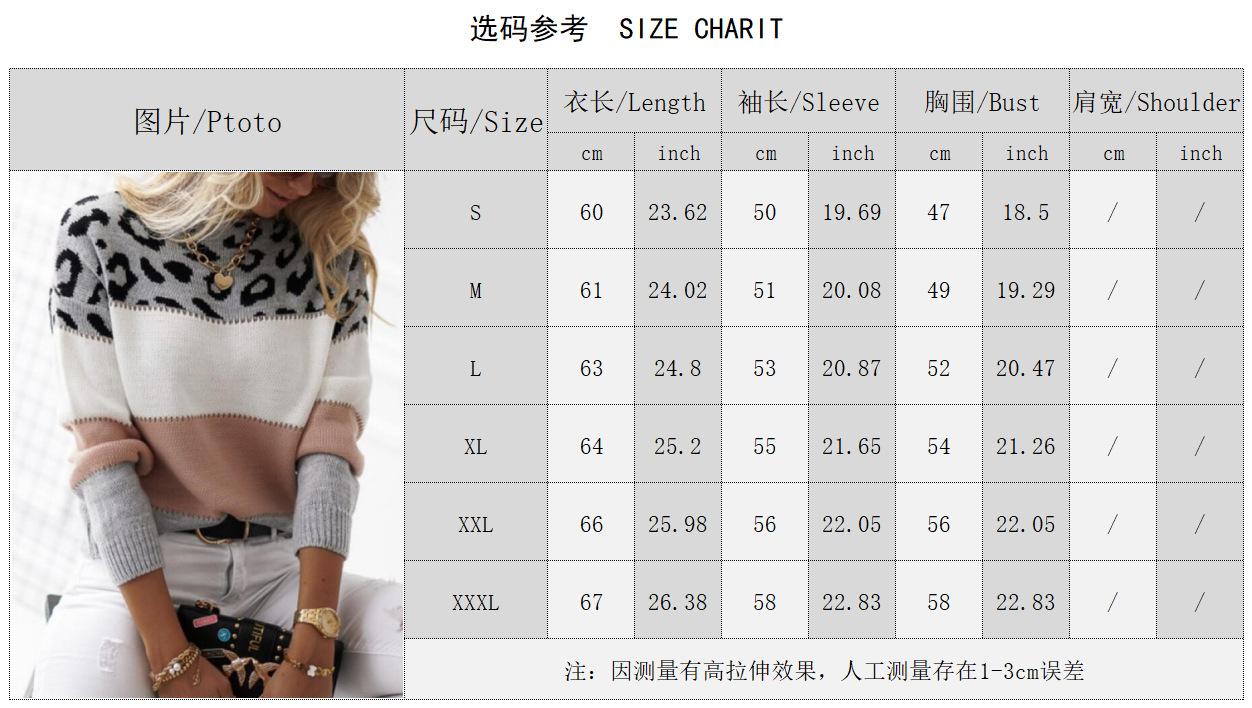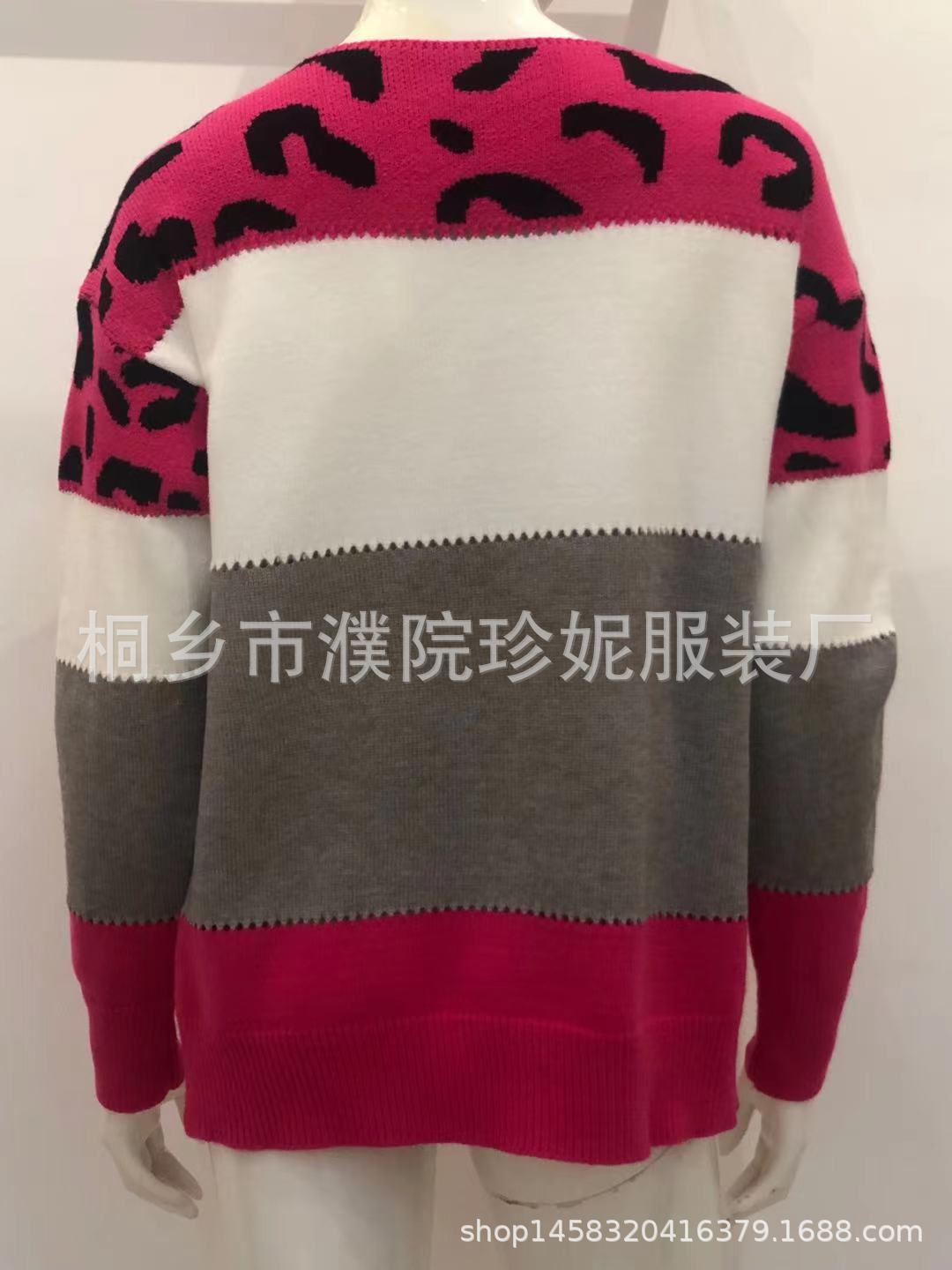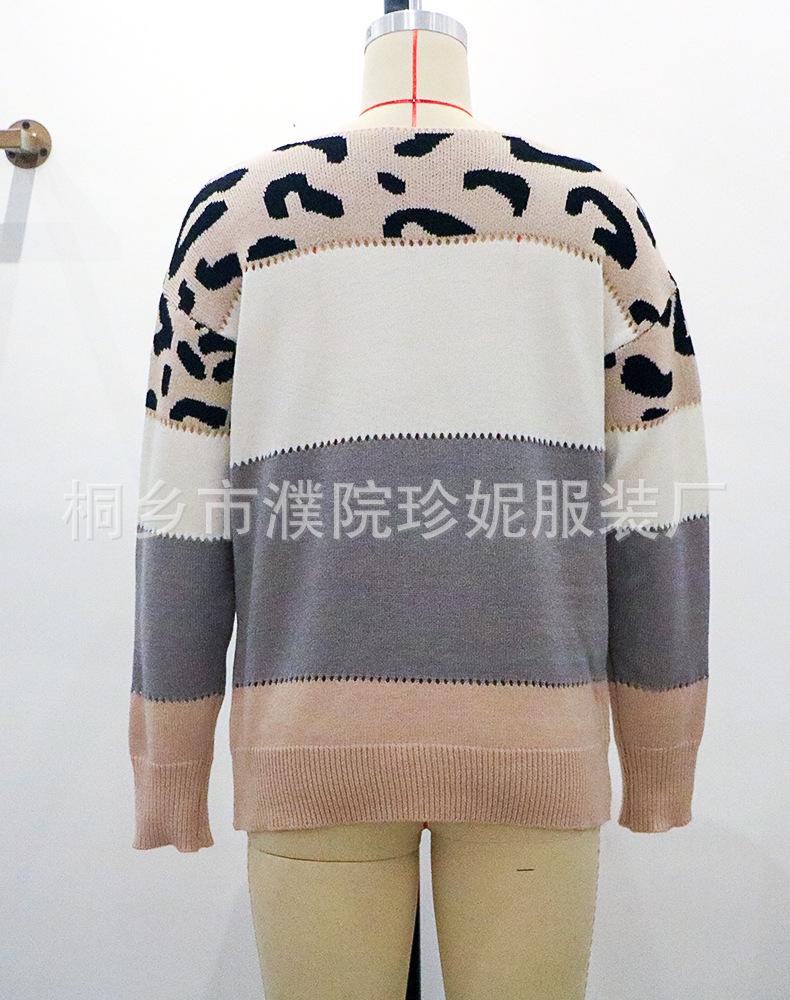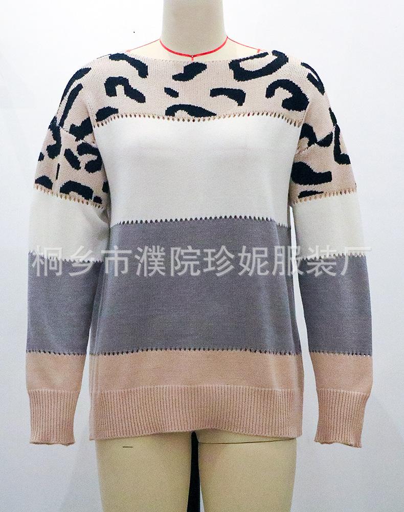 Suéter Casual de Punto de Bloque de Color con Estampado de Leopardo Otoño e Invierno Nuevo Punto para Mujer Transfronterizo Suéter para Mujer Camisa Básica de Manga Larga