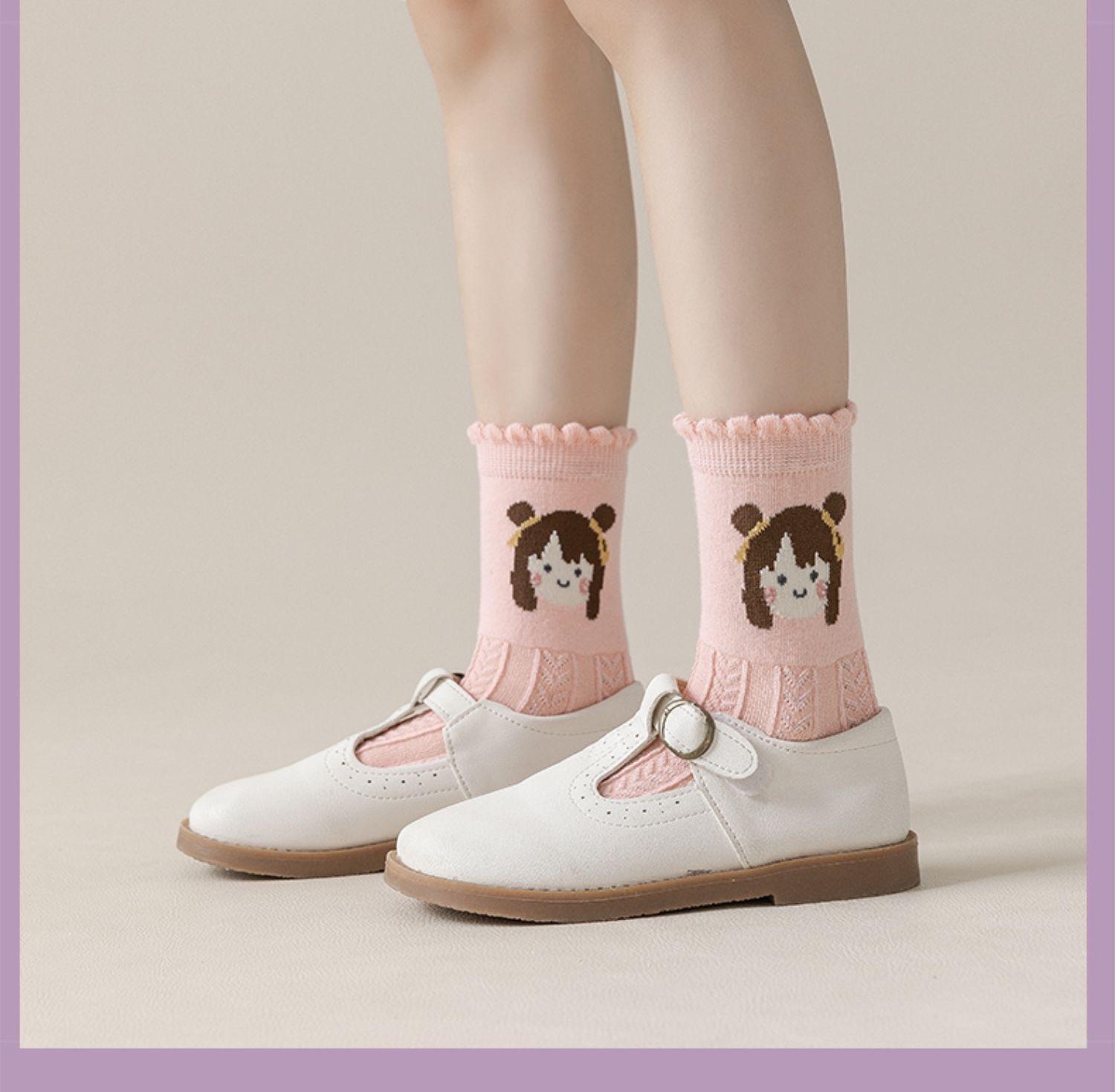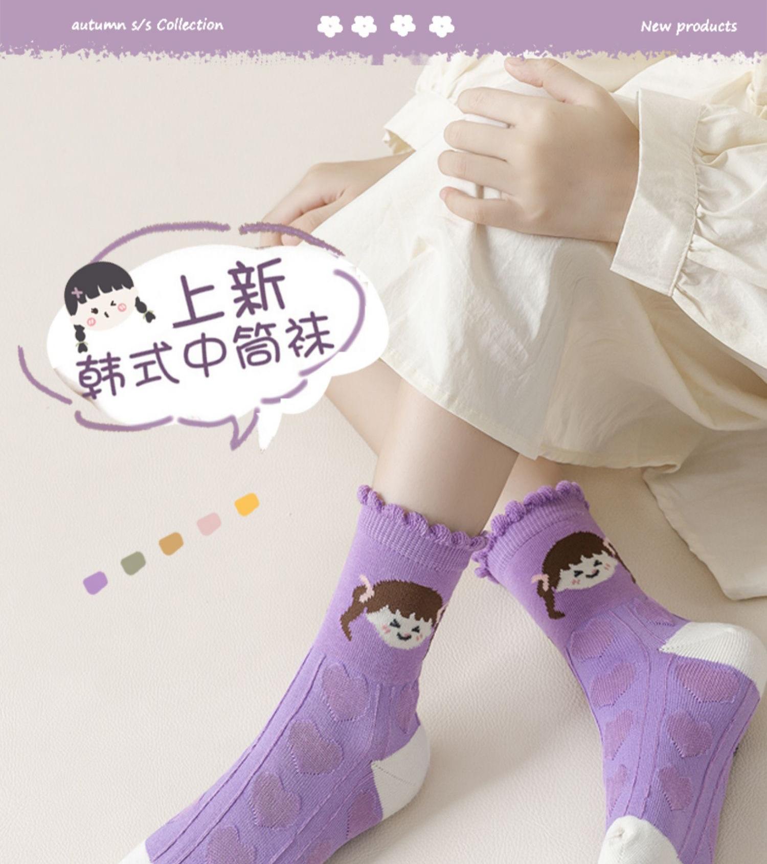 Calcetines de algodón para niñas, primavera y otoño, de tubo medio, con dibujos animados, para otoño