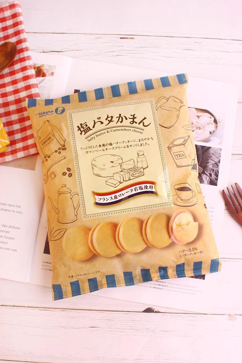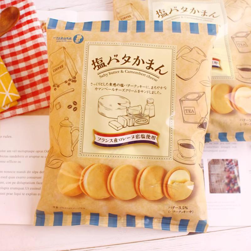 Snacks Importados Japoneses Takara Baozhi Galletas Sándwich con Sabor a Fruta, Sal de Roca y Mantequilla Comida de Celebridad de Internet 137g