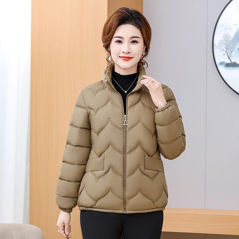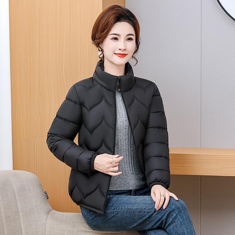 Chaqueta ligera acolchada de algodón para mujeres de mediana edad y mayores, chaqueta acolchada de algodón, chaqueta acolchada de algodón pequeña y cálida de otoño e invierno, abrigo corto de talla grande para madre, nuevo estilo extranjero