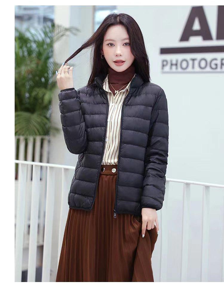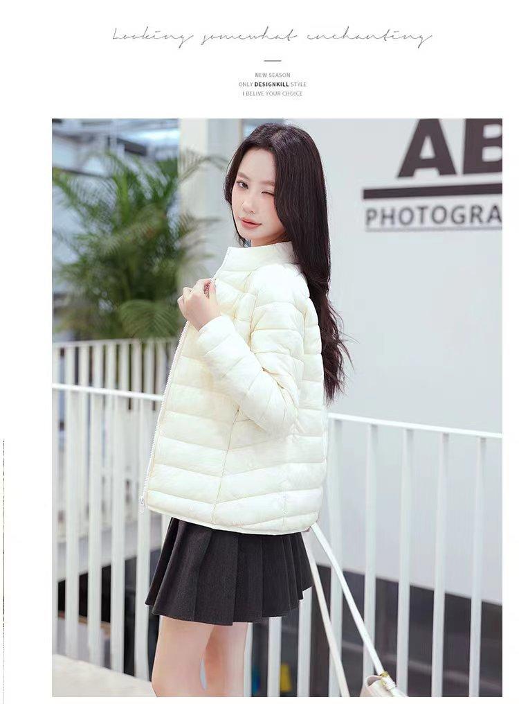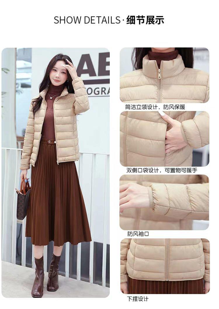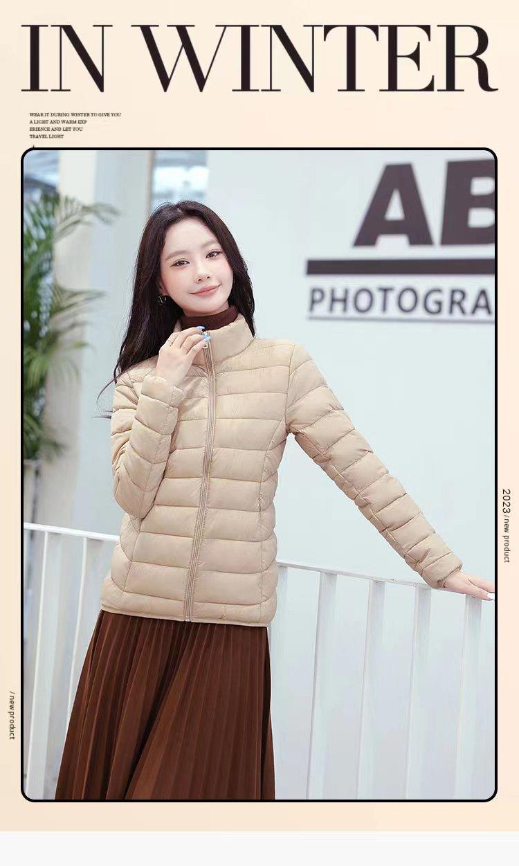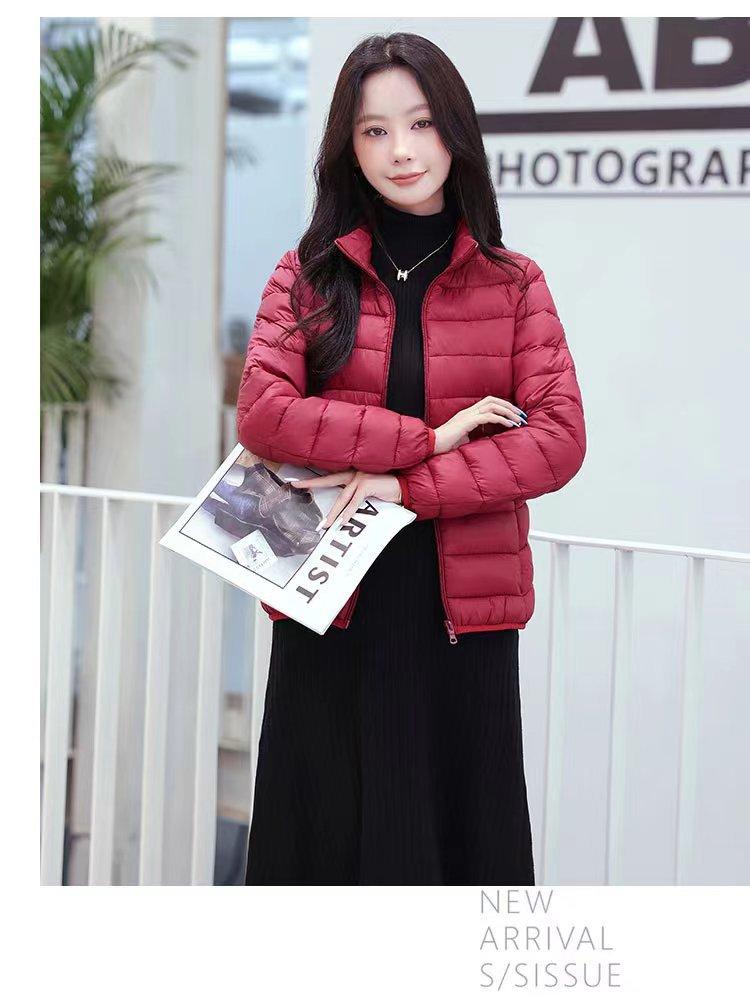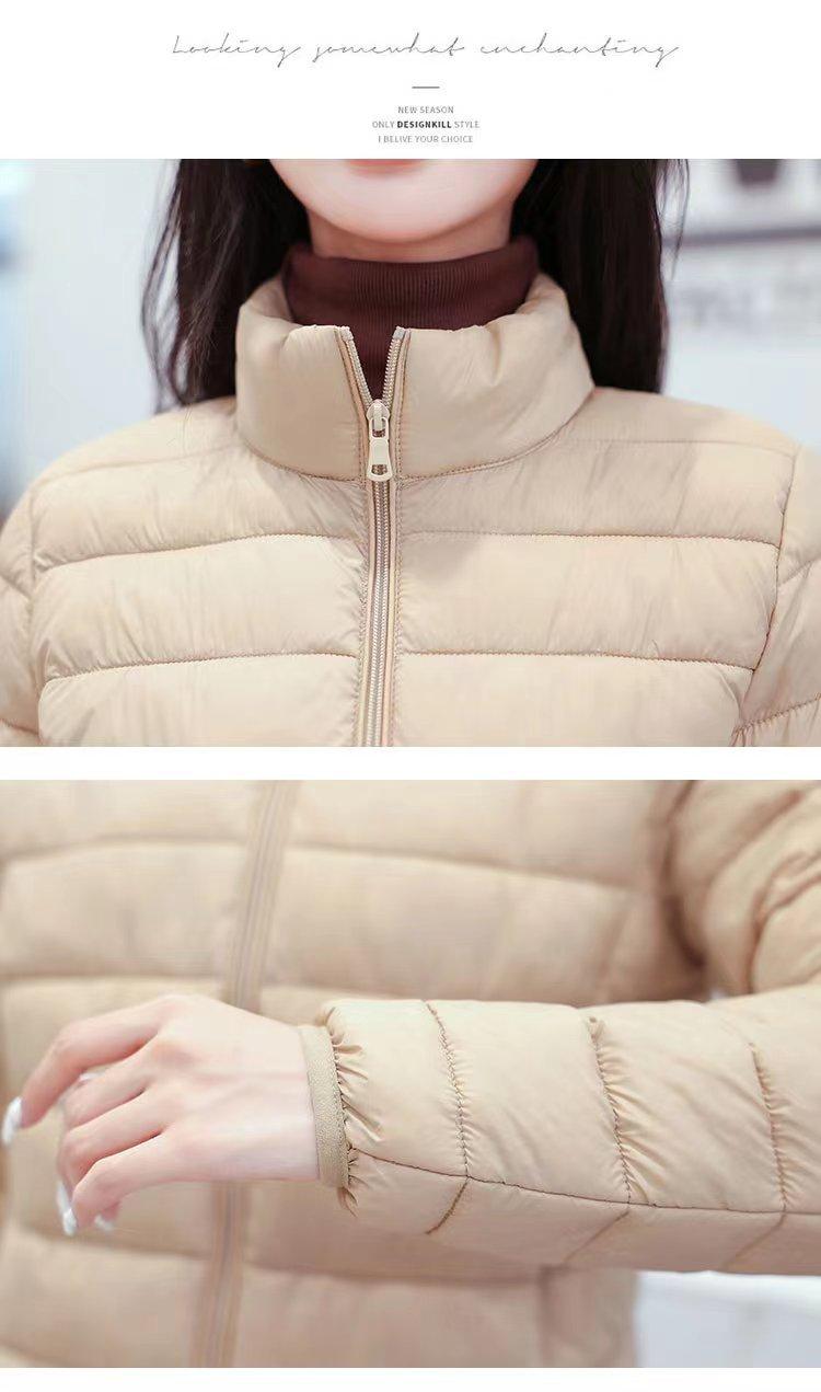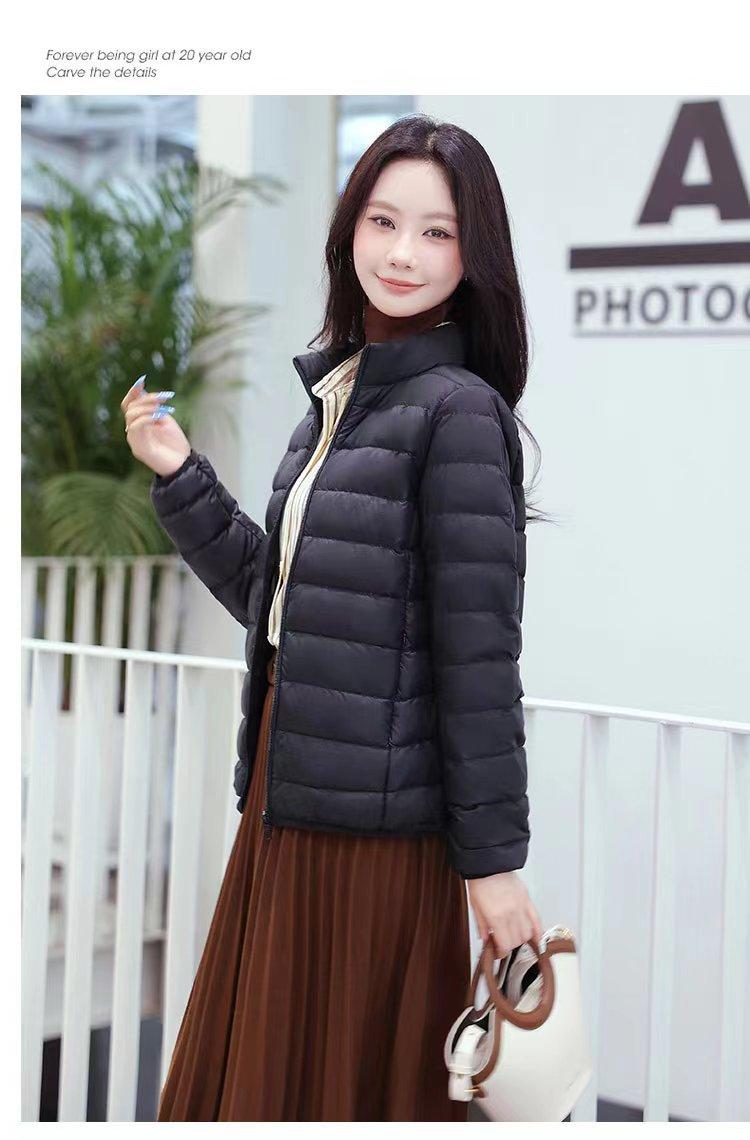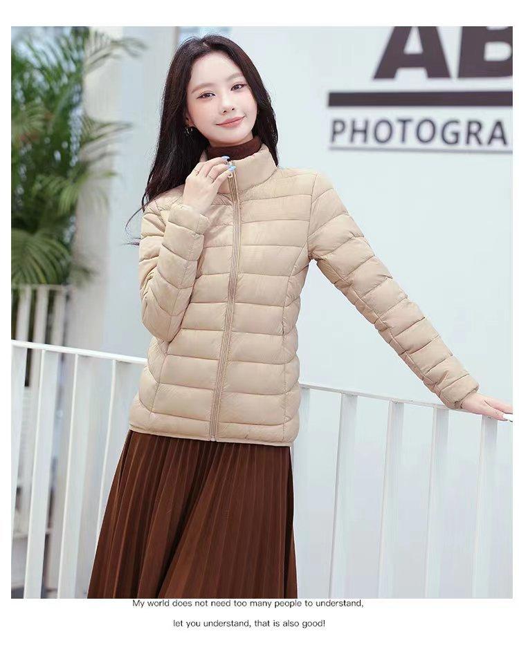 Abrigo de Algodón Ligero Nuevo para Otoño e Invierno 2025 para Mujer, Corto, Ajustado, con Cuello Alto, Chaqueta de Algodón Pequeña de Color Sólido, Más Fácil de Combinar, Chaqueta de Algodón Ajustada