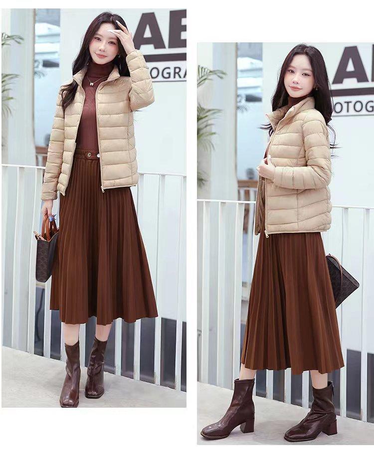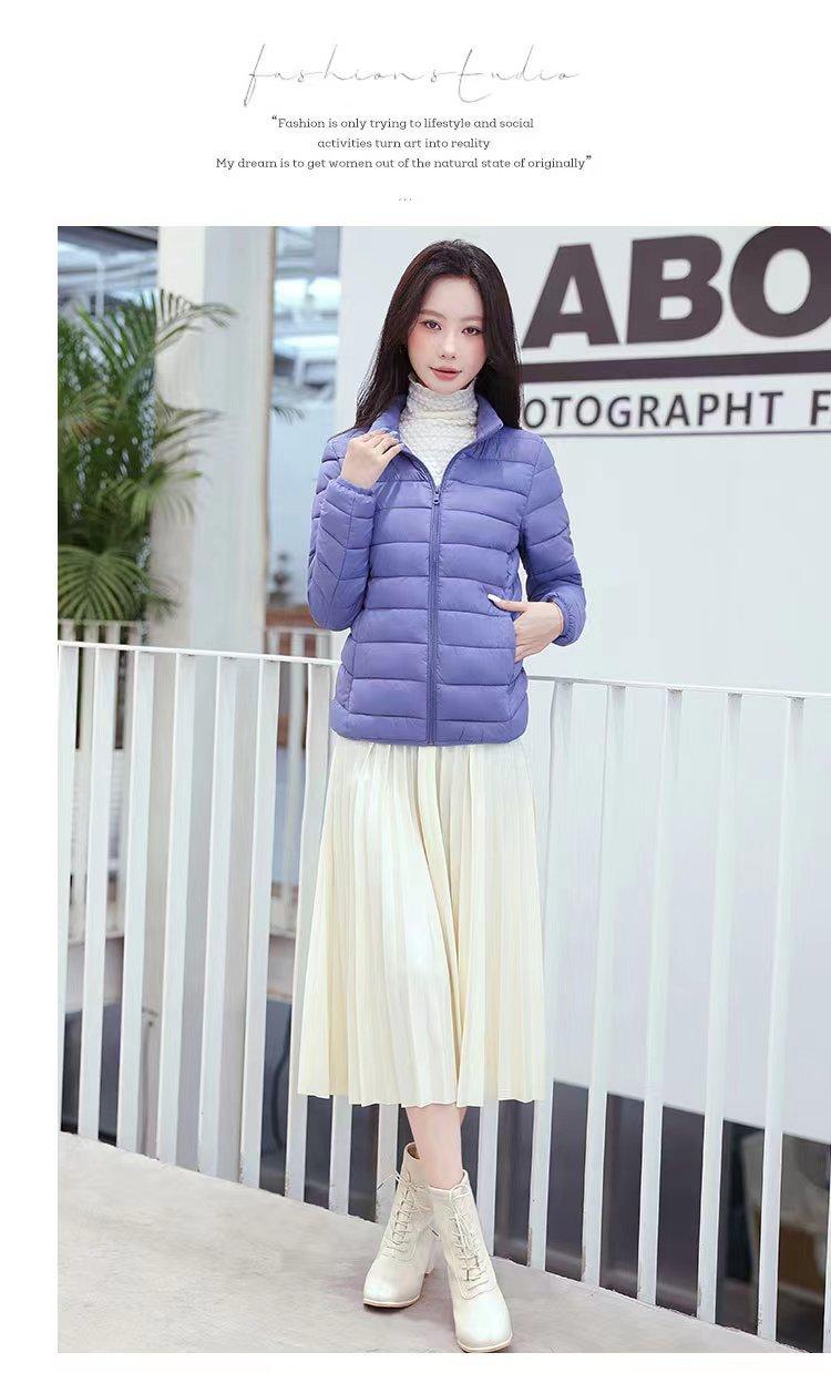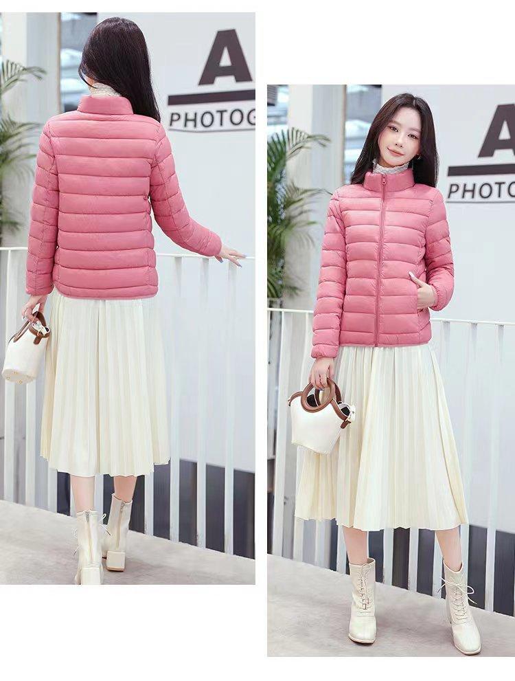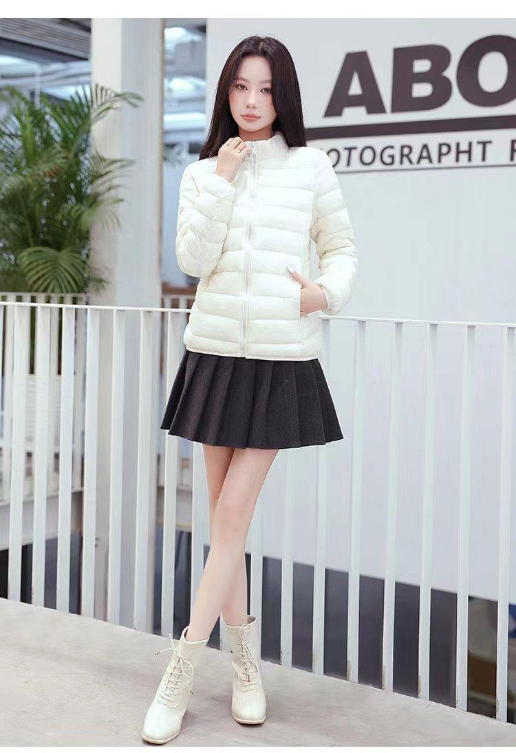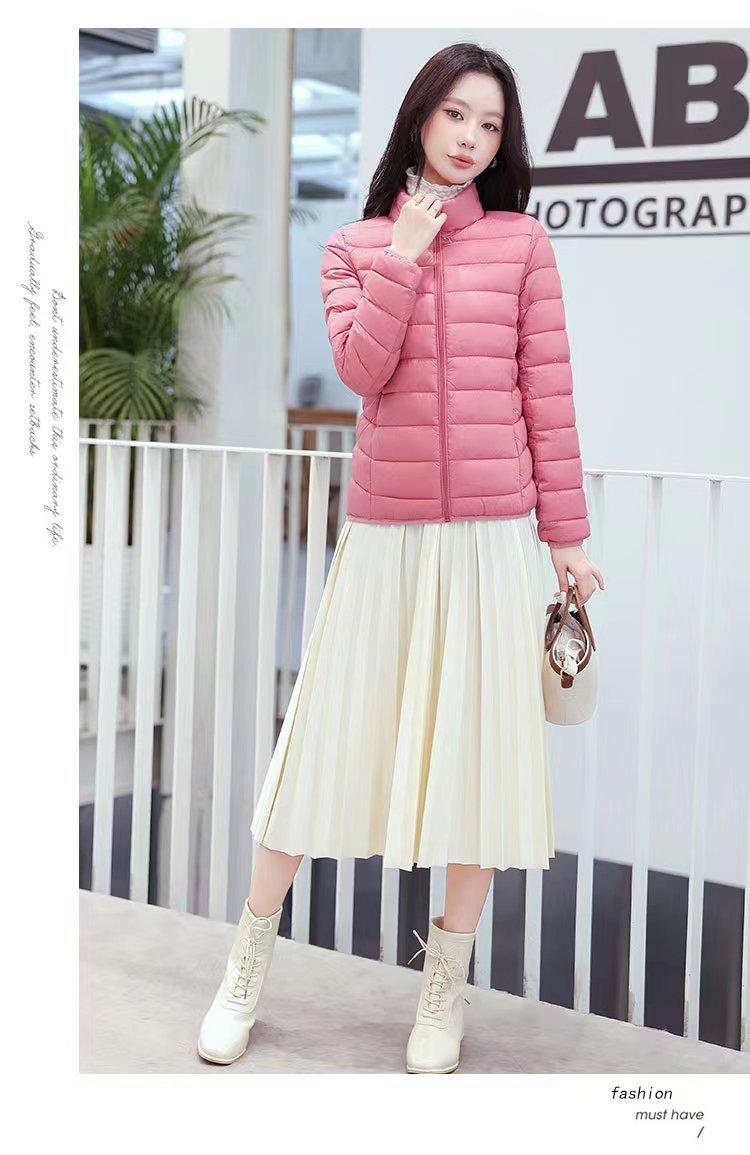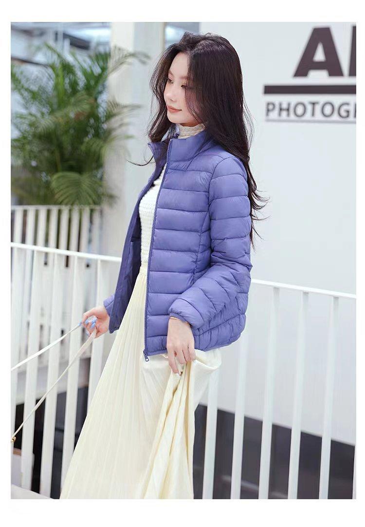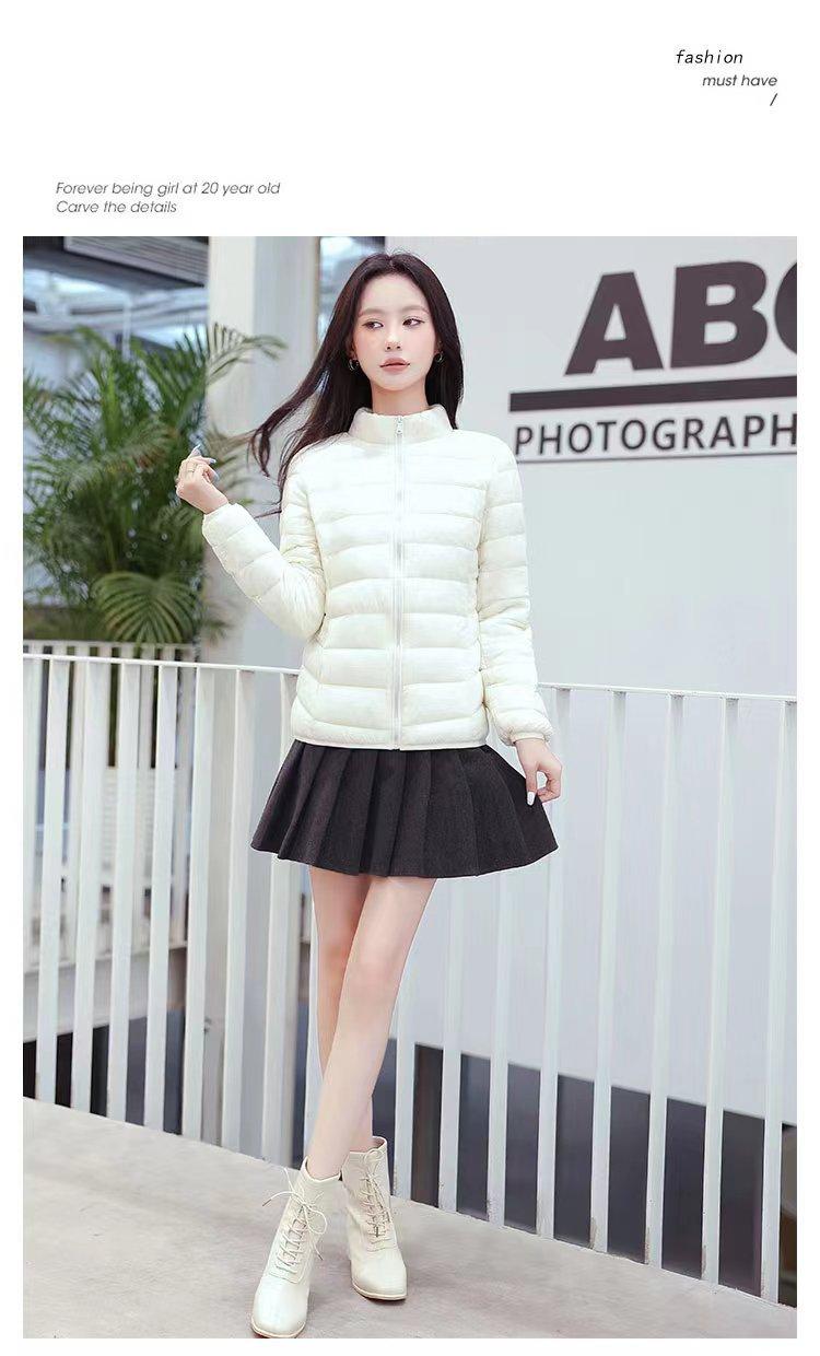 Abrigo de Algodón Ligero Nuevo para Otoño e Invierno 2025 para Mujer, Corto, Ajustado, con Cuello Alto, Chaqueta de Algodón Pequeña de Color Sólido, Más Fácil de Combinar, Chaqueta de Algodón Ajustada