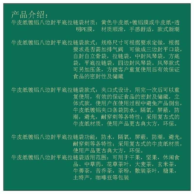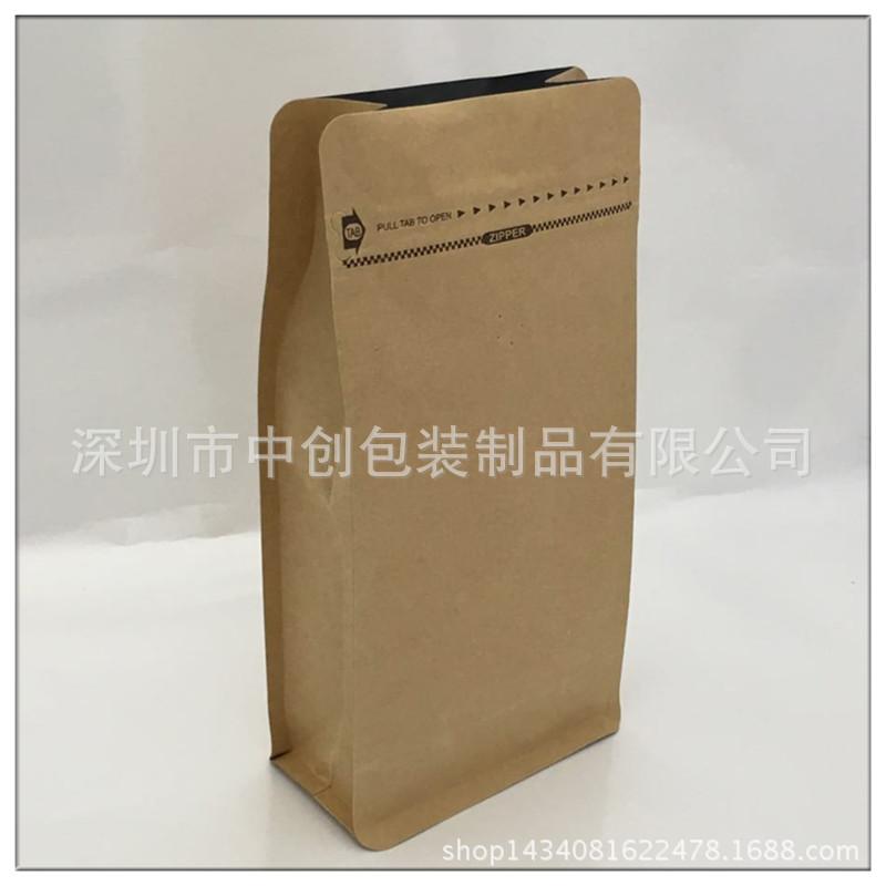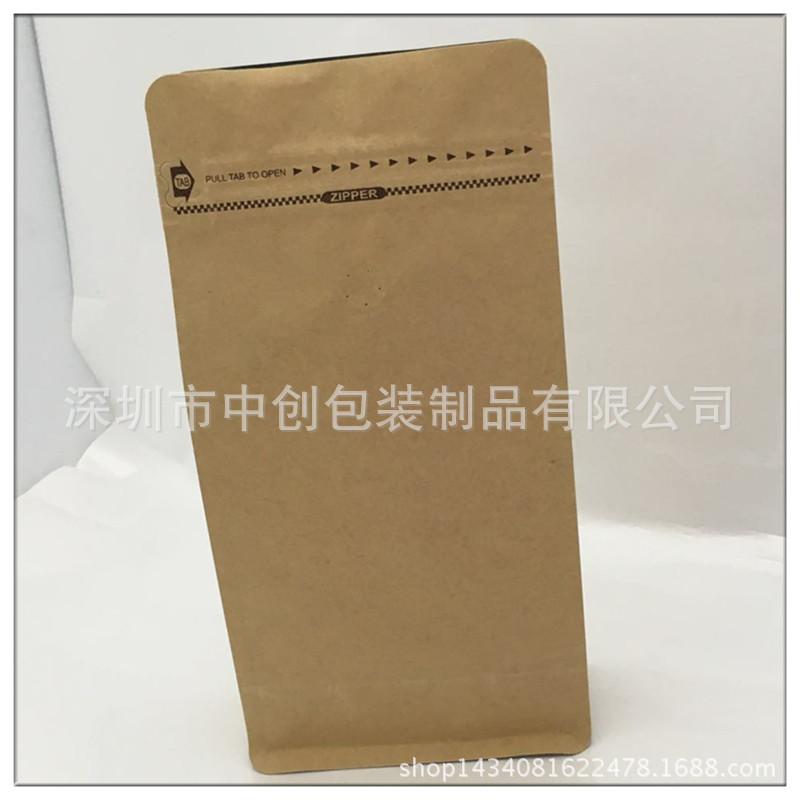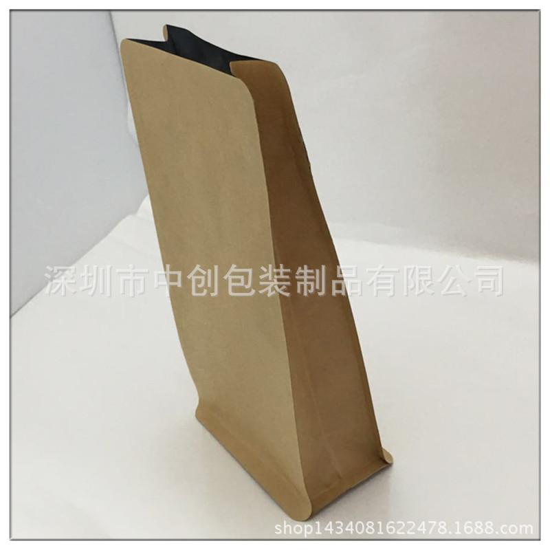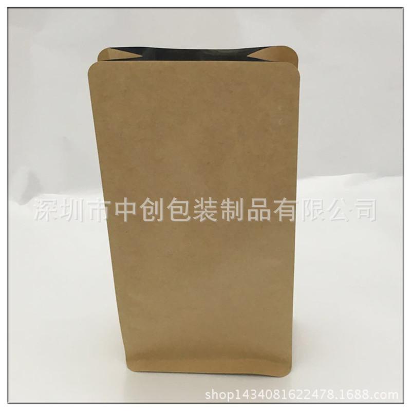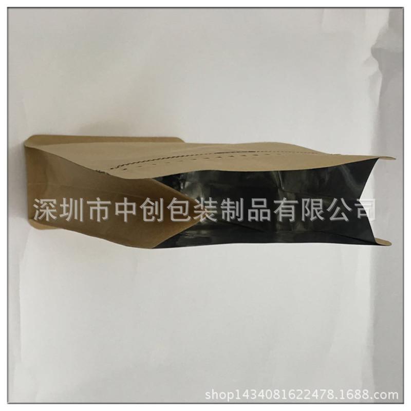 Bolsa de papel kraft aluminizado sellada por ocho lados con fondo plano y cremallera con válvula de escape | bolsa de papel kraft con lámina de aluminio | bolsa de embalaje de papel kraft | bolsa de té | bolsa de embalaje para una libra de granos de café venta directa de fábrica