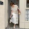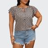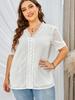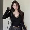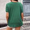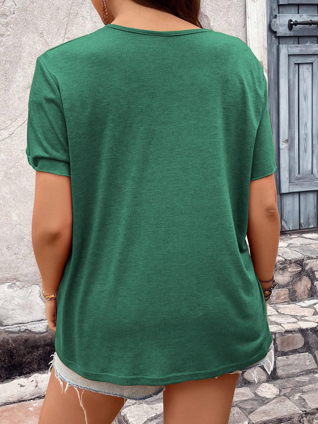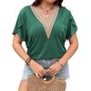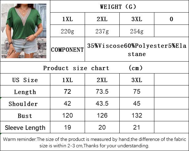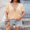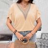 Camiseta de manga corta de punto informal, holgada, con cuello en V y encaje cosido para mujer, talla grande europea y americana, novedad de 2024, combina con todo.