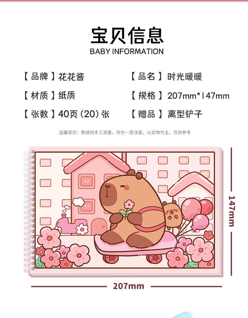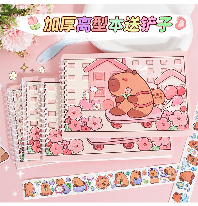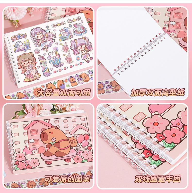Hoja de liberación de dibujos animados A5 Cinta adhesiva de doble cara Kappibala Bobina Libro Herramienta de contabilidad manual Libro de contabilidad manual de bricolaje