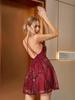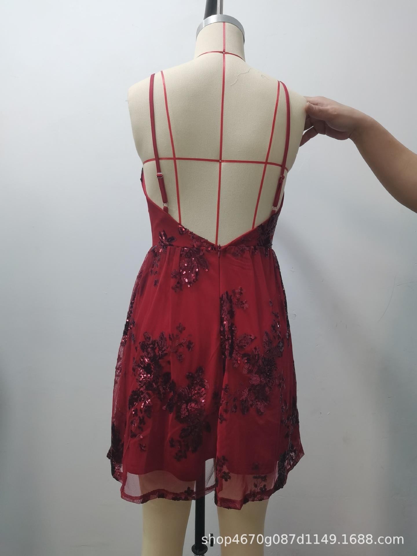 Nuevo Vestido Transfronterizo Europeo y Americano con Lentejuelas Bordado con Lentejuelas Sexy Espalda Descubierta Cruzado Tirantes