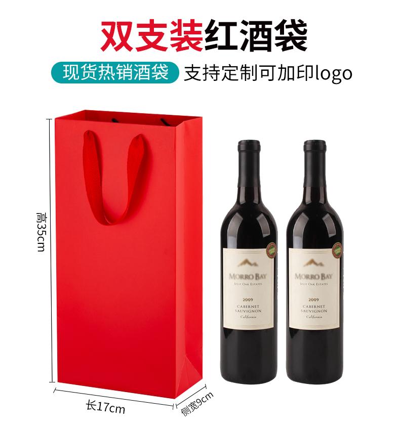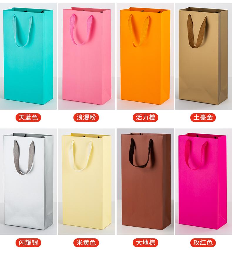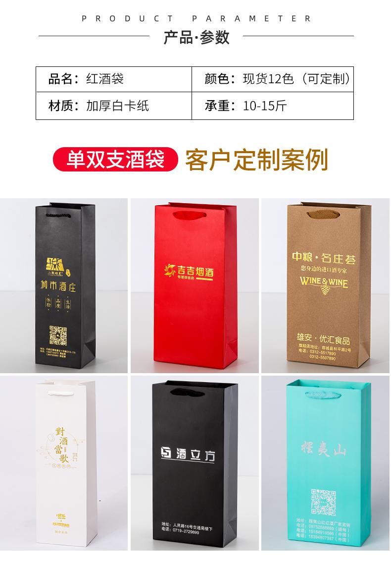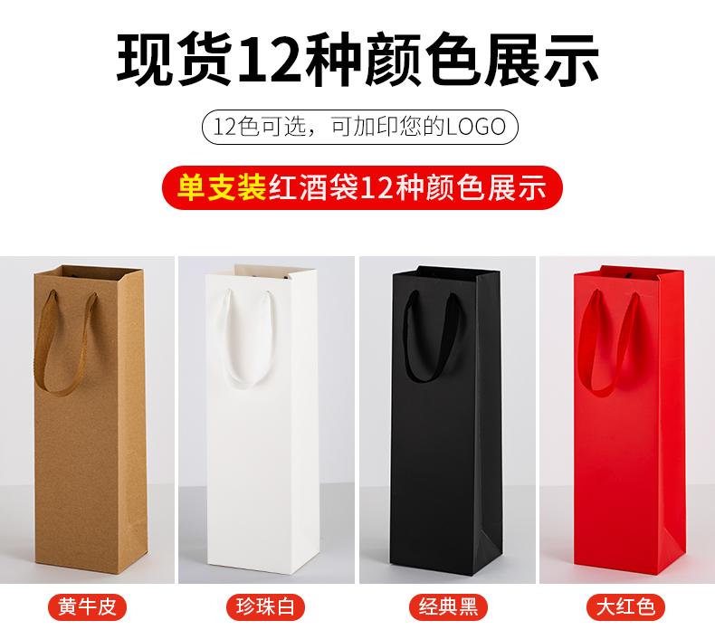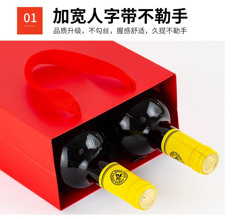 Bolsa de regalo gruesa, bolsa de papel kraft amarilla, bolsa individual y doble para vino tinto, logotipo de regalo portátil.