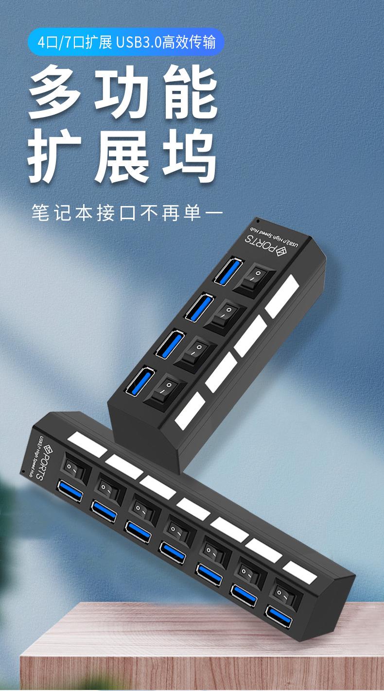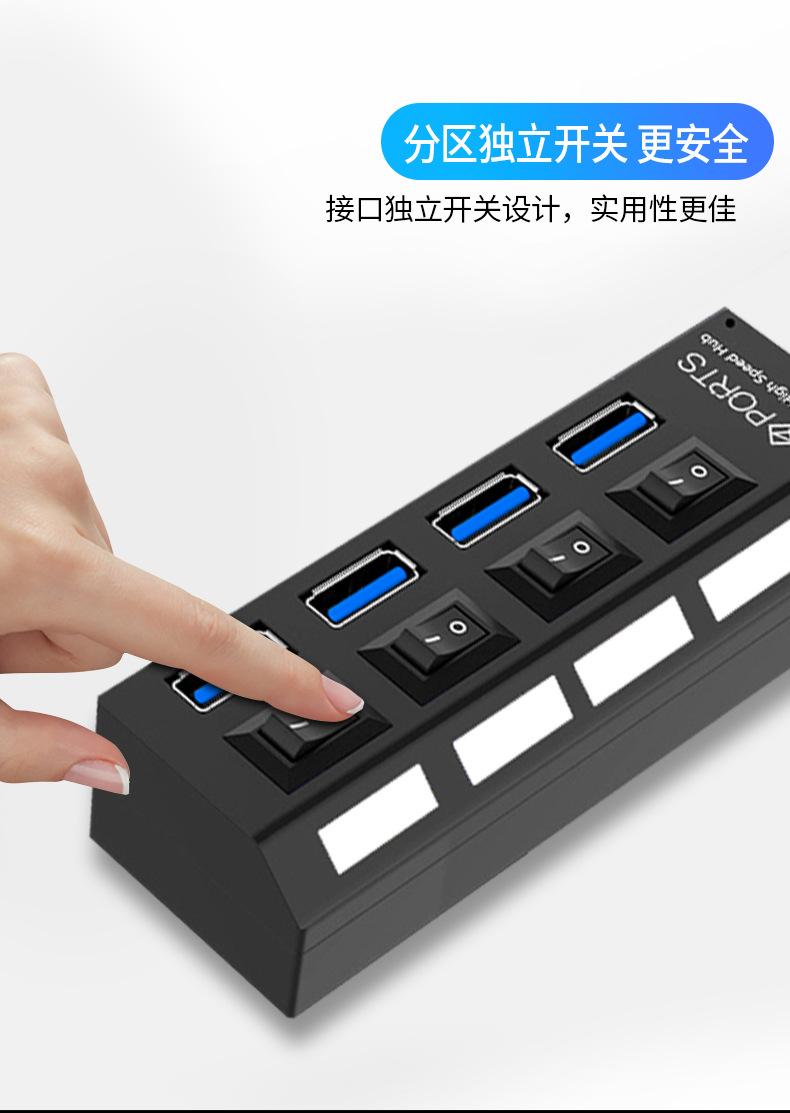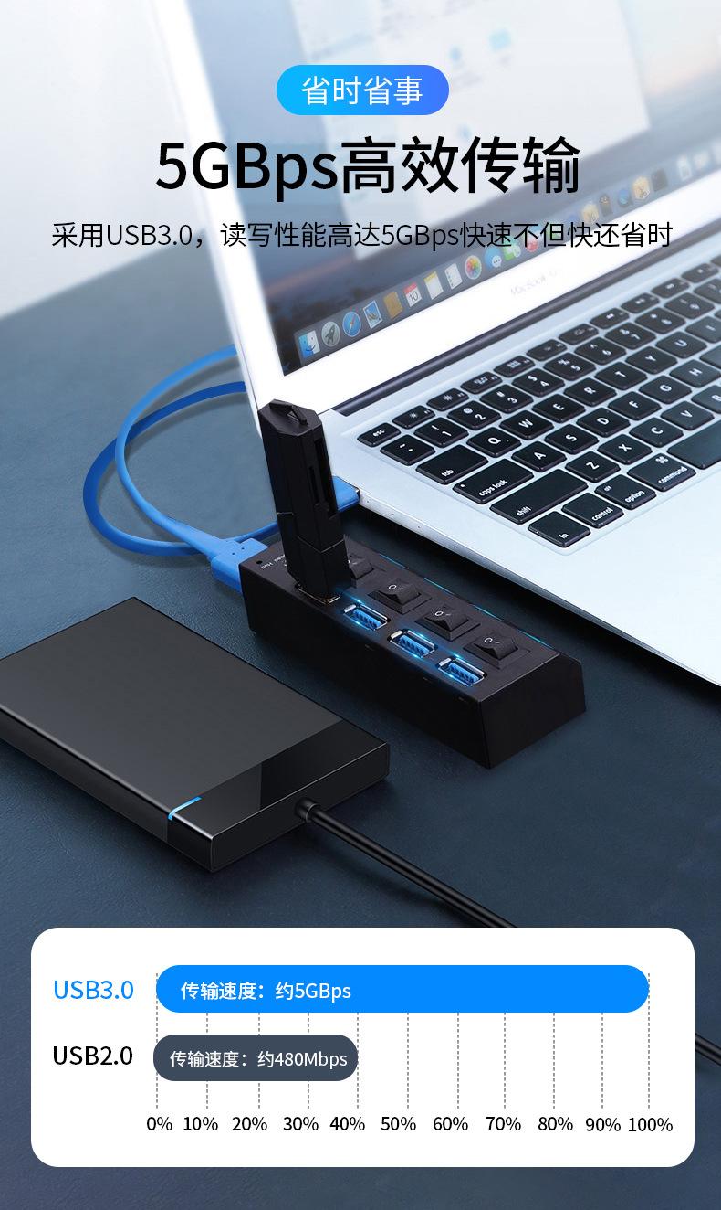Extensor USB 3.0 de alta velocidad, divisor para ordenador de escritorio, portátil, concentrador multipuerto, concentrador, fuente de alimentación, base de expansión