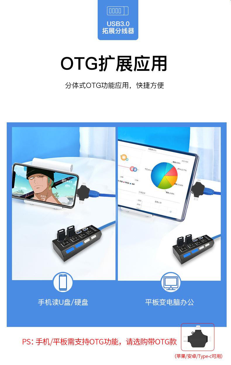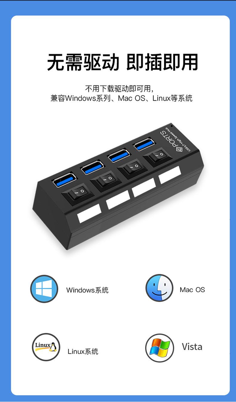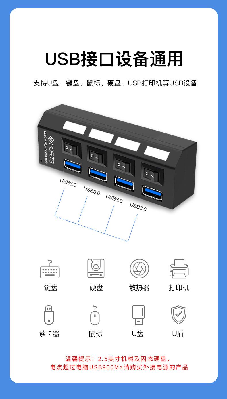 Extensor USB 3.0 de alta velocidad, divisor para ordenador de escritorio, portátil, concentrador multipuerto, concentrador, fuente de alimentación, base de expansión