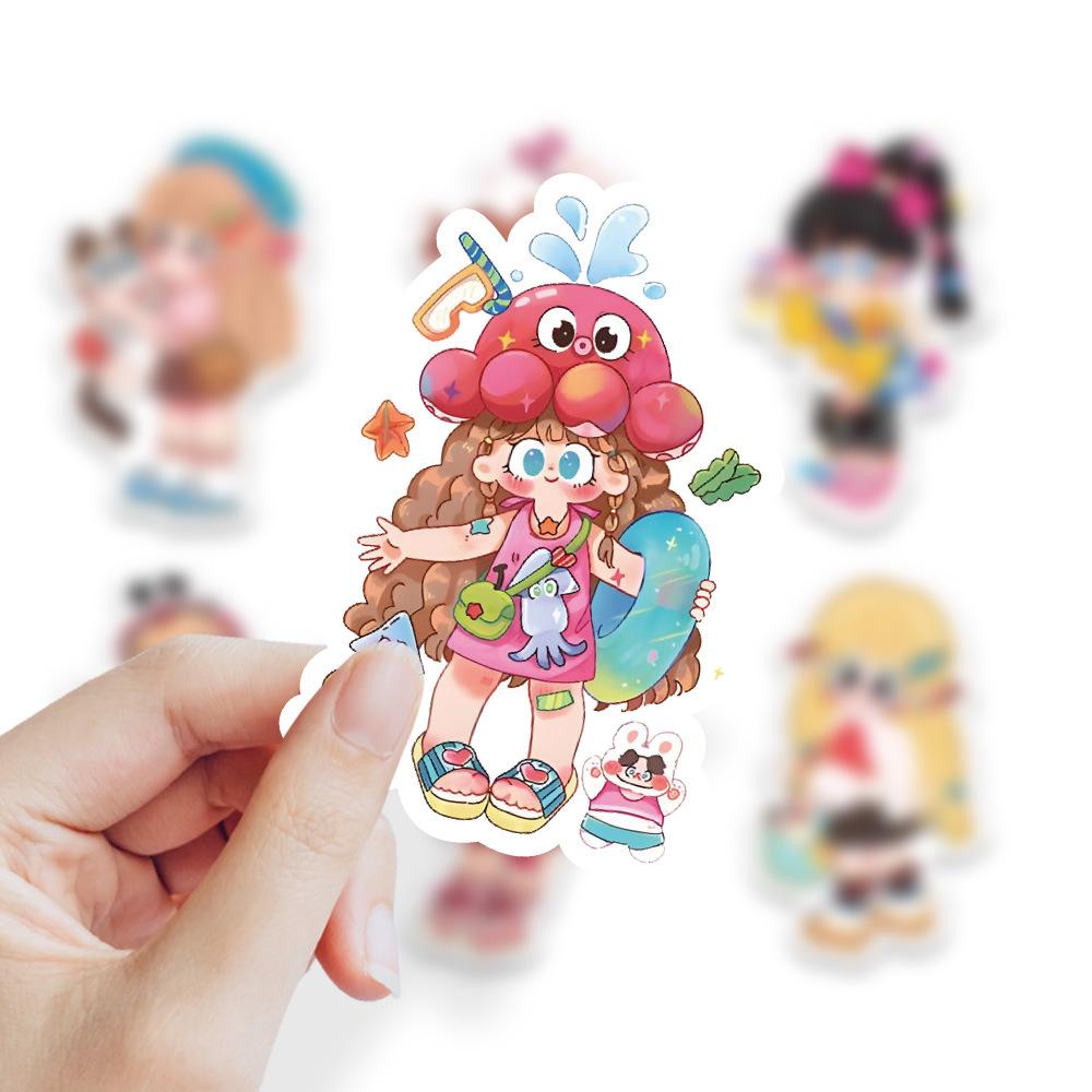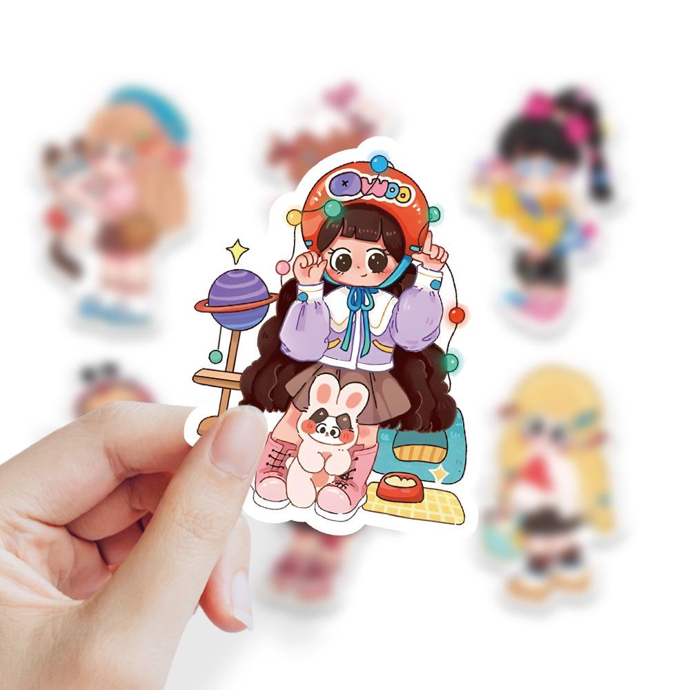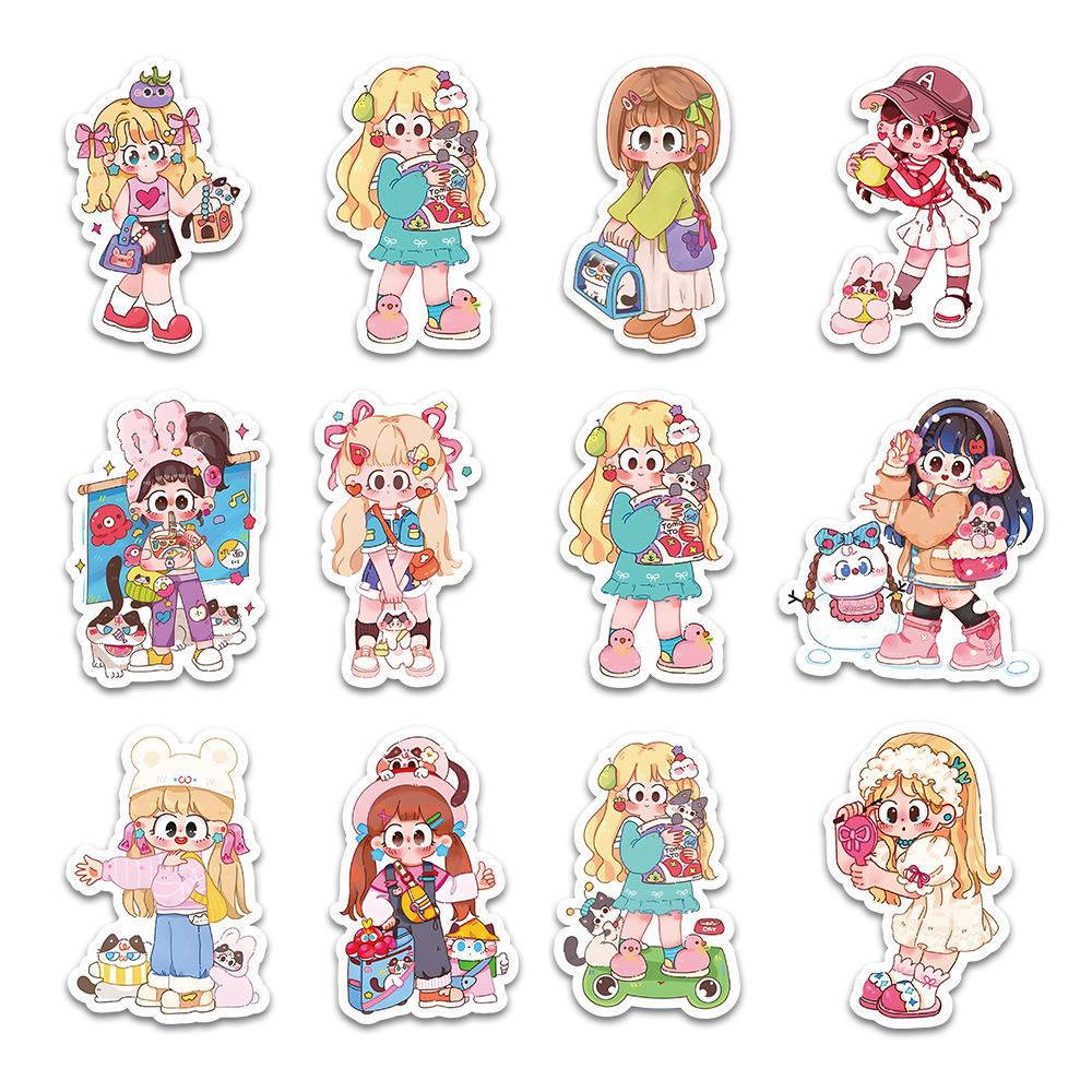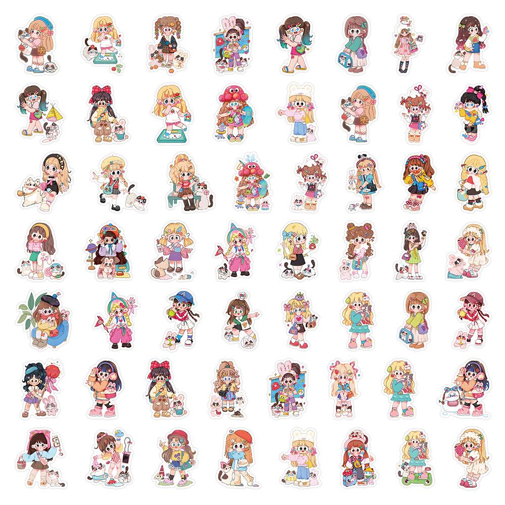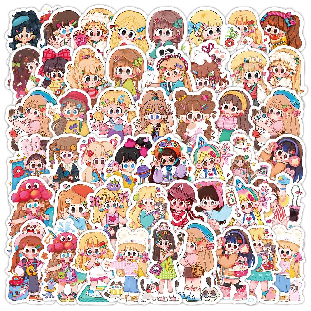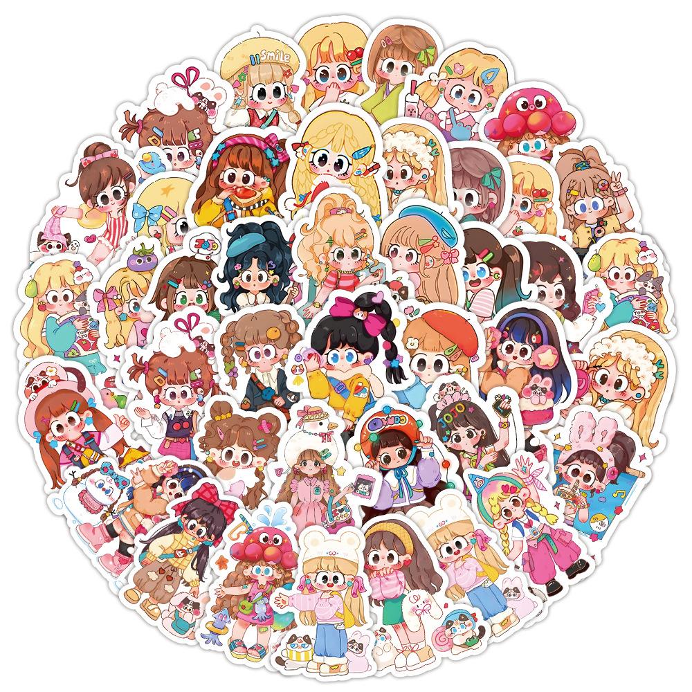 50 pegatinas de grafiti de niña de dibujos animados, lindas pegatinas decorativas para cuaderno, patineta, equipaje, ordenador, pegatinas pequeñas