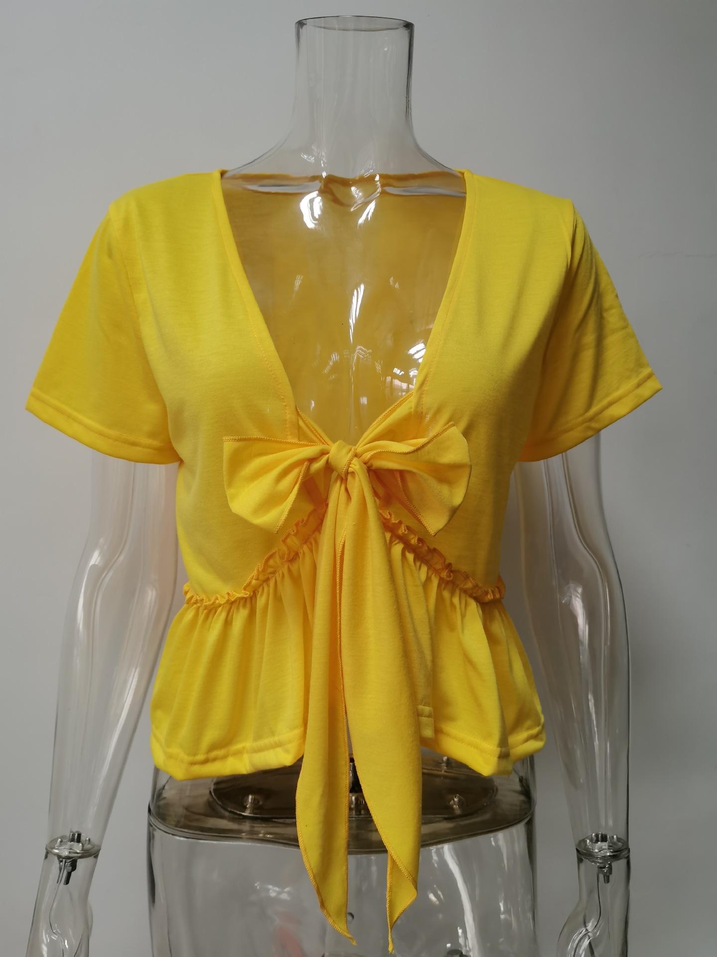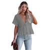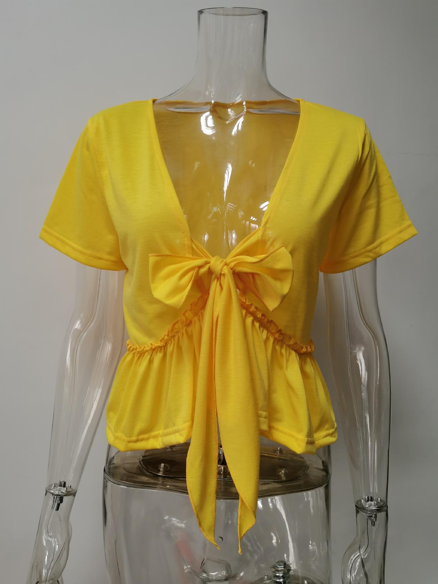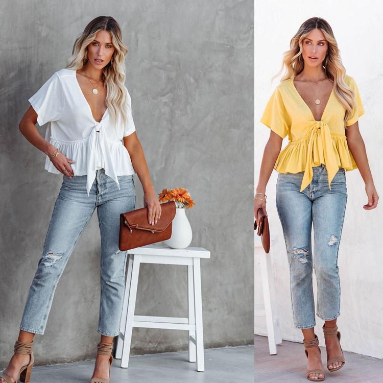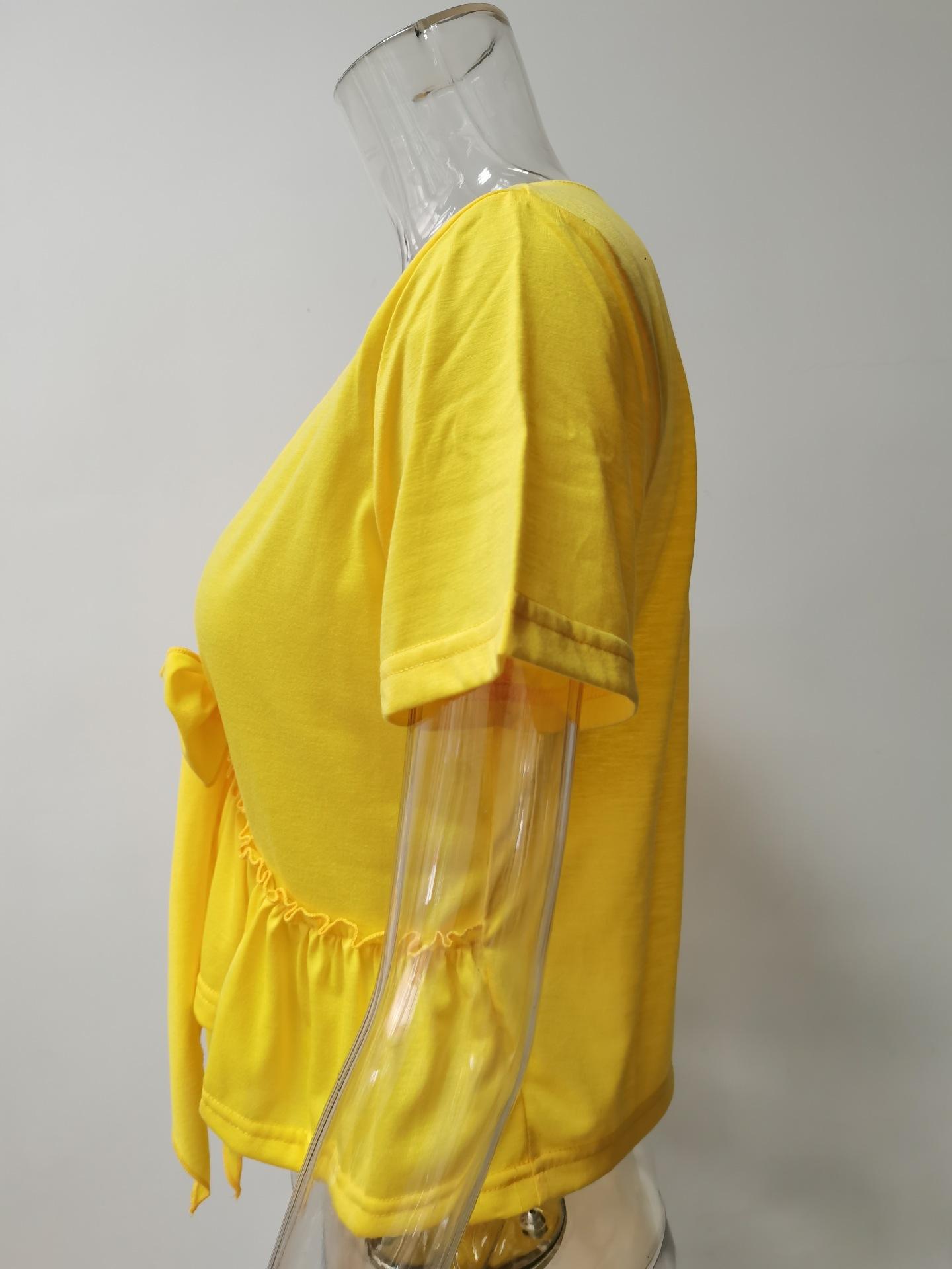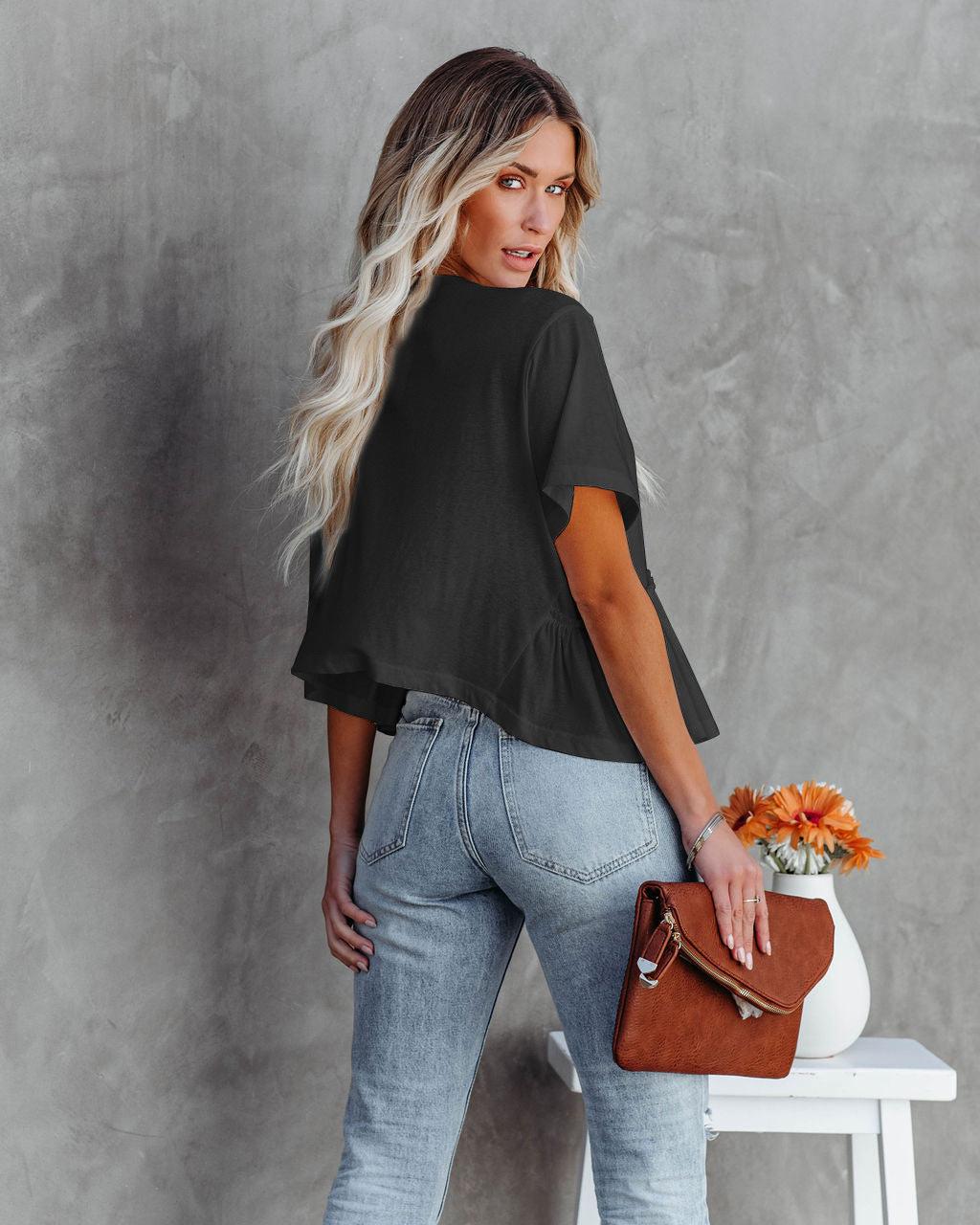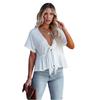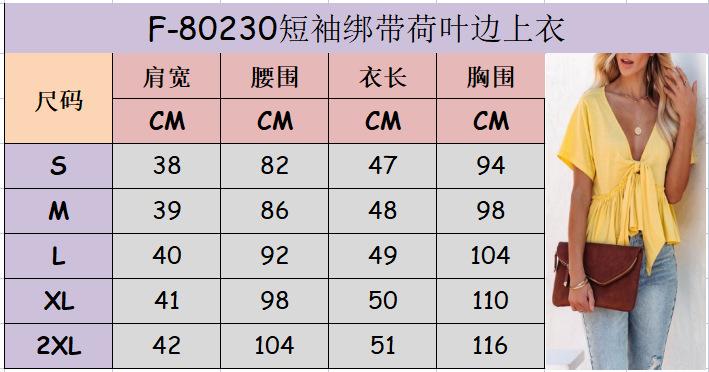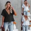 2025 Amazon Verano Nuevo Europeo y Americano Transfronterizo para Mujer Color Puro Empalmado Suelto Manga Corta Tirantes Volante Top