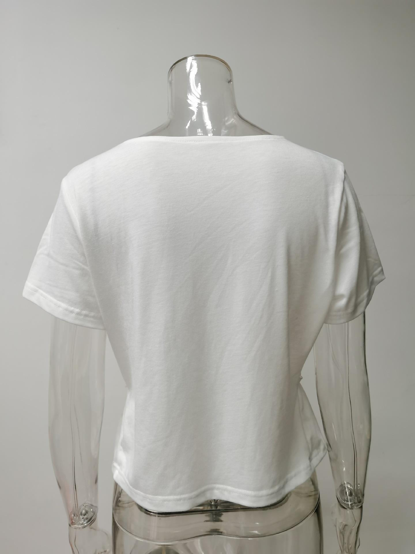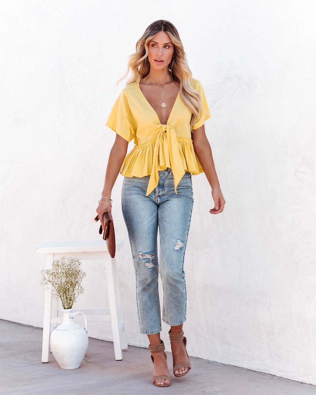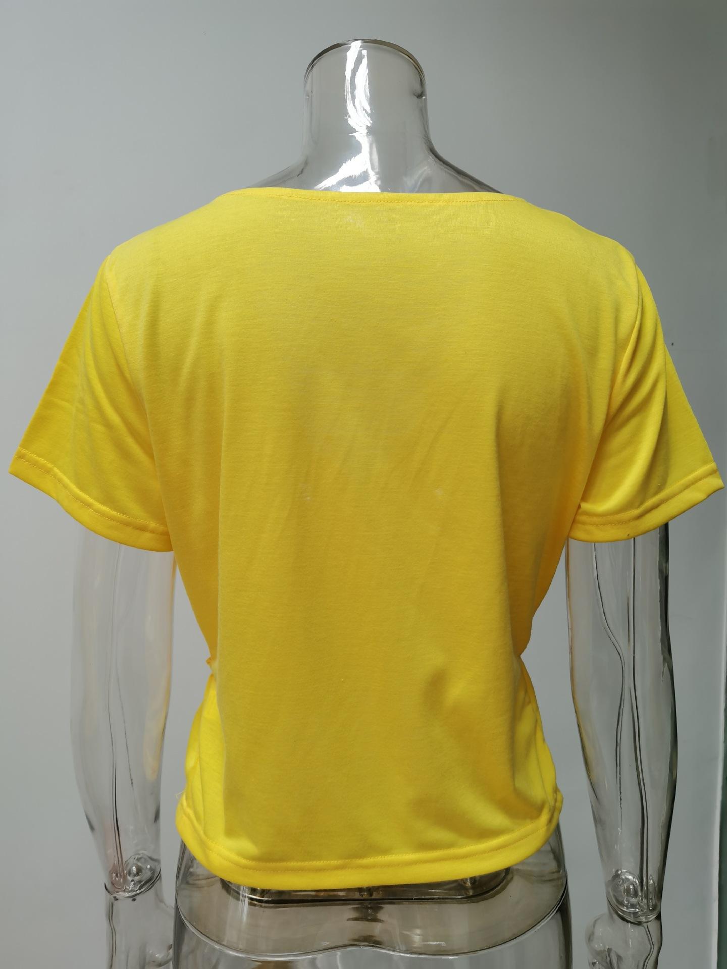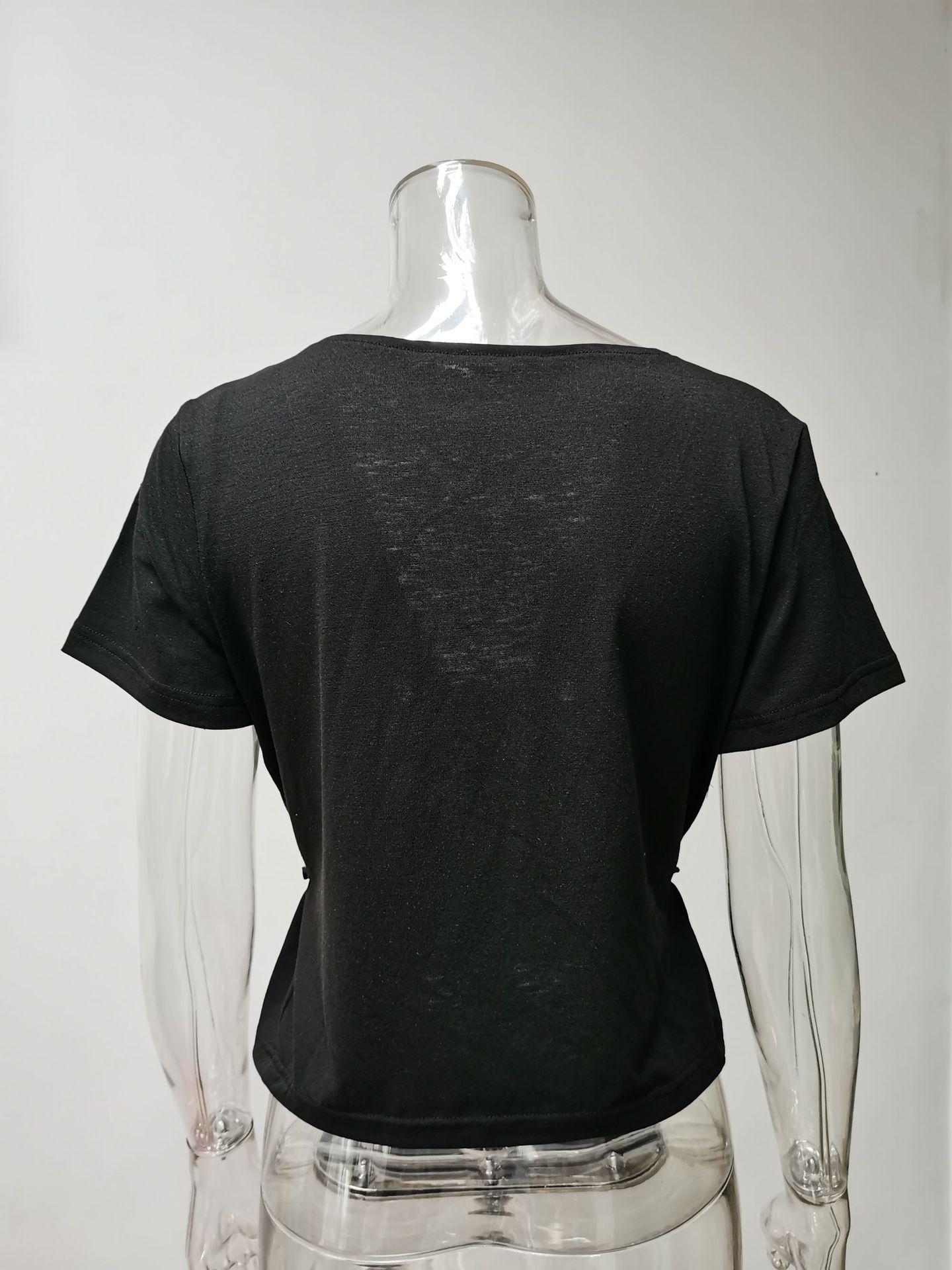 2025 Amazon Verano Nuevo Europeo y Americano Transfronterizo para Mujer Color Puro Empalmado Suelto Manga Corta Tirantes Volante Top