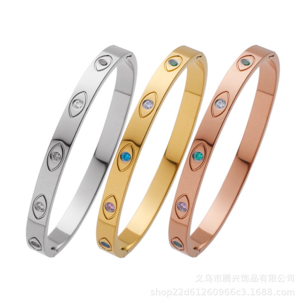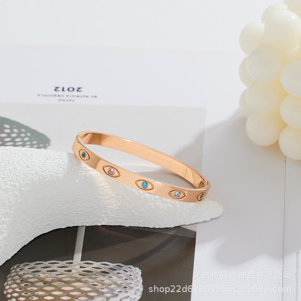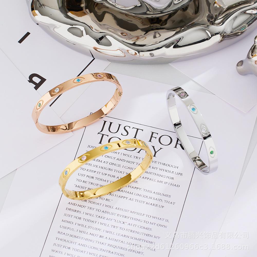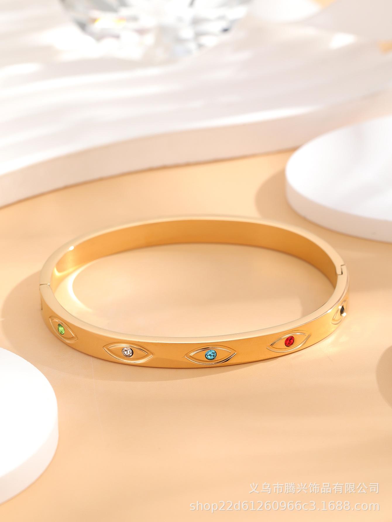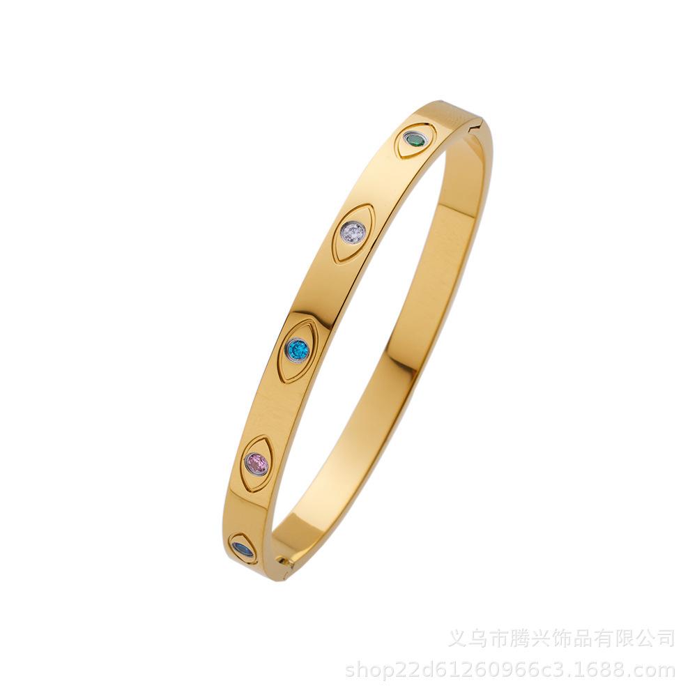 Pulsera Europea y Americana Estilo Ins Ojo del Diablo Celebridad de Internet Acero de Titanio Simple Moda Elegante Pulsera de Oro de 18K Joyería para Mujer