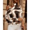 2023 Estación Independiente Deseo Amazon Estilo Caliente Otoño e Invierno Manga Larga Cadena Halter Estampado Botón Decorativo Top para Mujer
