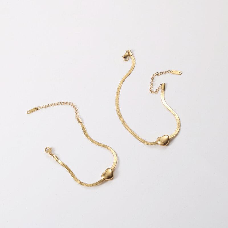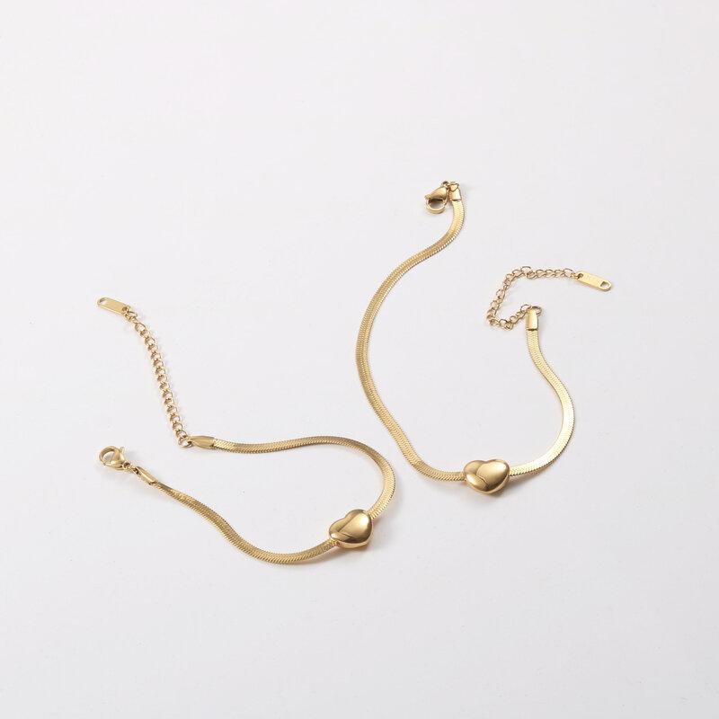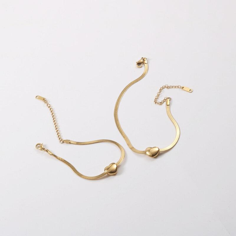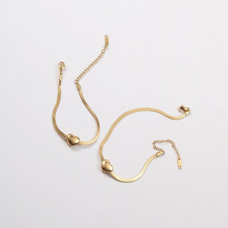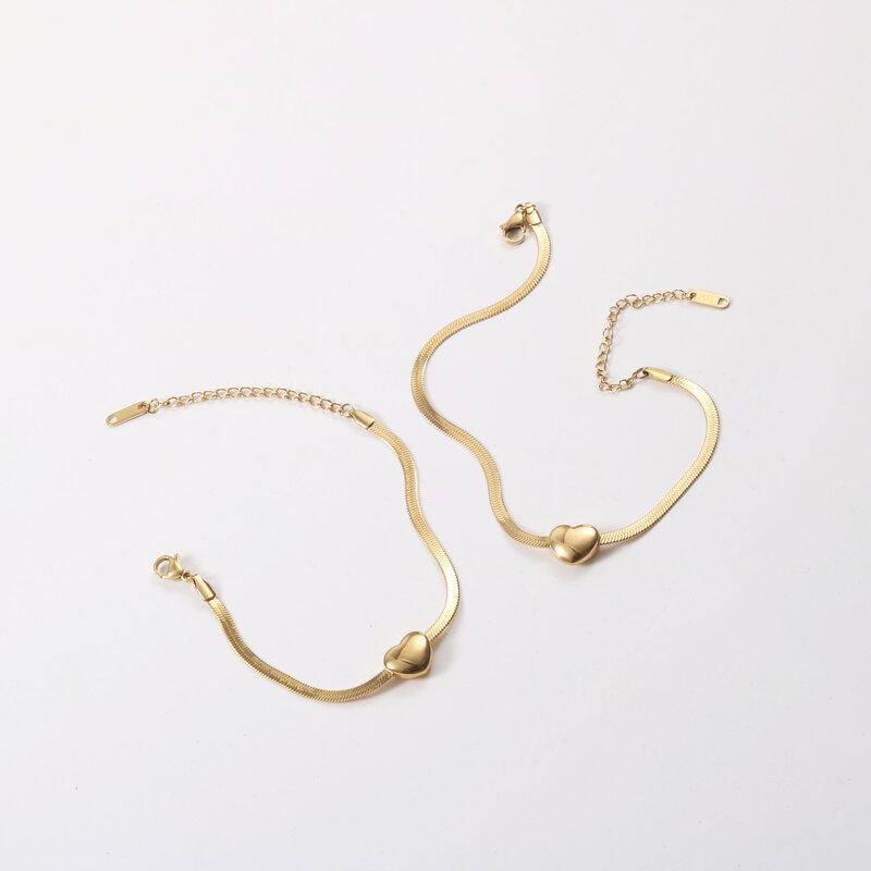 Golden anklet 21+5, heart 1.2*1j031, Golden bracelet 15.5+5, heart 1.2*1 Br140