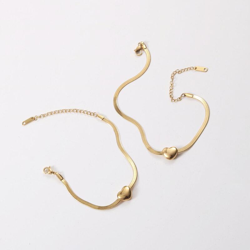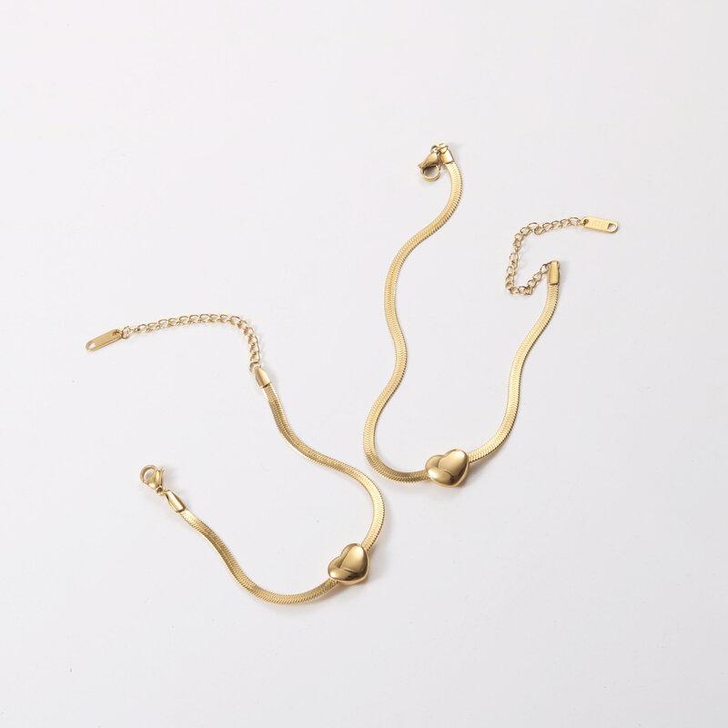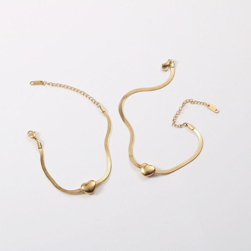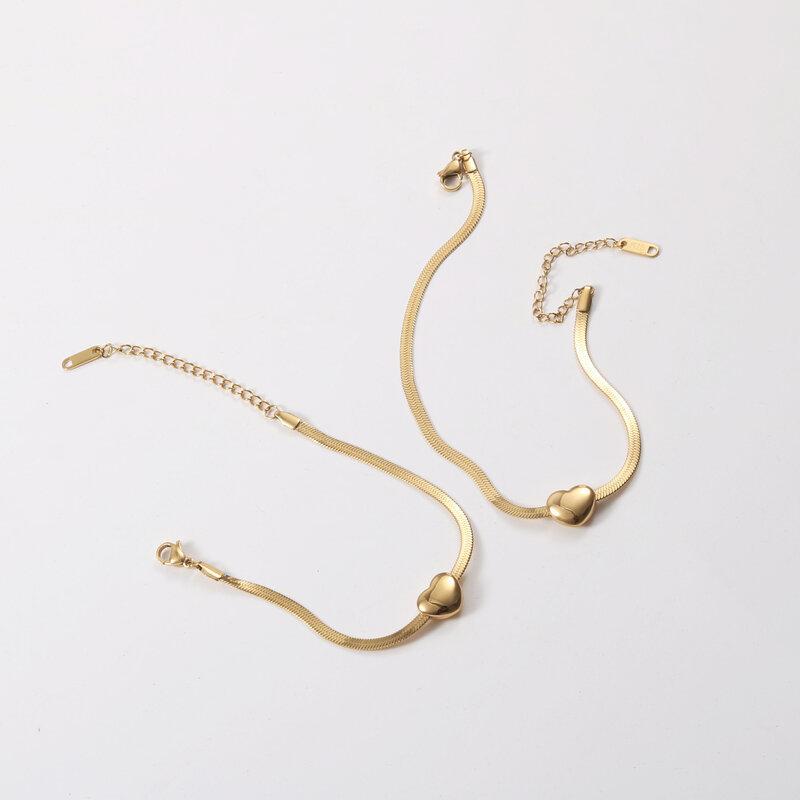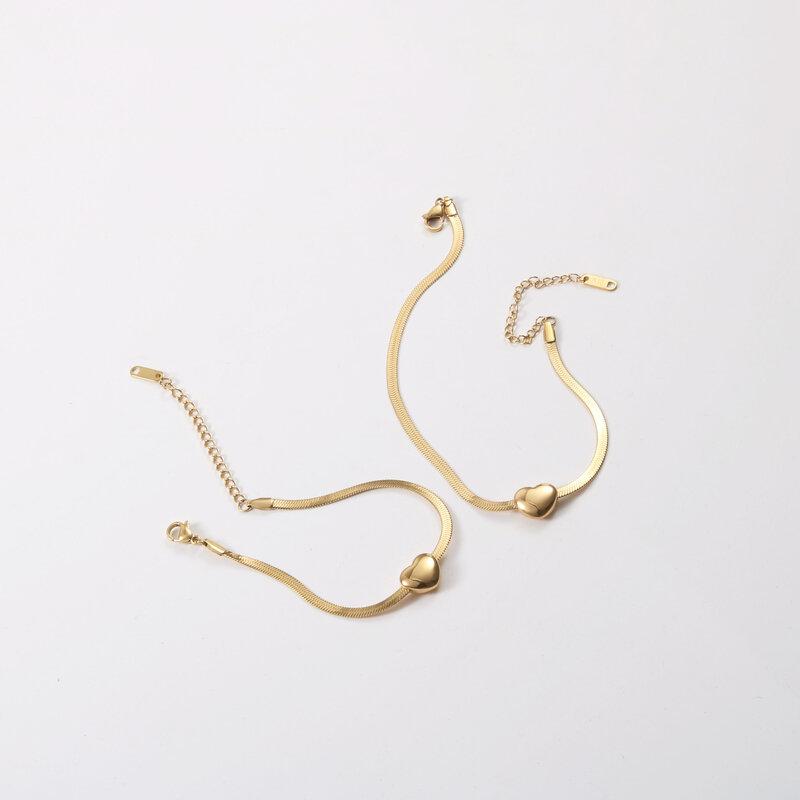 Golden anklet 21+5, heart 1.2*1j031, Golden bracelet 15.5+5, heart 1.2*1 Br140