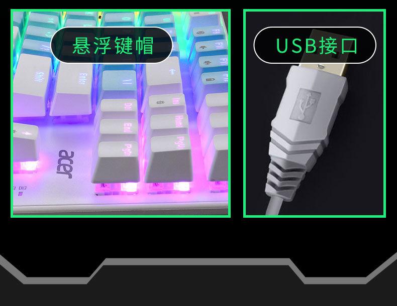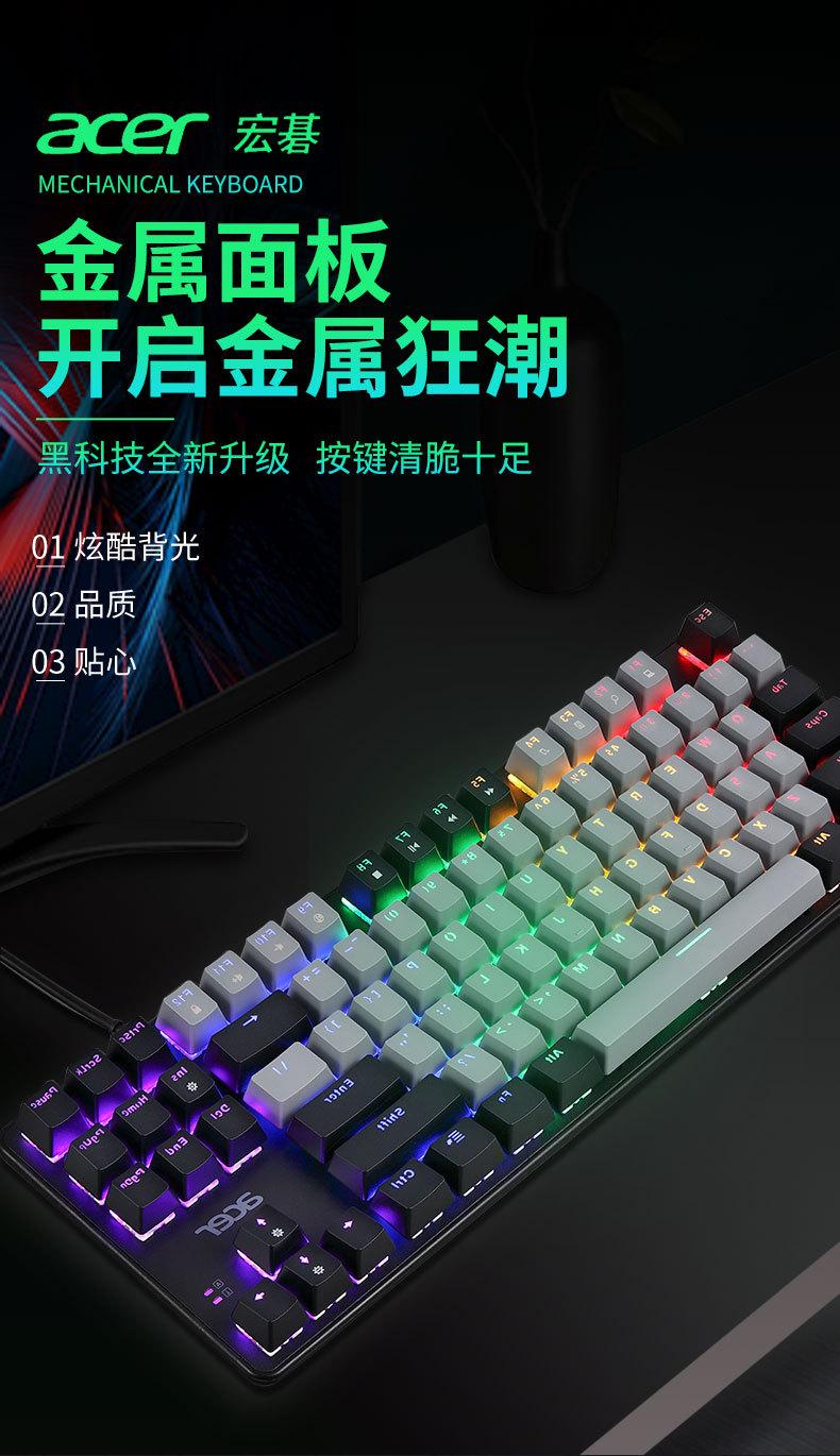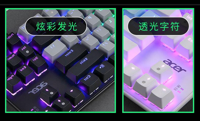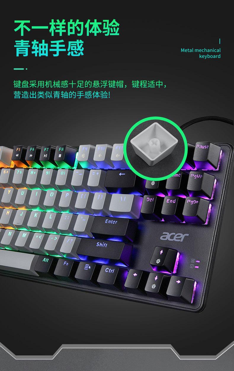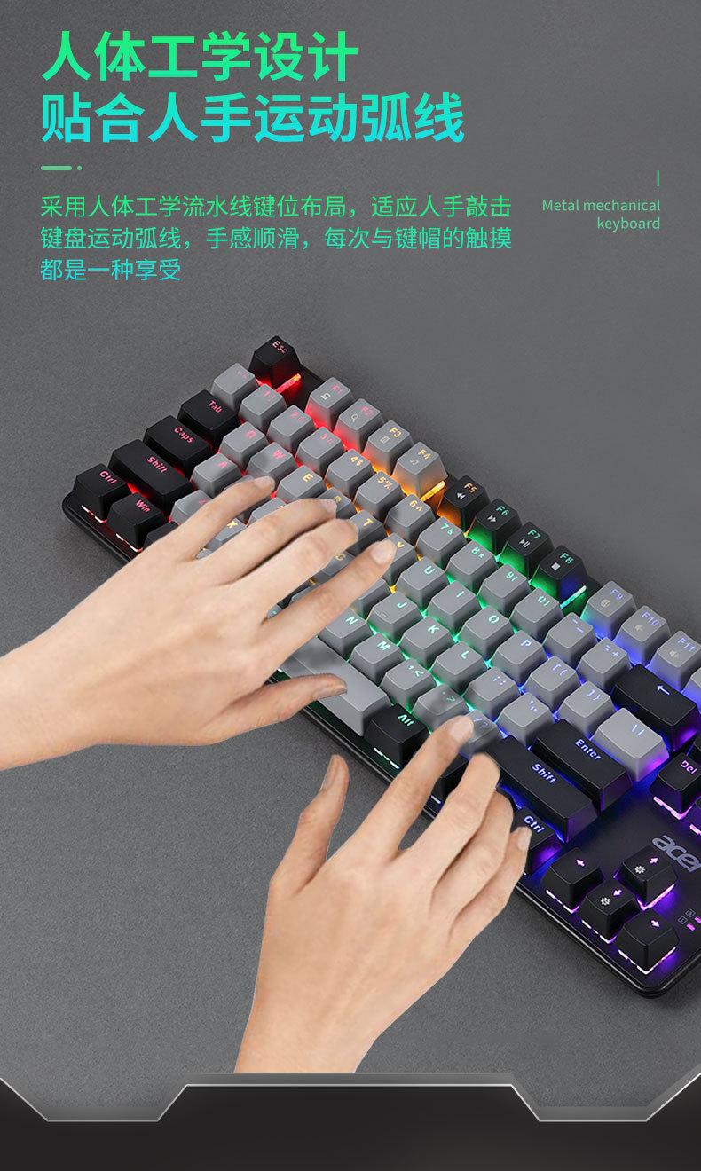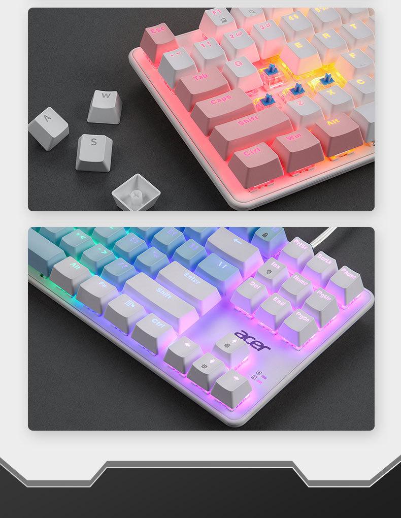 Teclado Mecánico Alámbrico para Computadora de 87 Teclas Eje Verde Acer/Acer Okw132 al por Mayor USB Juego E-Sports Combinación de Colores