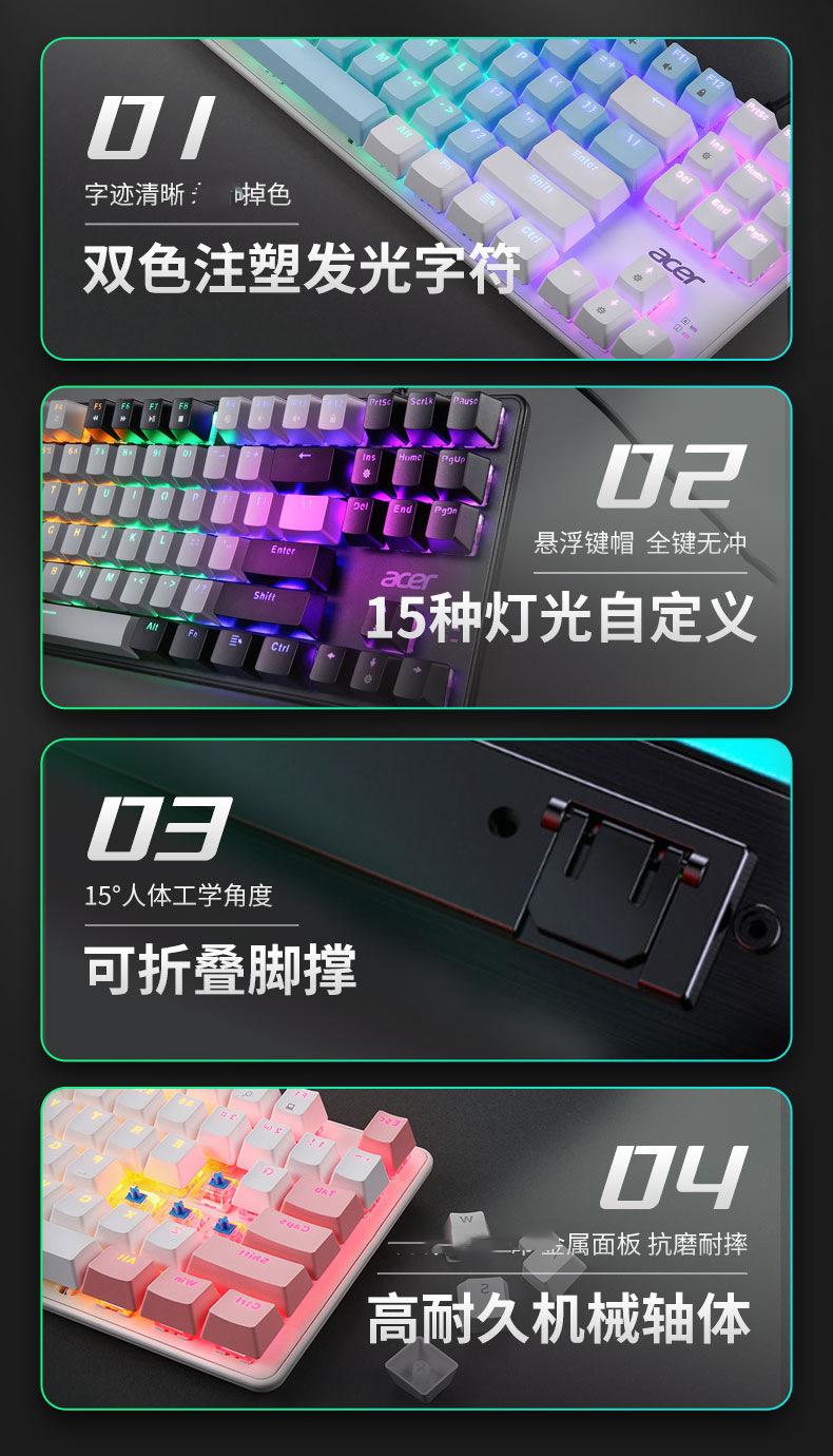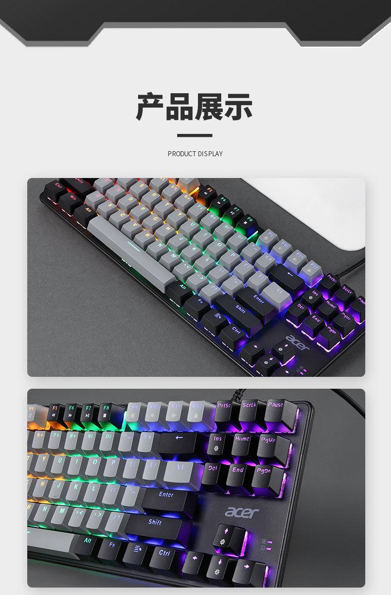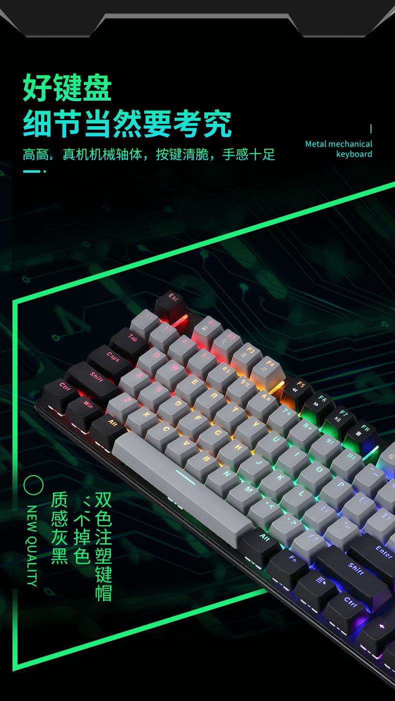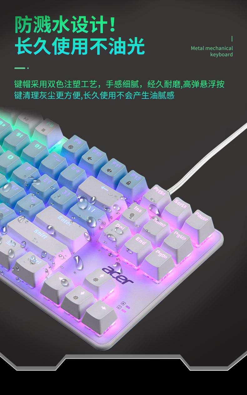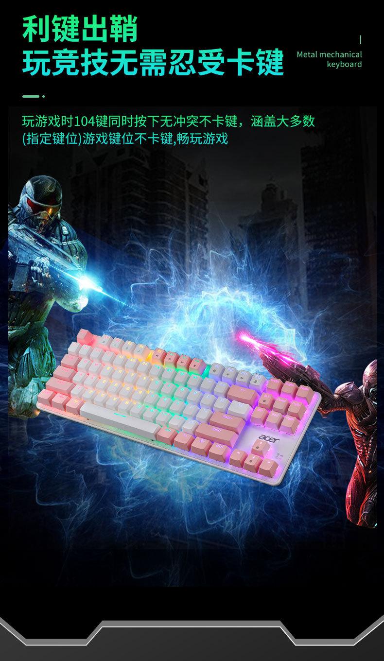 Teclado Mecánico Alámbrico para Computadora de 87 Teclas Eje Verde Acer/Acer Okw132 al por Mayor USB Juego E-Sports Combinación de Colores