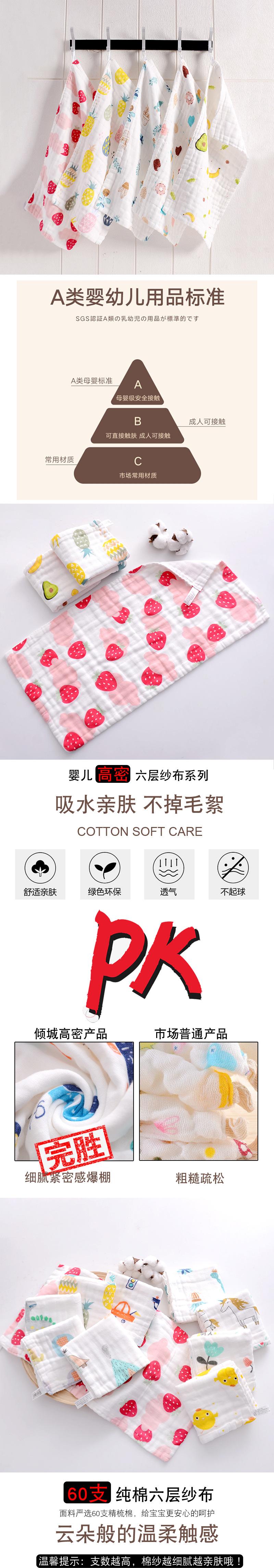 Toalla de bebé de seis capas de alta densidad, de gasa de algodón, para niños, pequeña, de algodón, suave, al por mayor