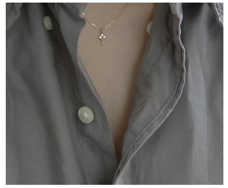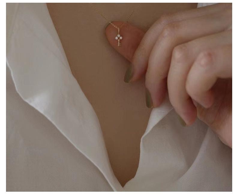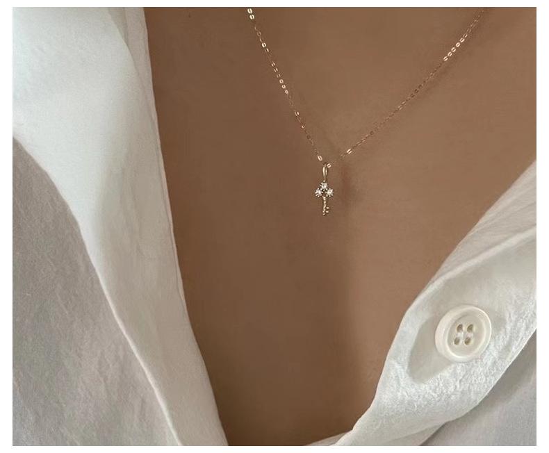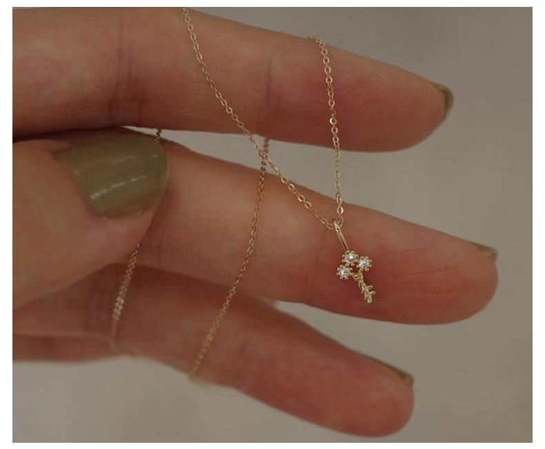 Collar con colgante de llave de oro de 14 quilates bañado en plata esterlina japonesa S925 para mujer, diseño de nicho con incrustaciones de diamantes, cadena de clavícula de lujo ligera y moderna.