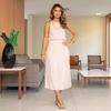 Conjunto de dos piezas de blusa sin mangas de color liso para mujer, falda acampanada de media manga, estilo Amazon transfronterizo europeo y americano, novedad de verano de 2024