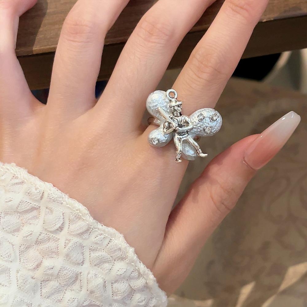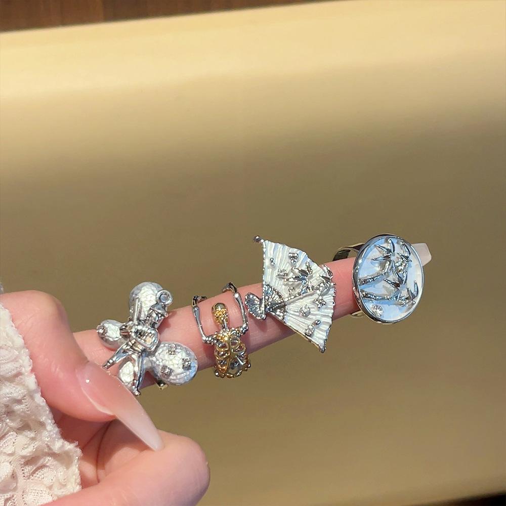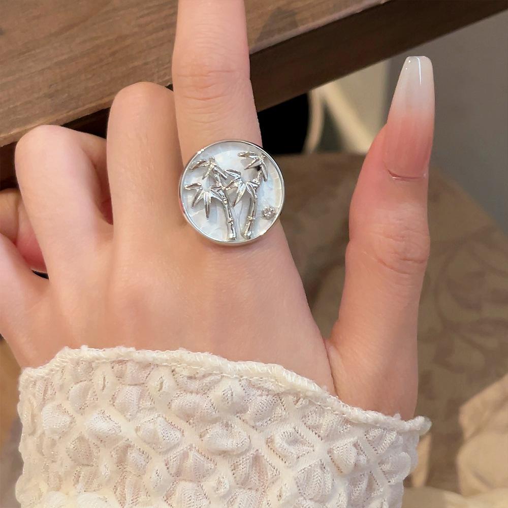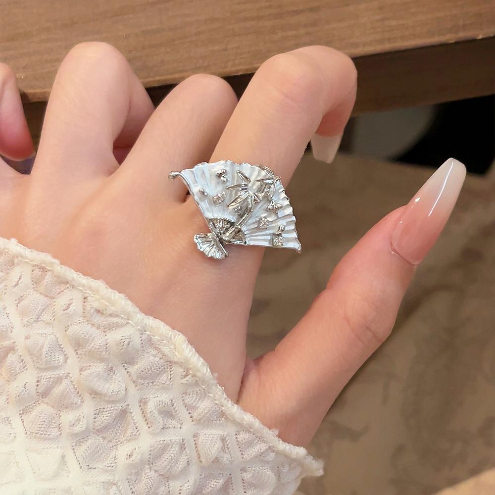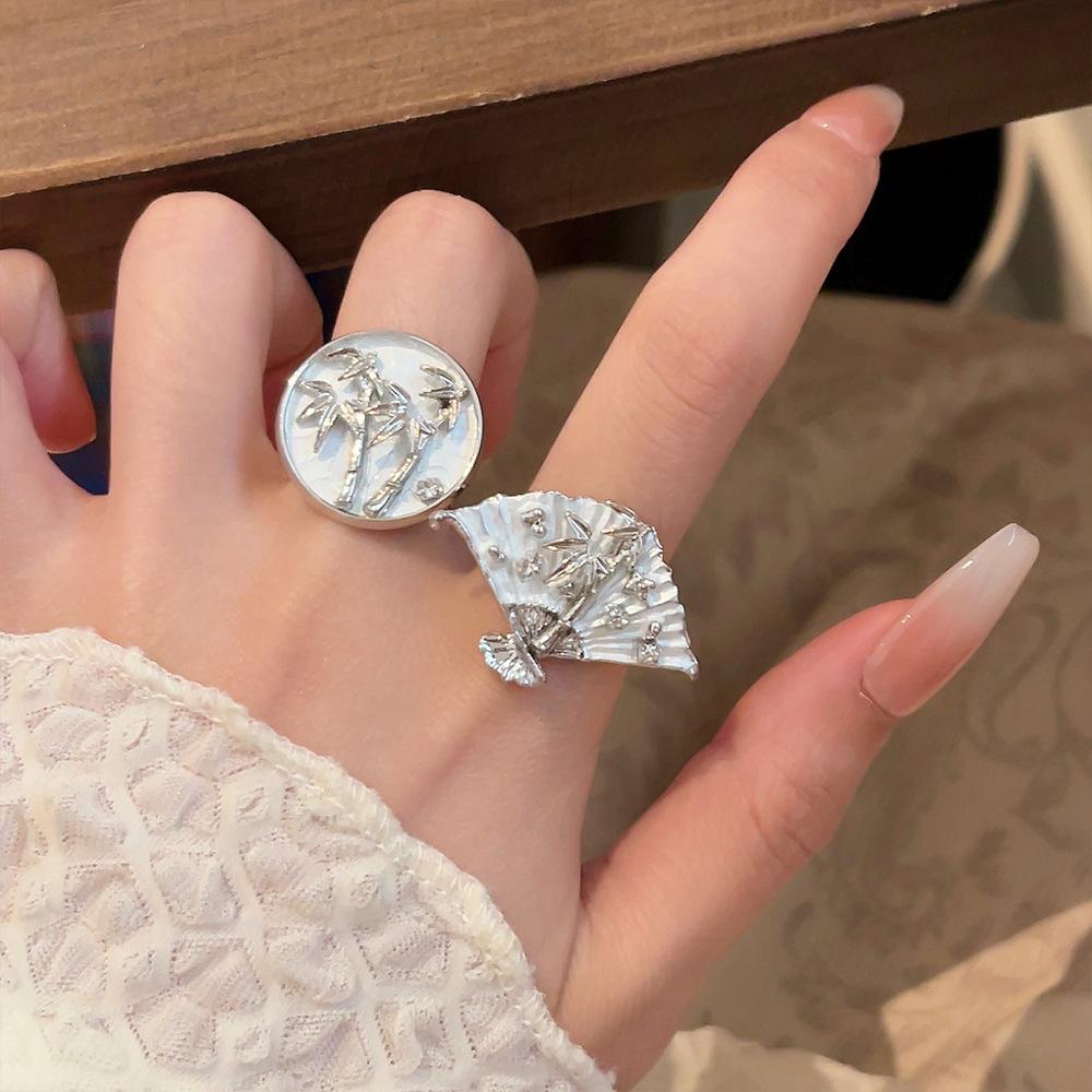 Nuevo Anillo de Abanico Plegable con Relieve de Bambú Estilo Nacional Chinoiserie para Sexys Dulces y Cool Anillo Personalizado Nicho de Alta Gama para Dedo Índice
