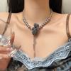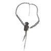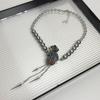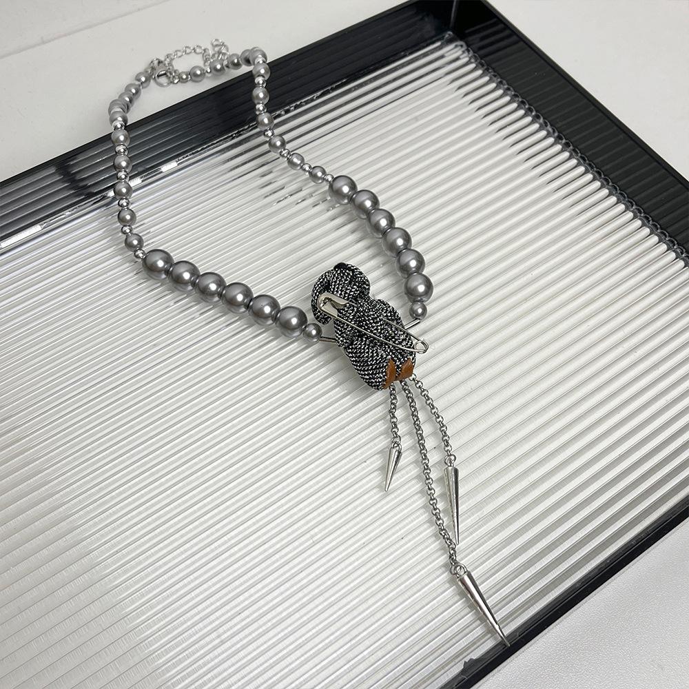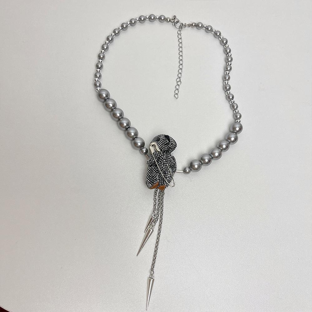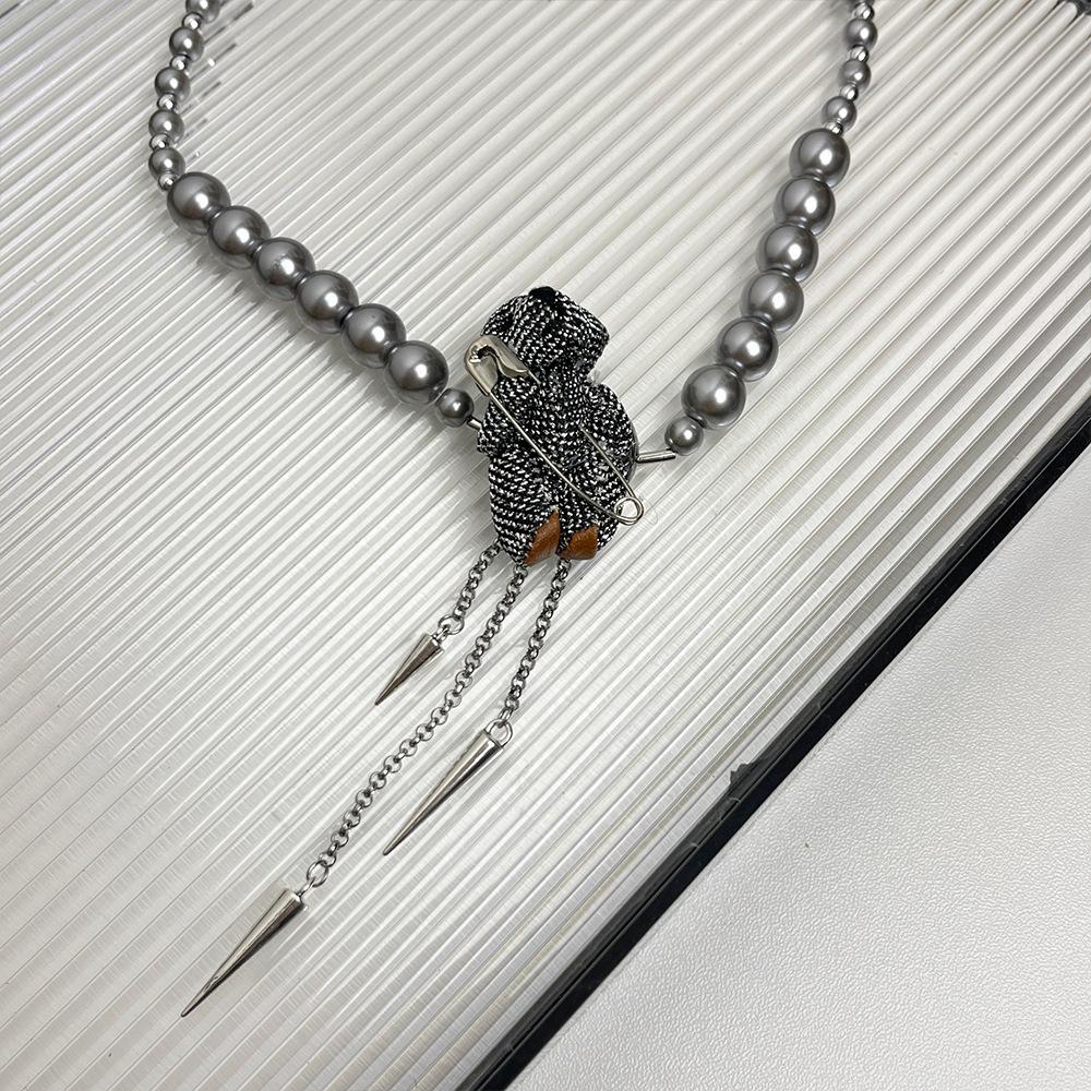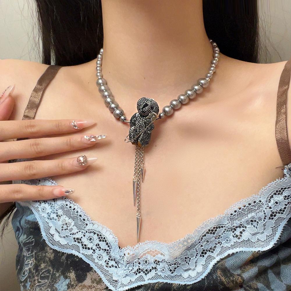 Dulce collar fresco de oso pequeño con remache y borla, diseño punk, cadena para clavícula de perla gris, nuevo collar de personalidad