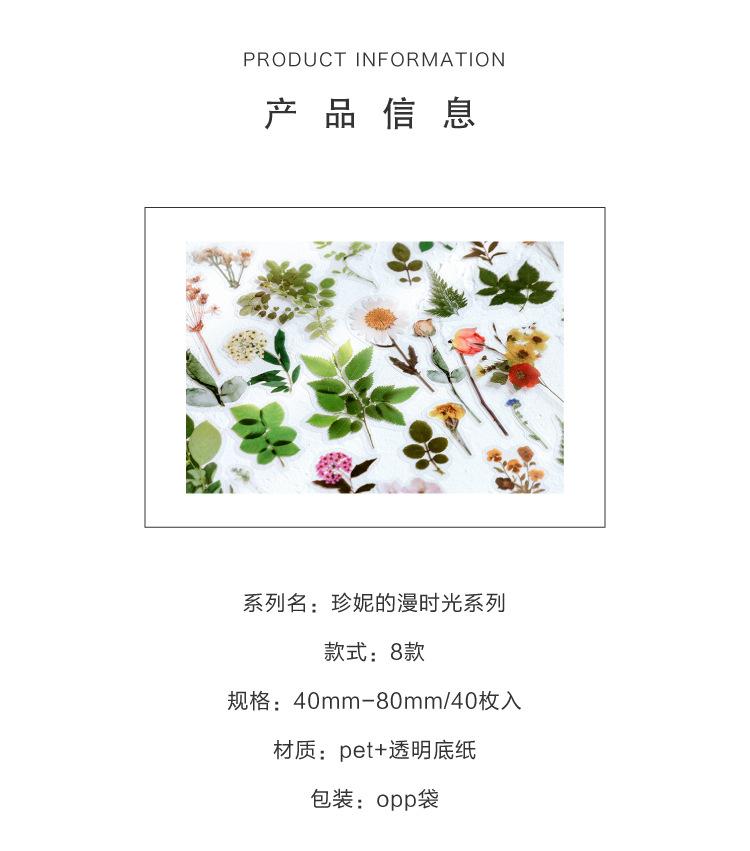 Set de Stickers Transparentes para Mascotas Jenny's Cartoon Time Retro Planta Flor Niña Decoración Material Fresco
