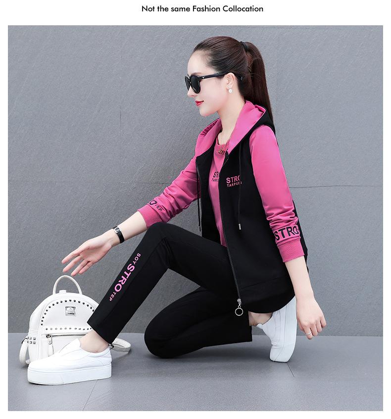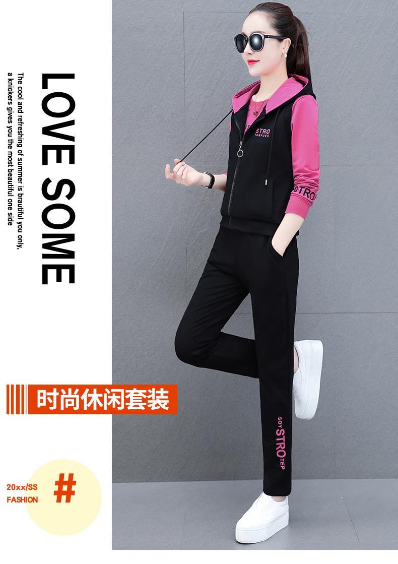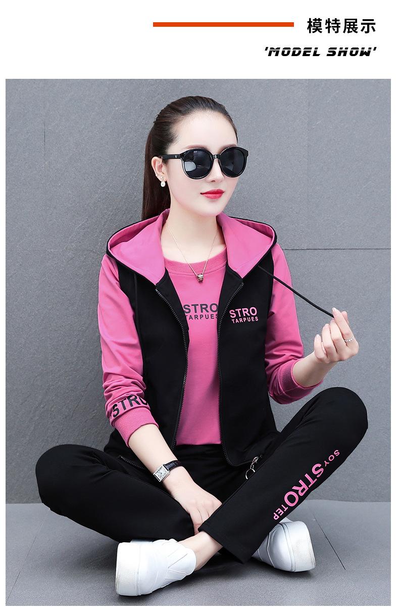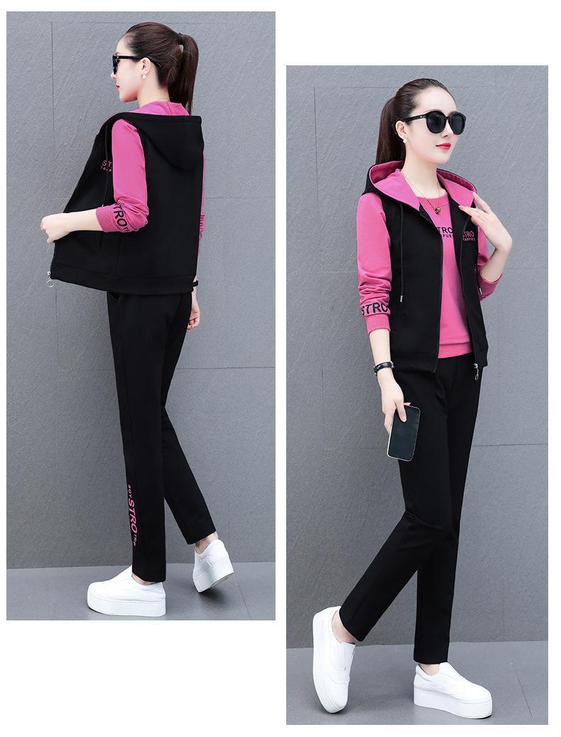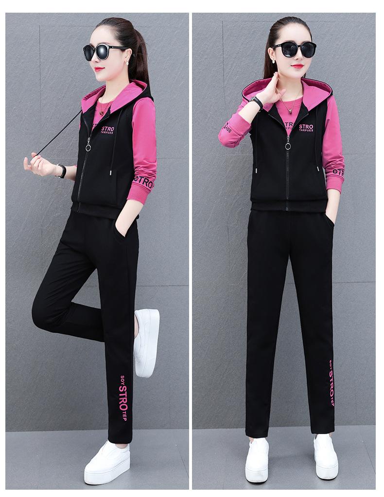 Traje Deportivo Sudadera para Mujer Conjunto de Tres Piezas Primavera y Otoño 2025 Nuevo Casual Holgado Moda Reductor de Edad Estilo Otoñal
