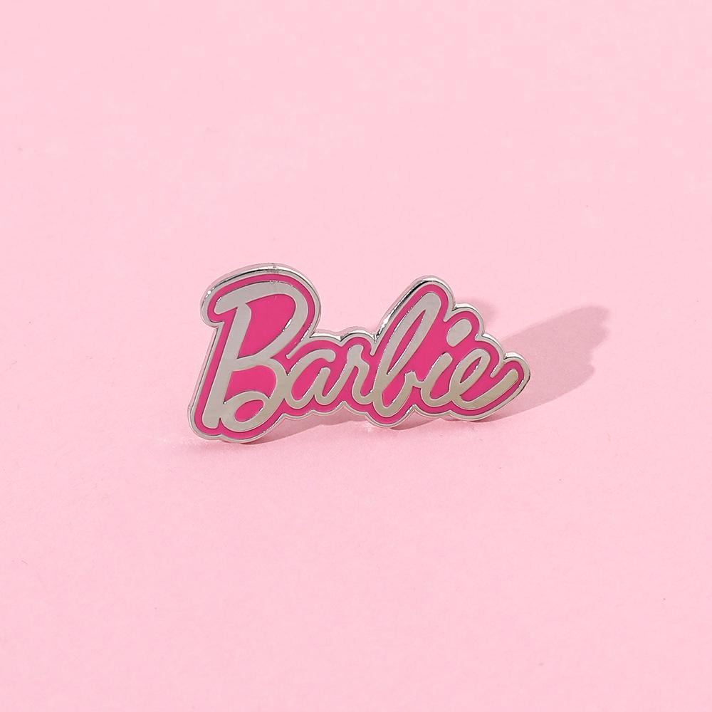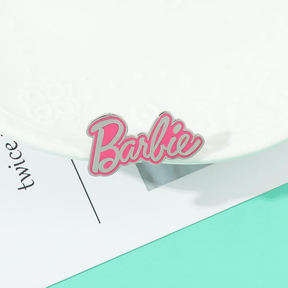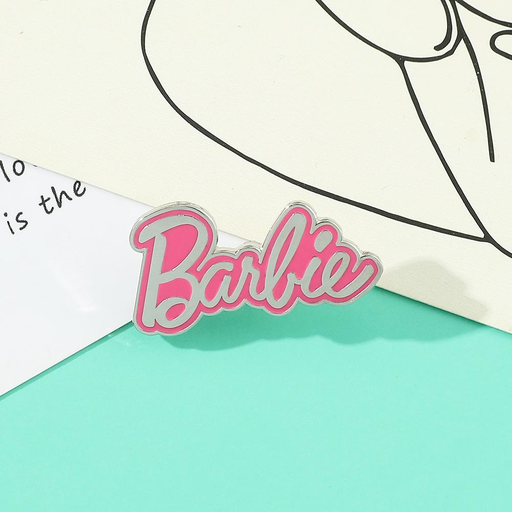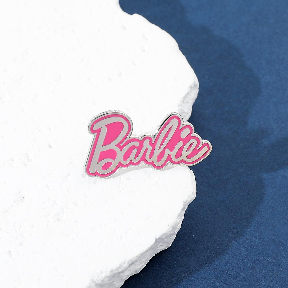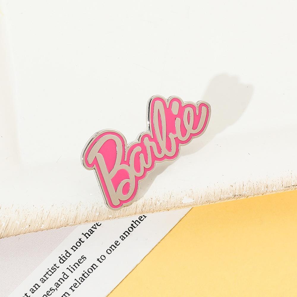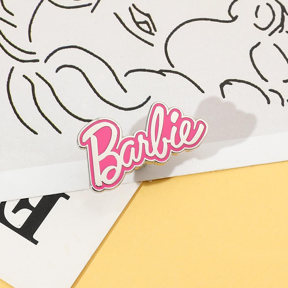 Broche de Barbie con letra inglesa rosa de metal, accesorio para bolso de aleación con goteo de aceite.