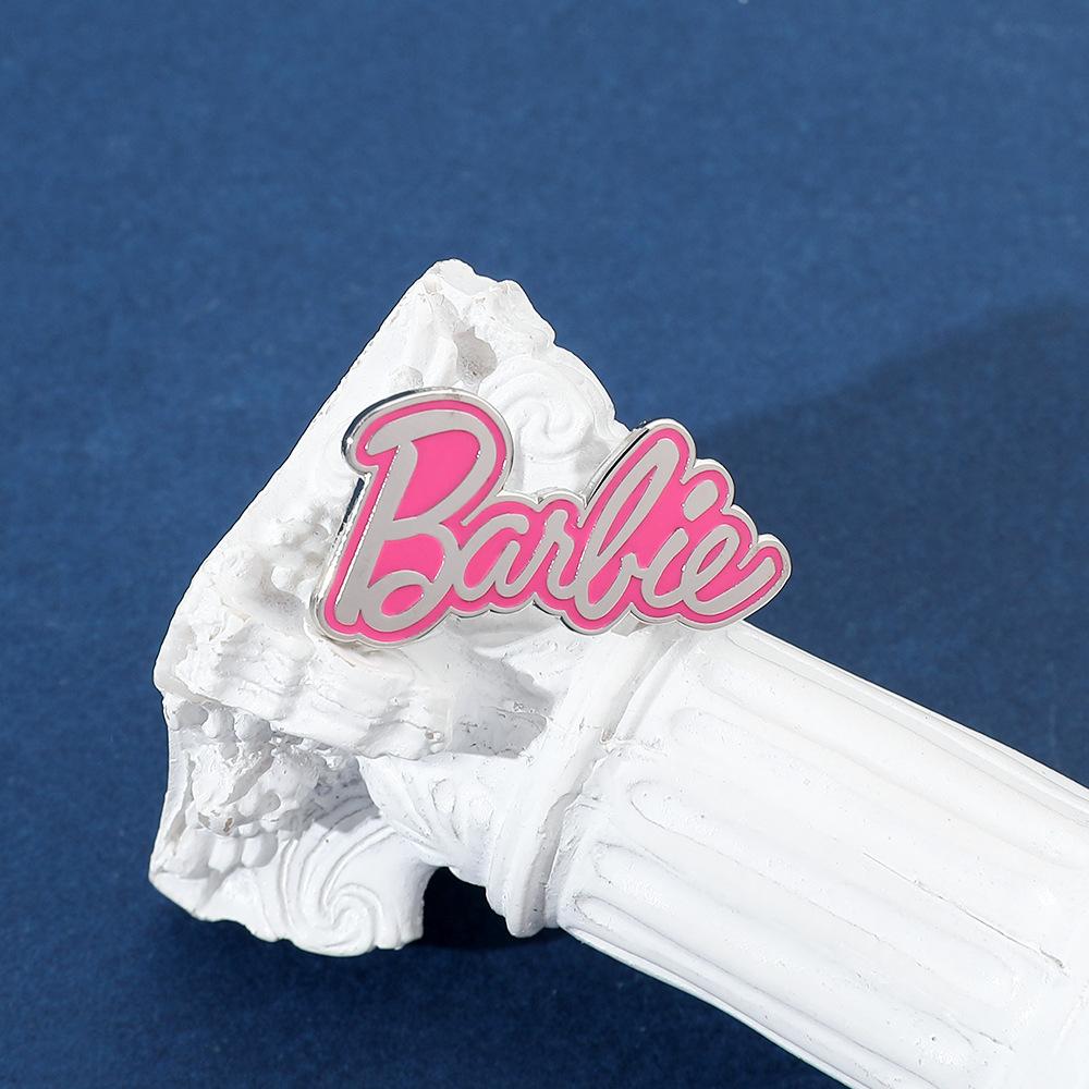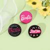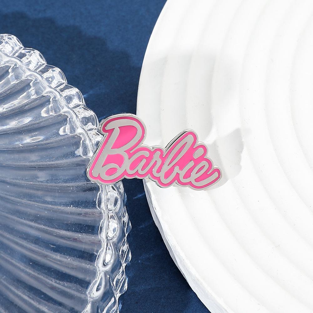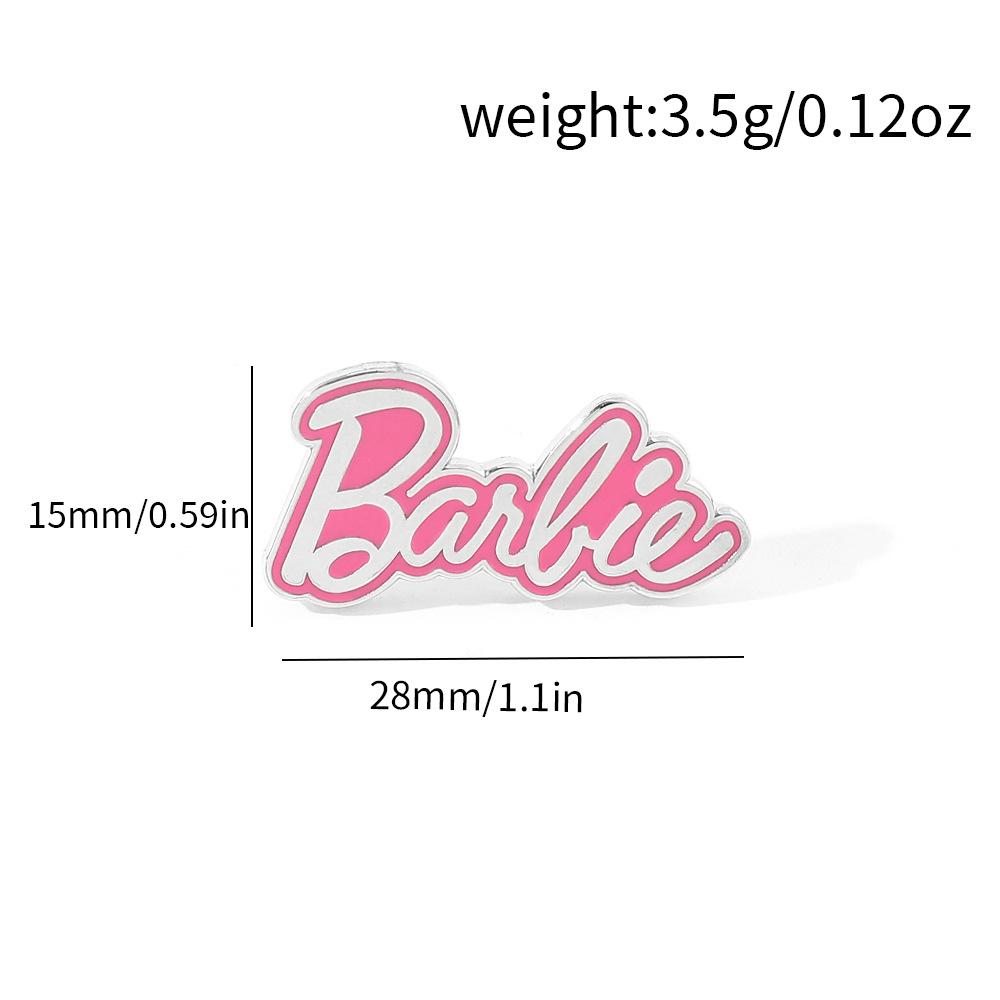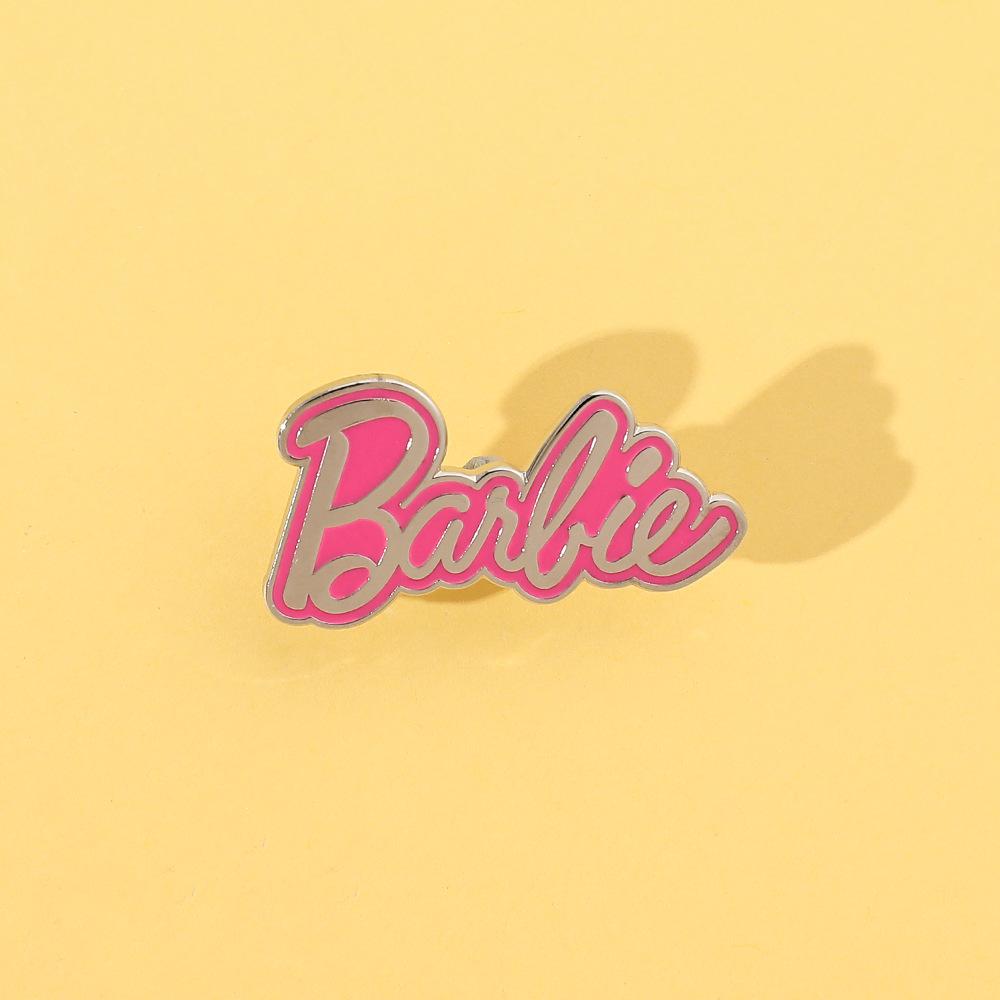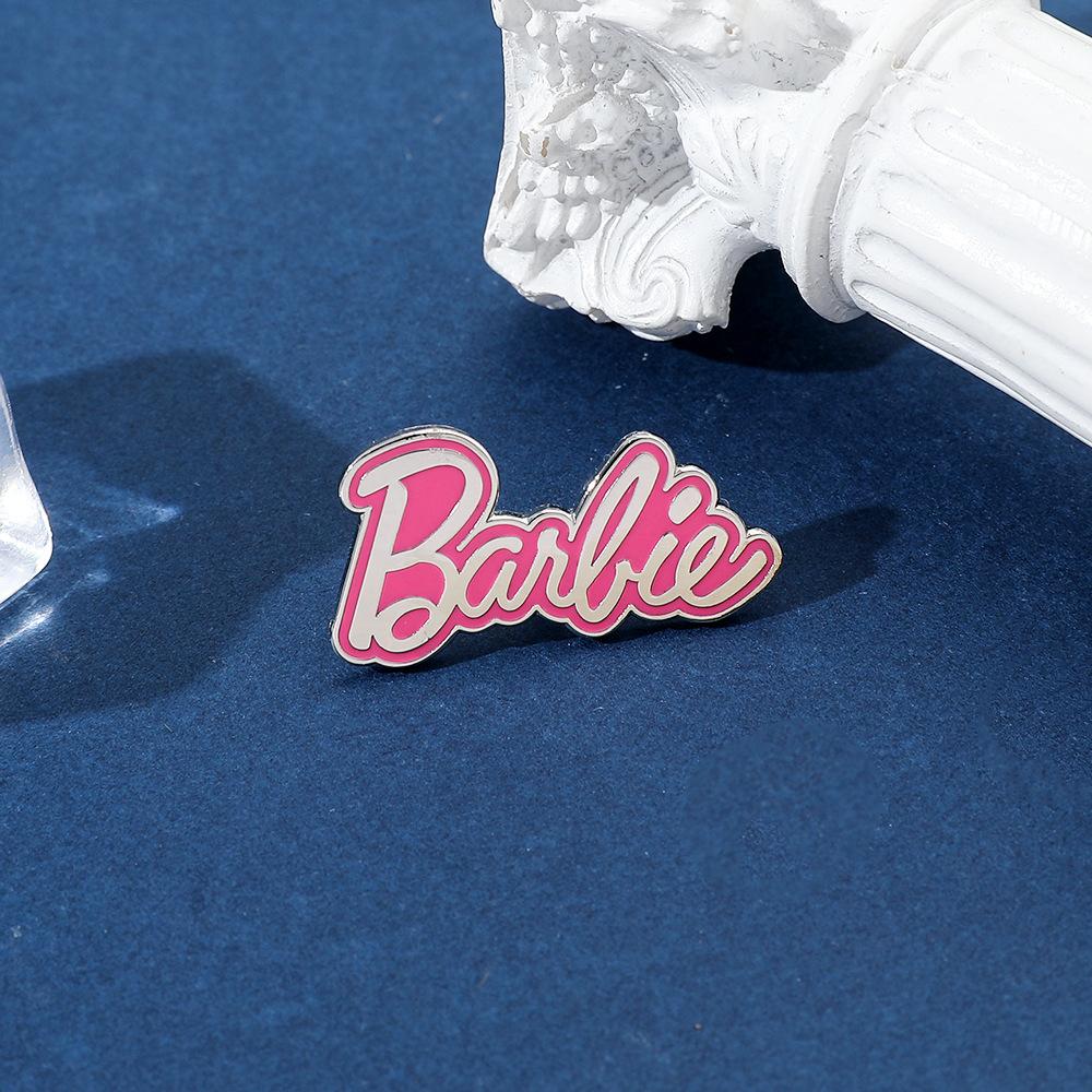 Broche de Barbie con letra inglesa rosa de metal, accesorio para bolso de aleación con goteo de aceite.