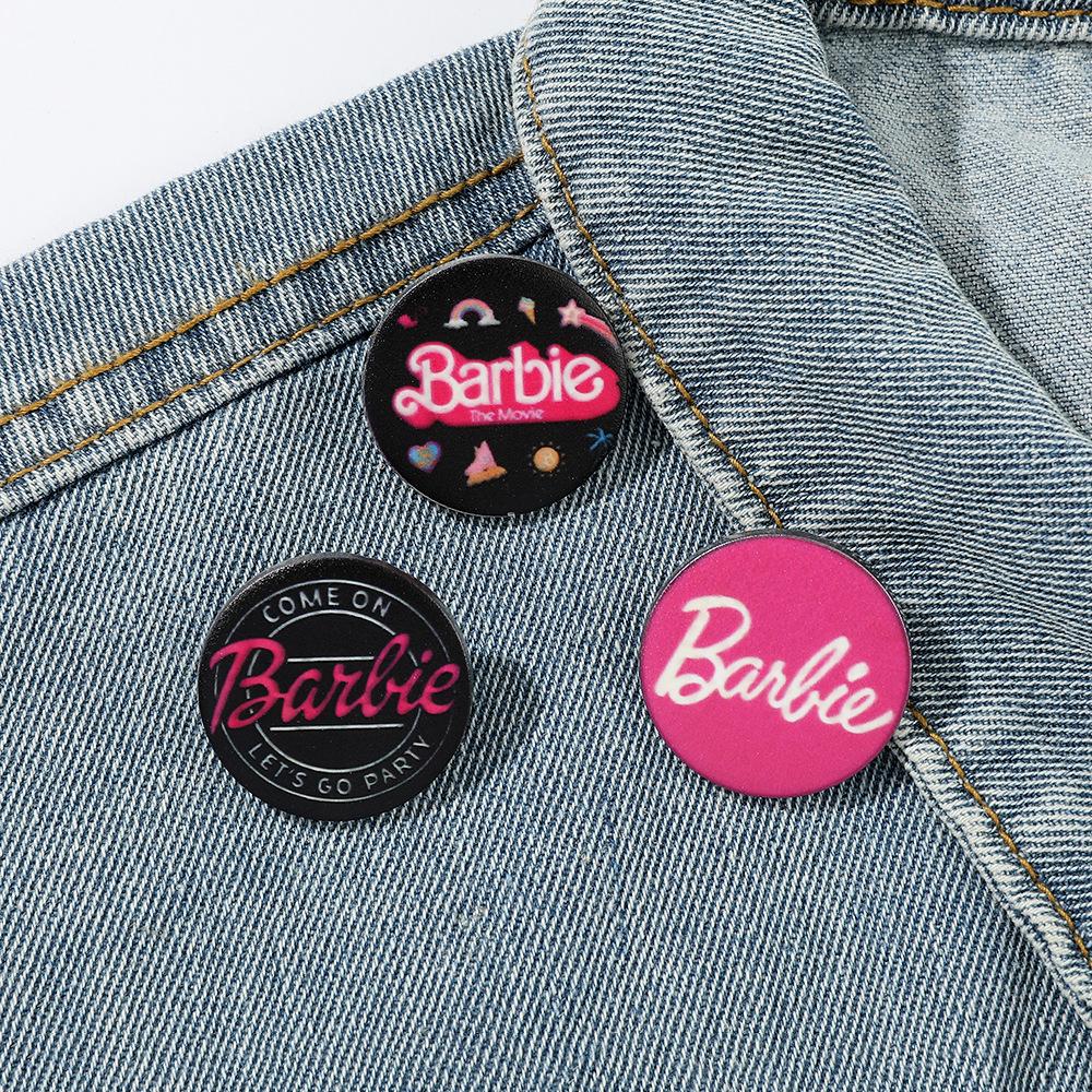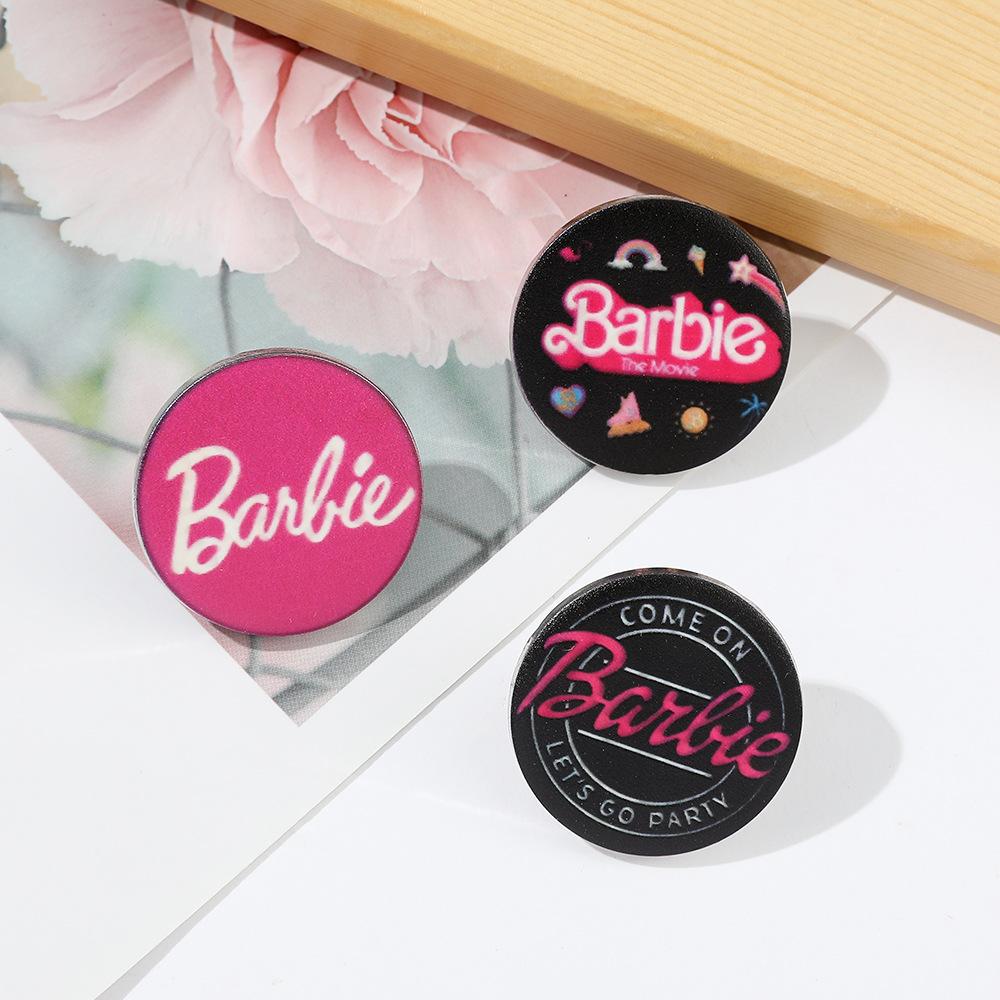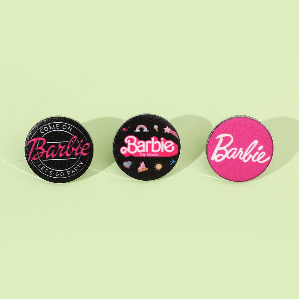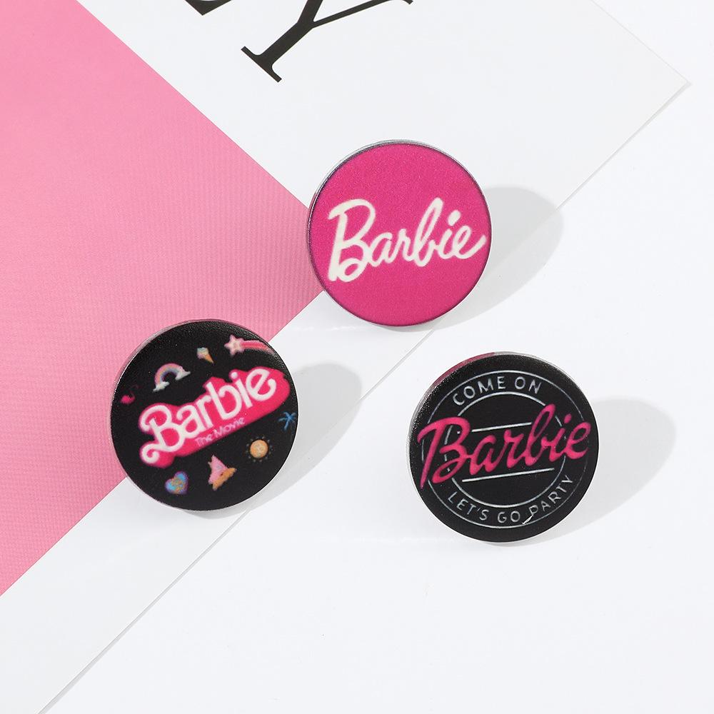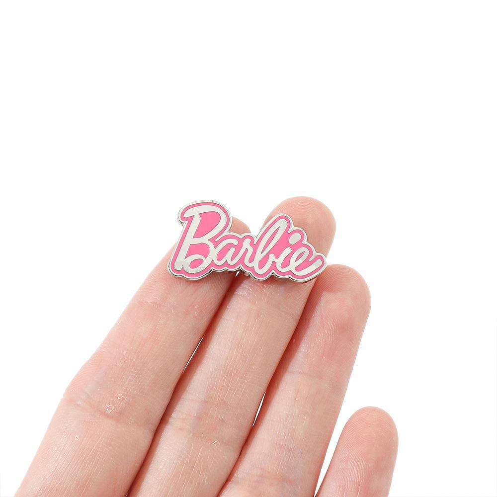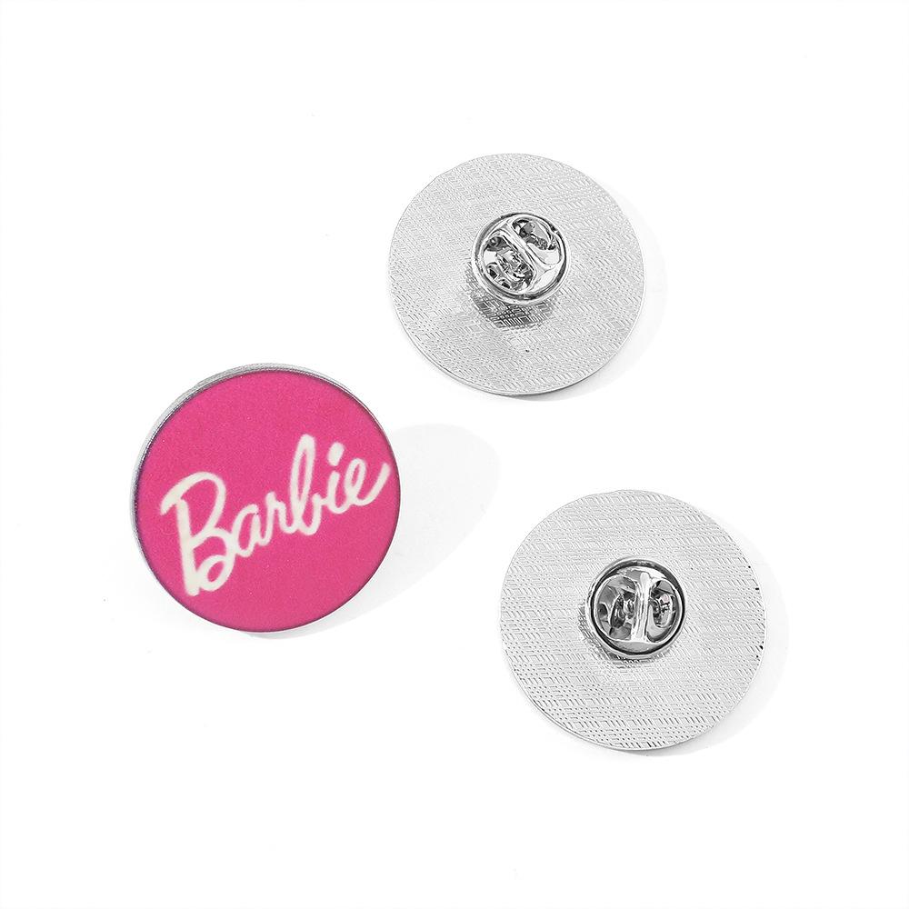 Broche de Barbie con letra inglesa rosa de metal, accesorio para bolso de aleación con goteo de aceite.