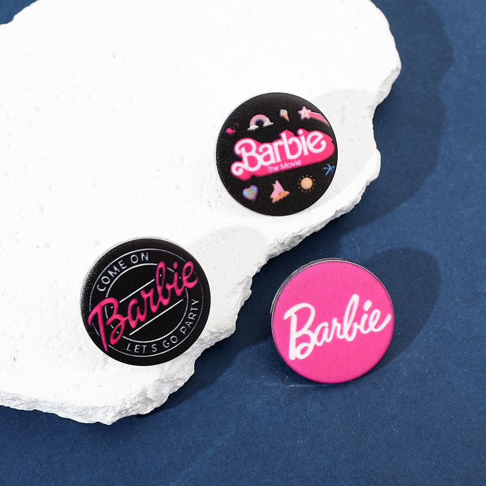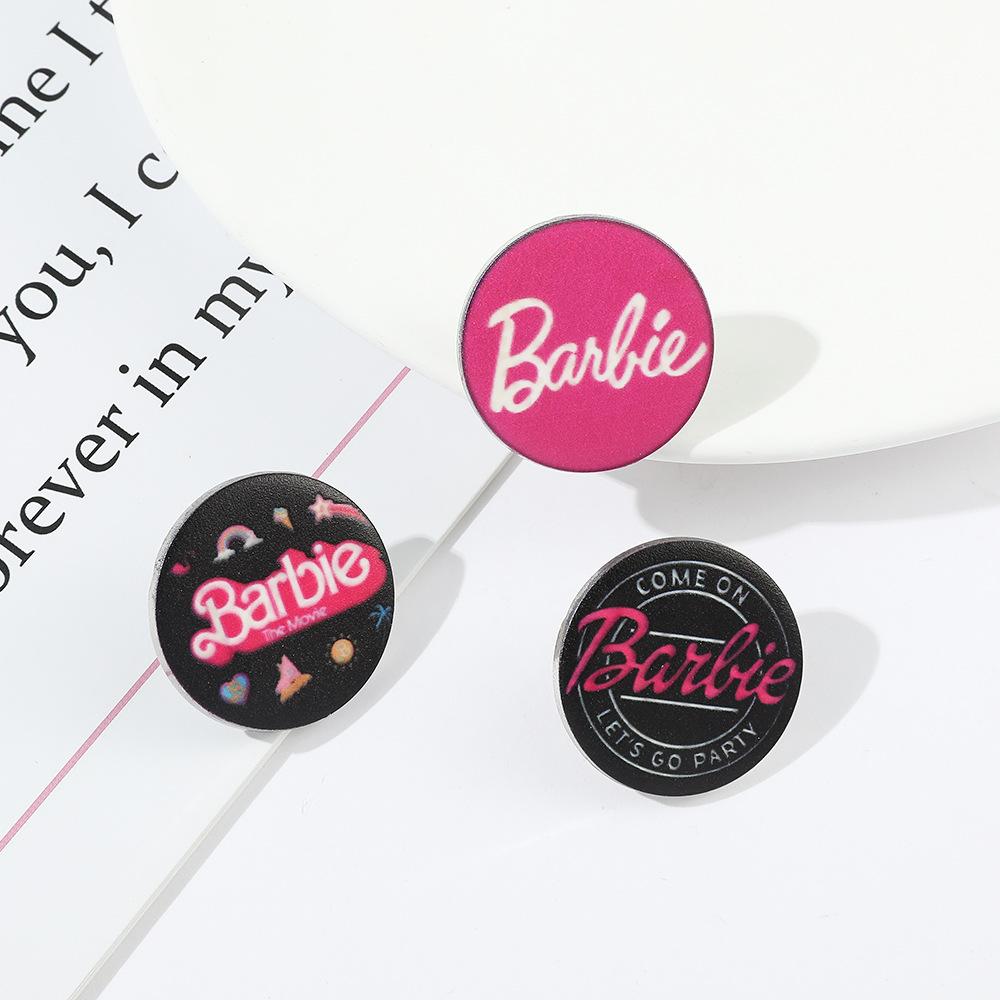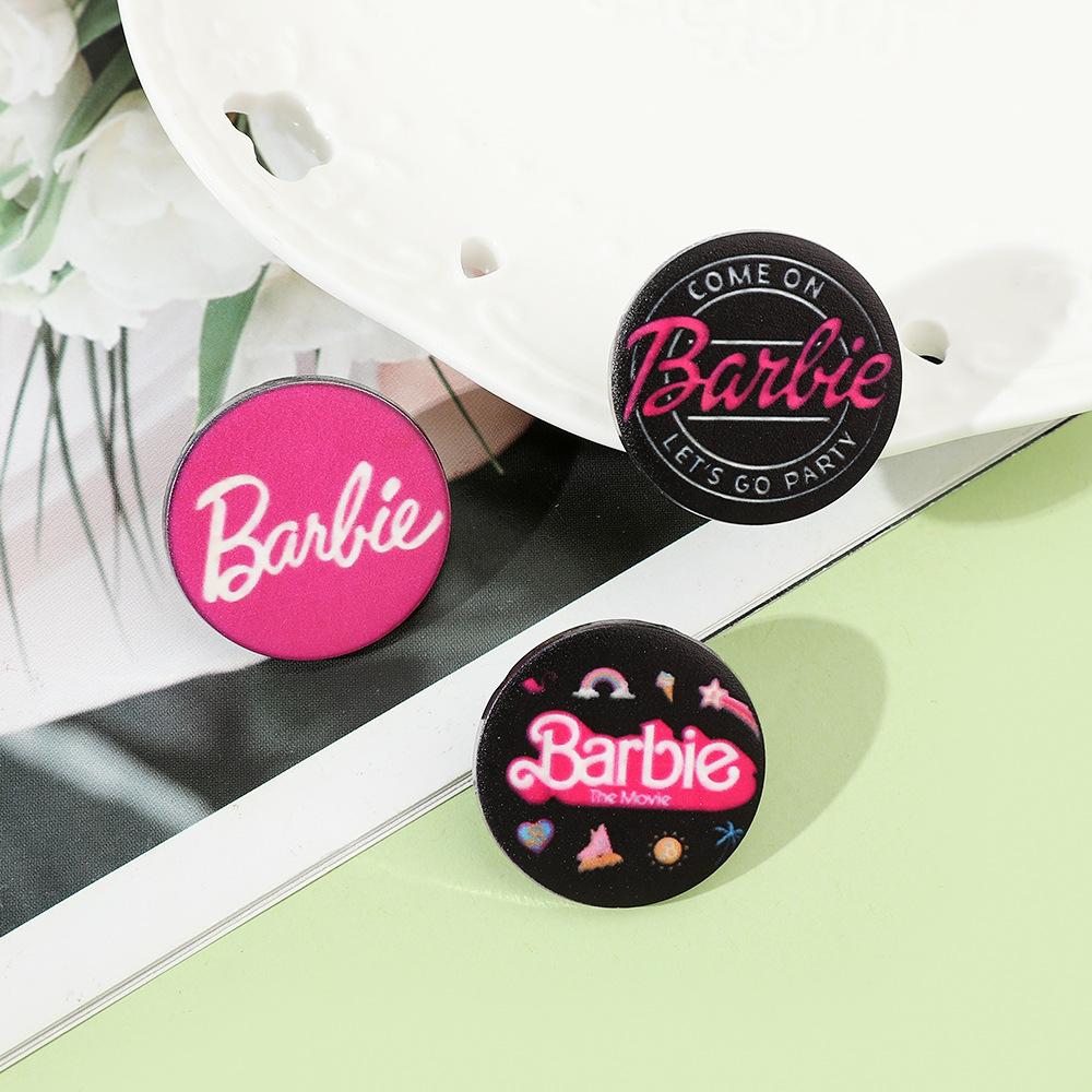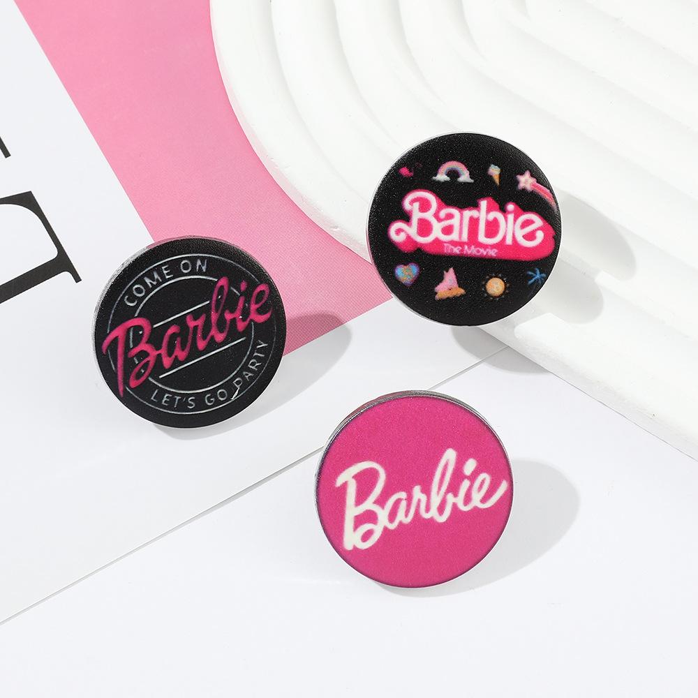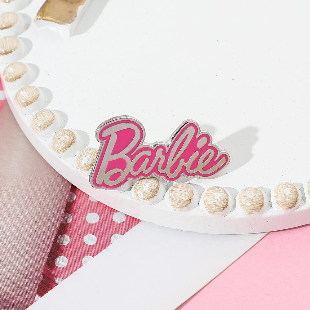 Broche de Barbie con letra inglesa rosa de metal, accesorio para bolso de aleación con goteo de aceite.