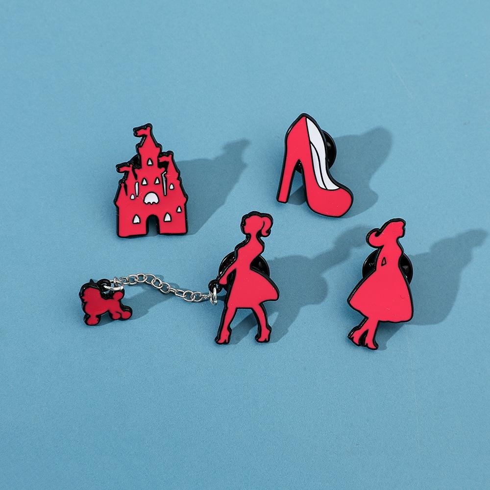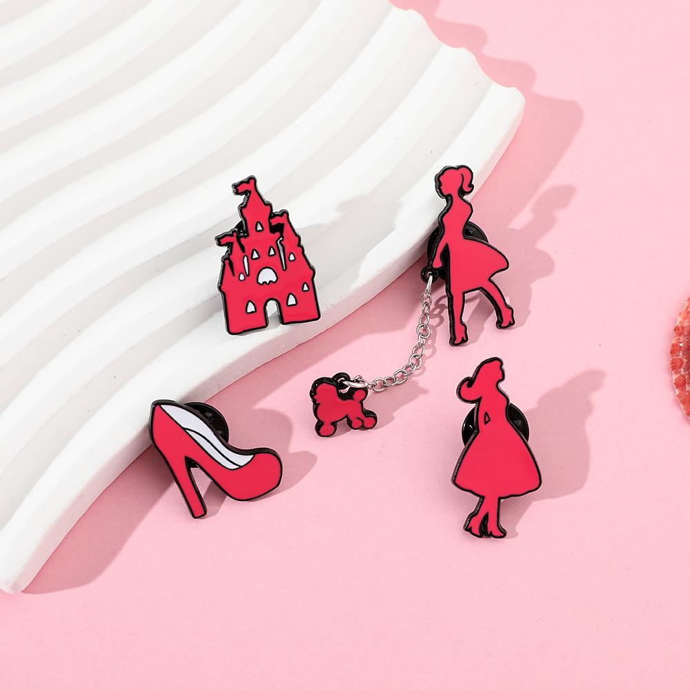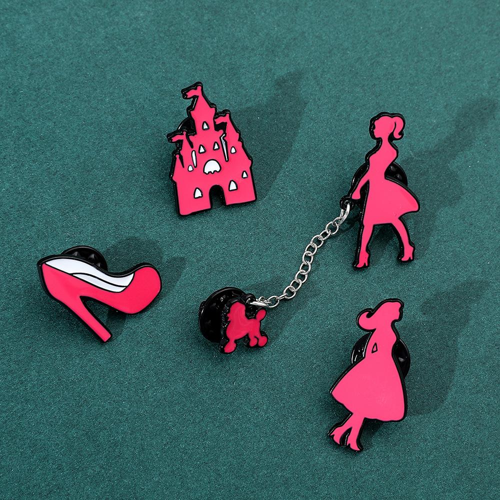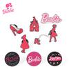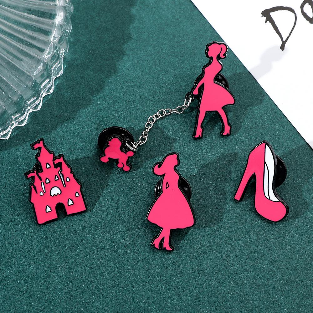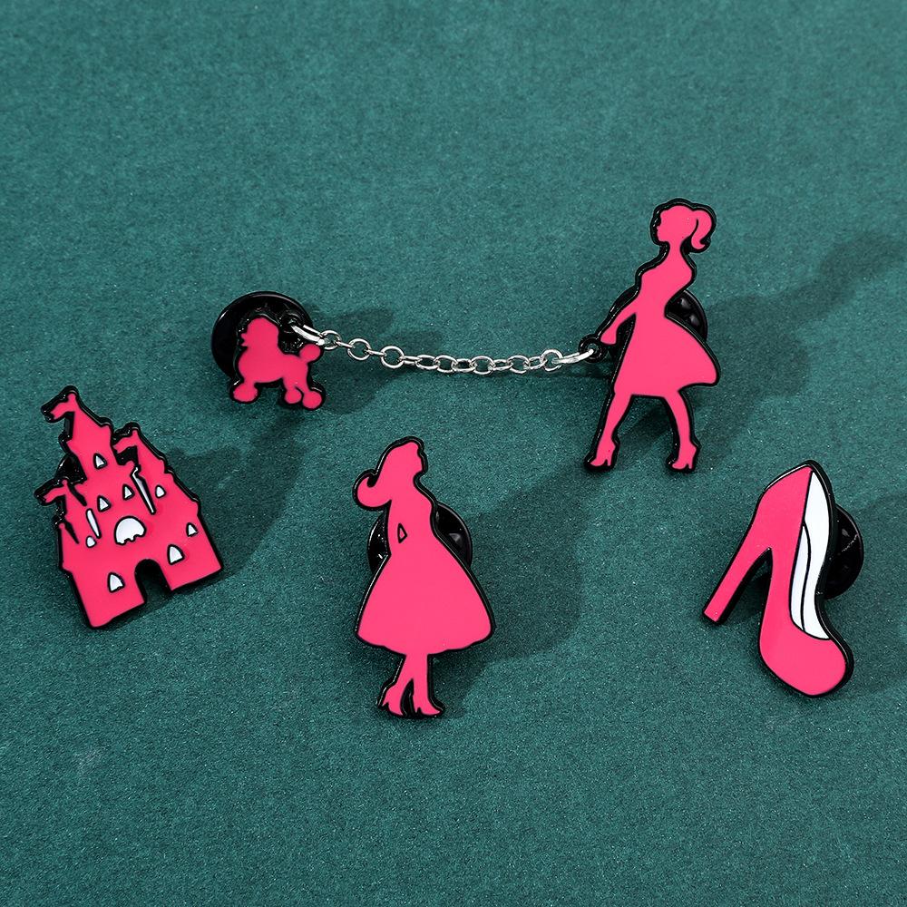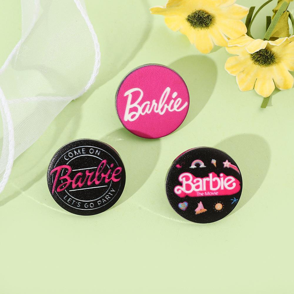 Broche de Barbie con letra inglesa rosa de metal, accesorio para bolso de aleación con goteo de aceite.