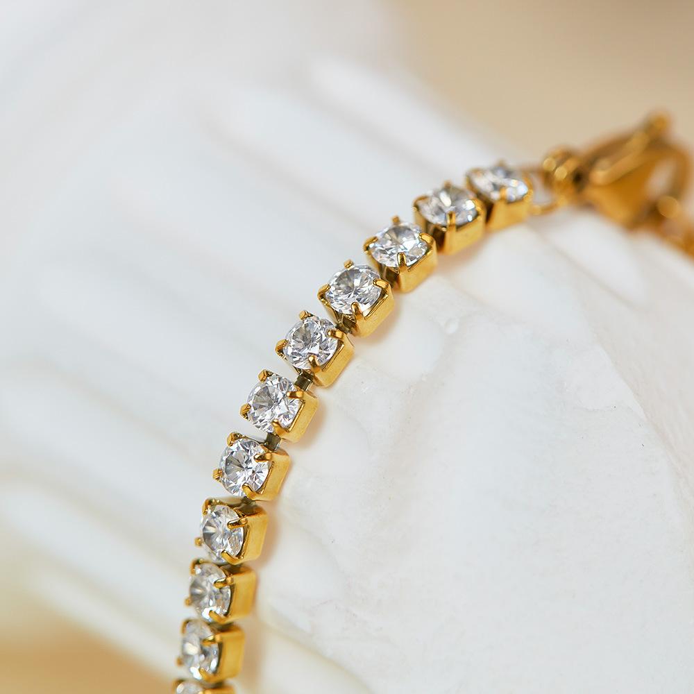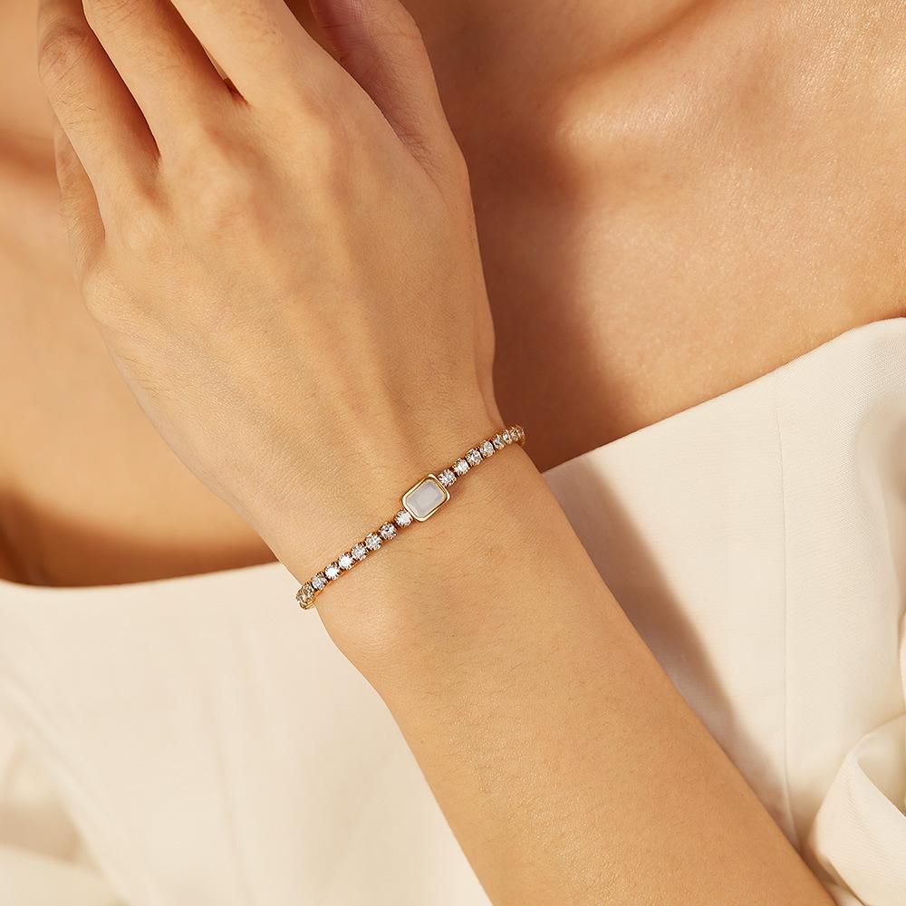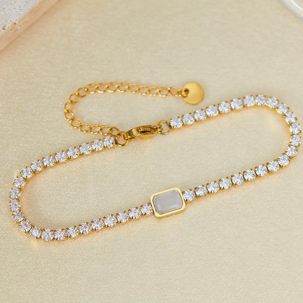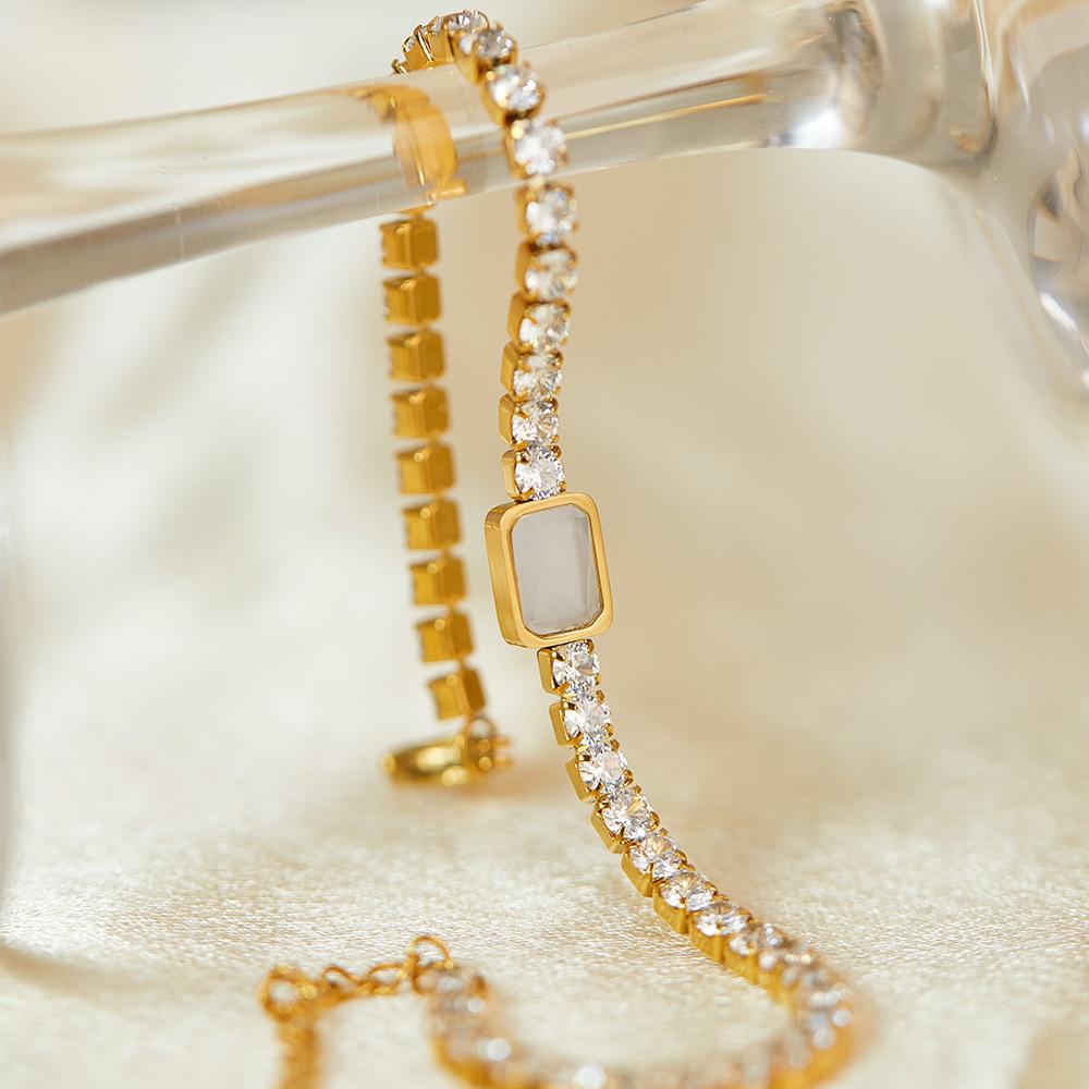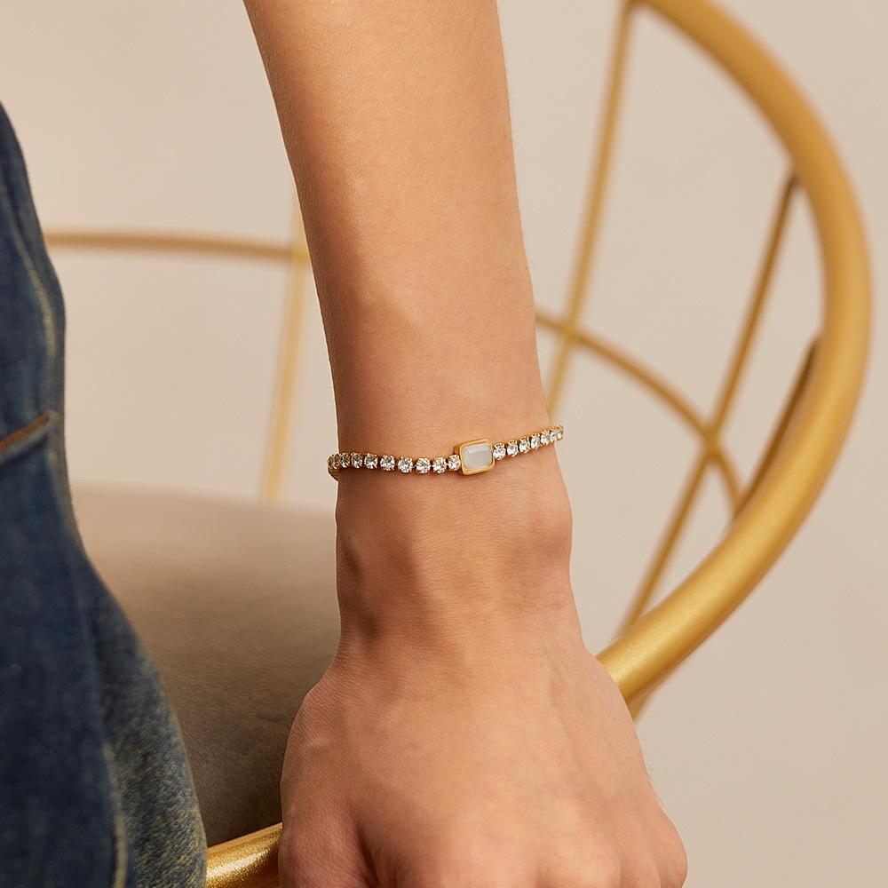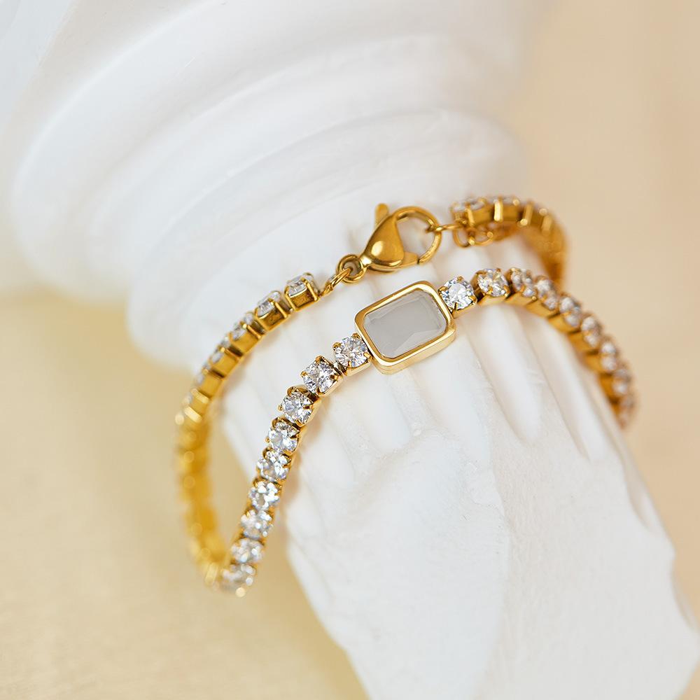 Pulsera OPK Transfronteriza Moda Europea y Americana Lujo Ligero Circonita para Mujer Acero Inoxidable Alta Gama Combinable Chapada en Oro Acero Titanio