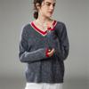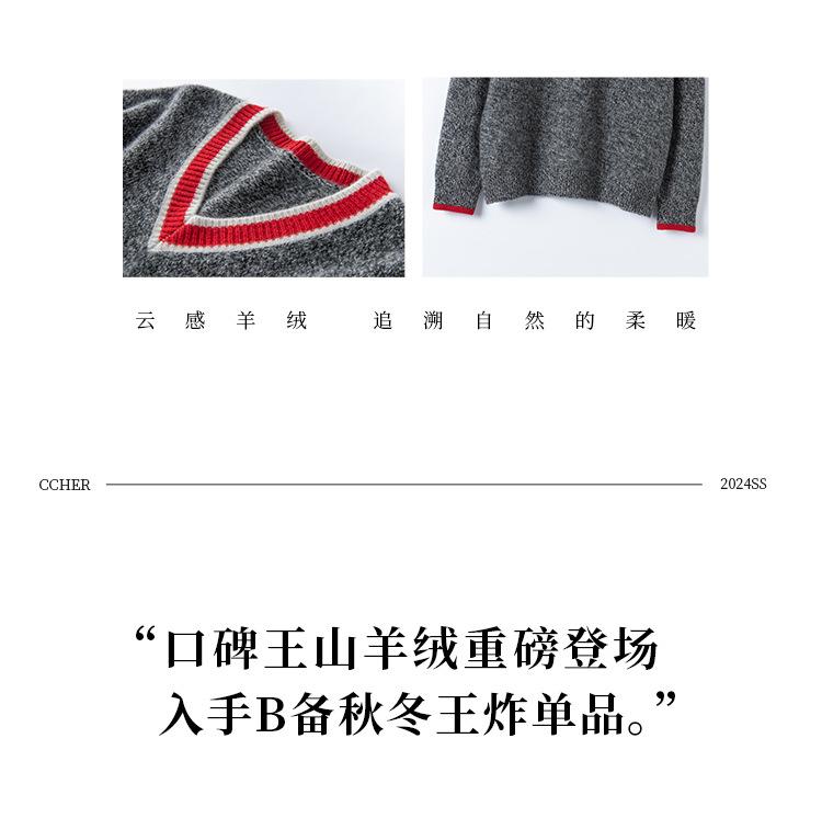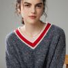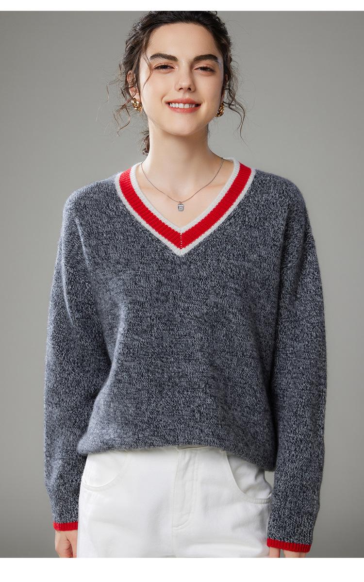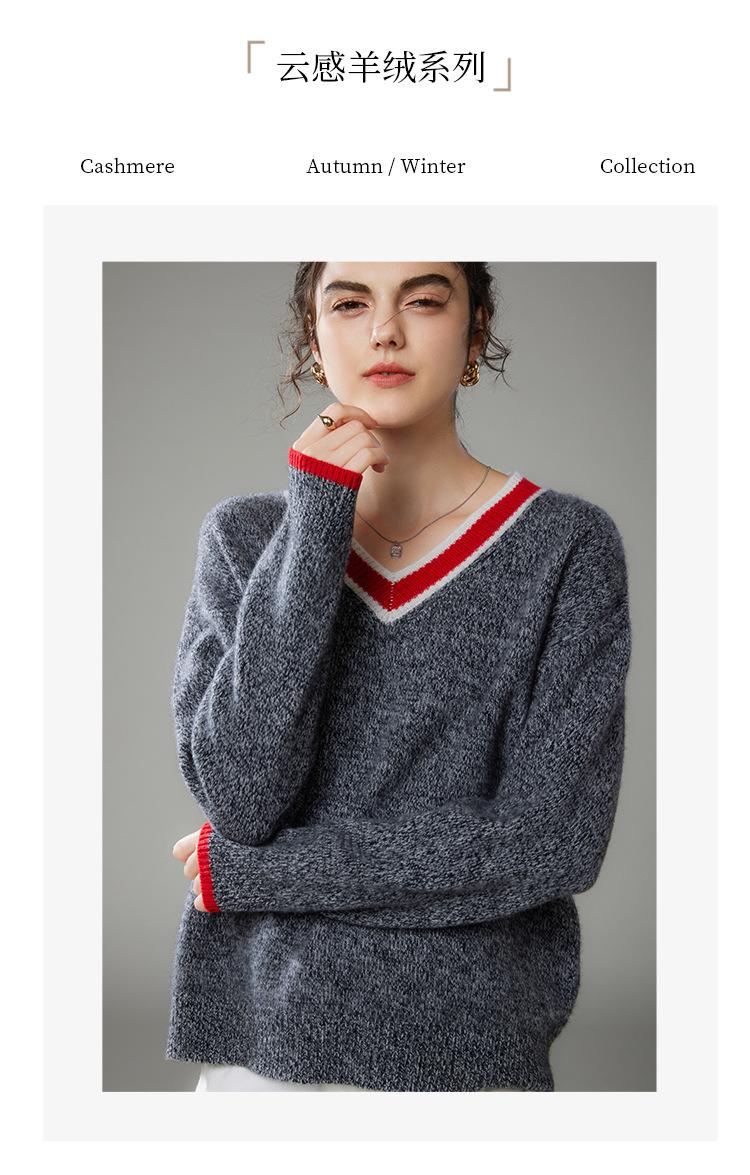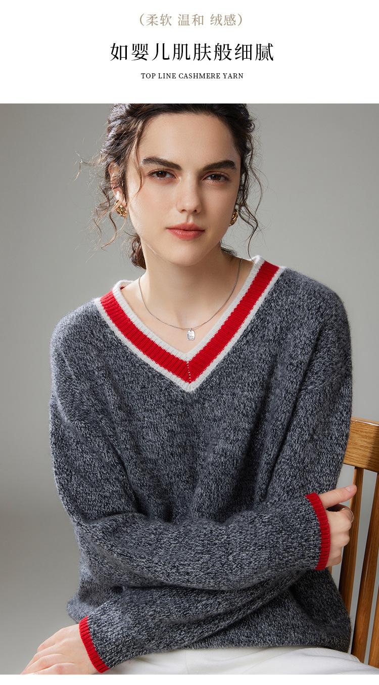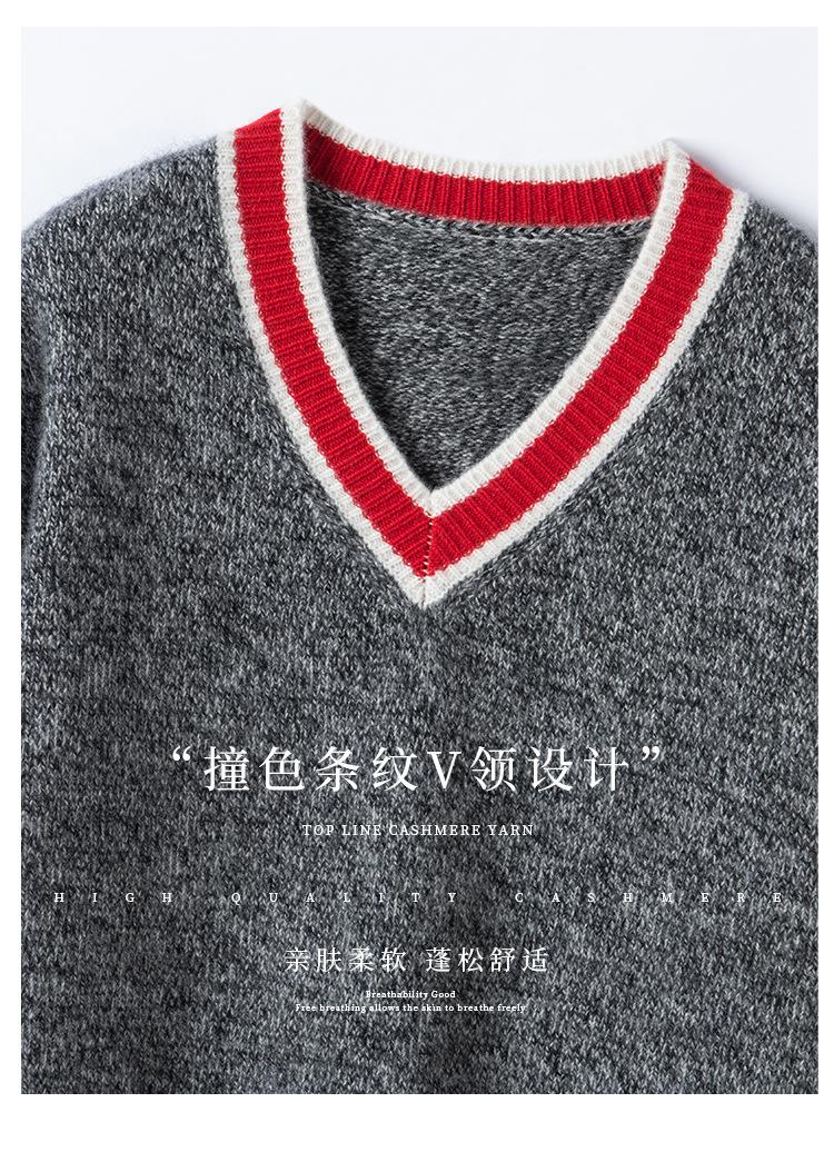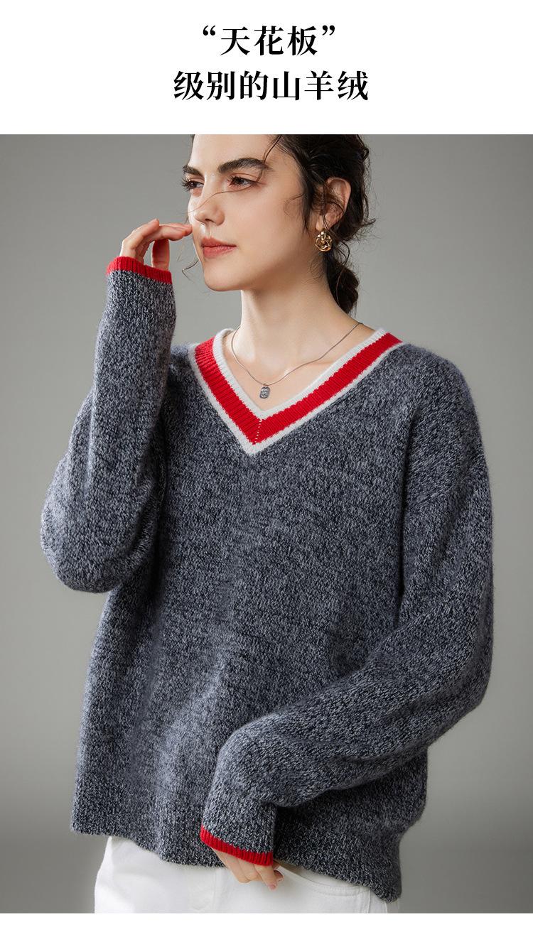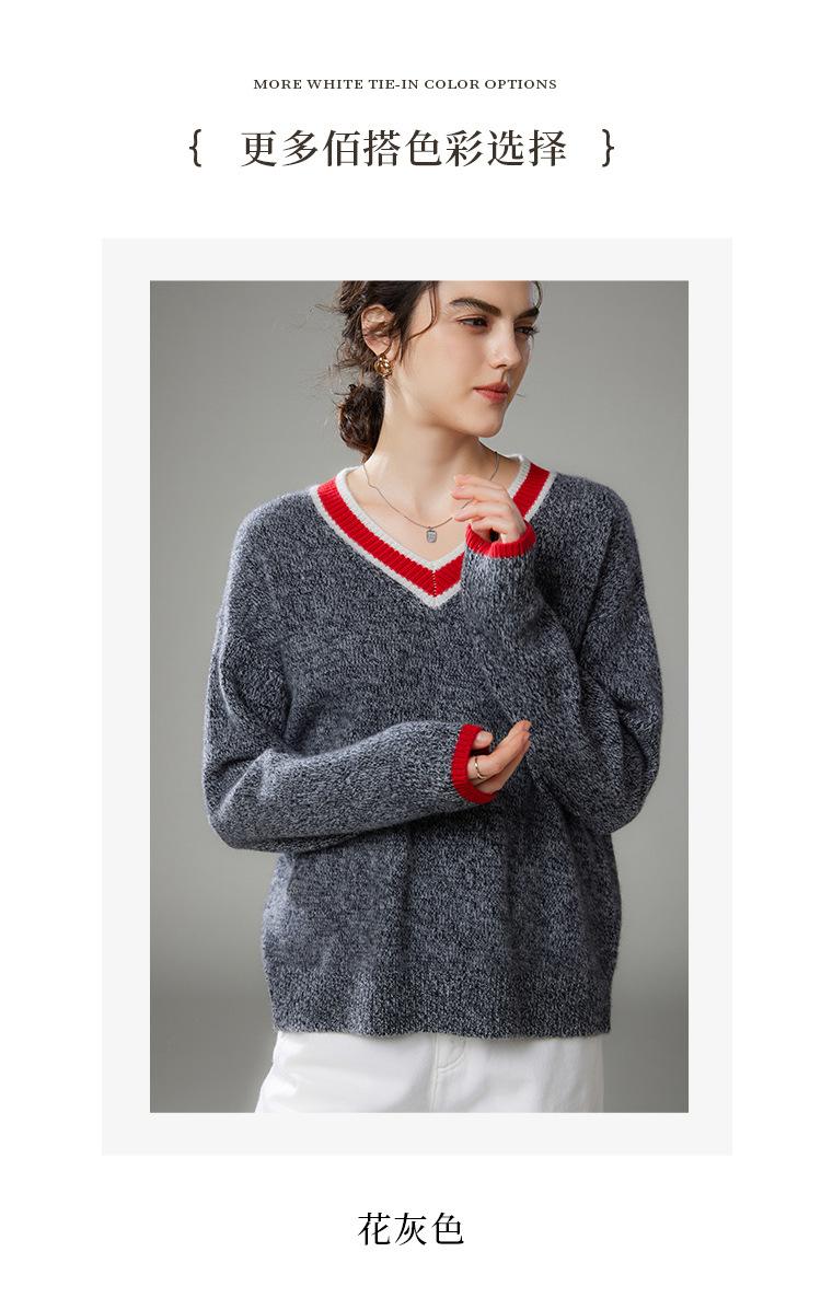 Suéter de Cachemira Simple Estilo Nuevo para Mujer Cuello en V Combinación de Colores Estilo Relajado Otoño e Invierno Suéter Grueso Color de Contraste Versátil Camisa Base