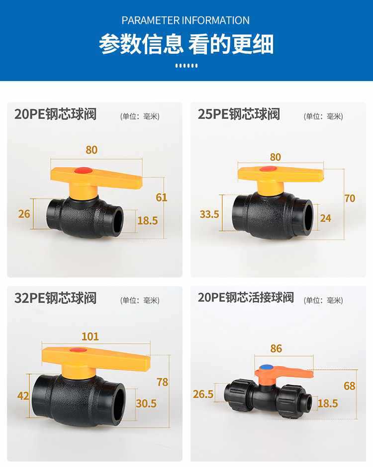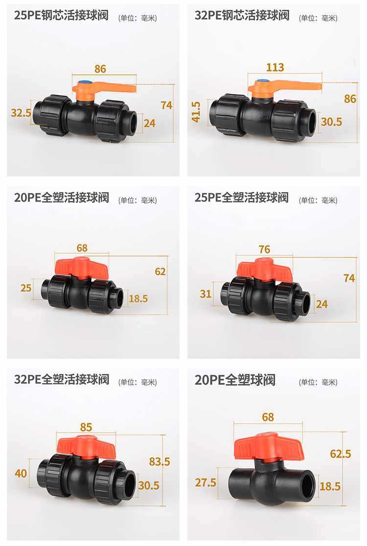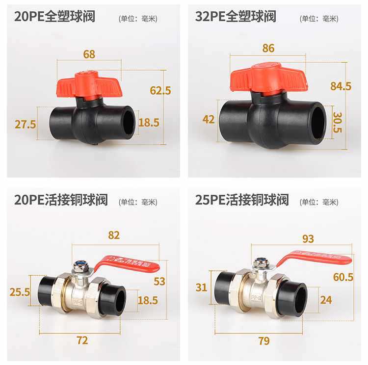 20pe(4 points) full plastic ball valve, 25pe(6 points) full plastic ball valve, 32pe(1-inch) full plastic ball...