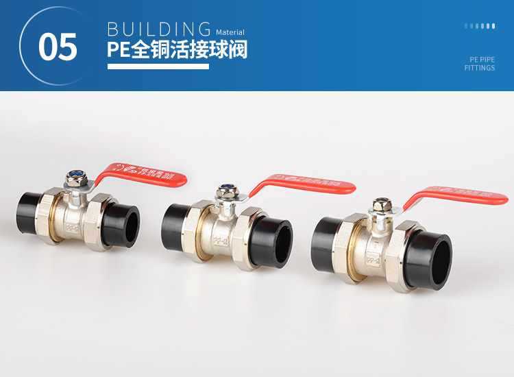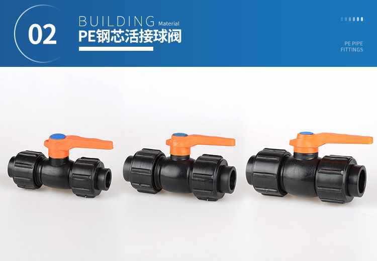Accesorios para tuberías de PE, accesorios para tuberías de agua de grifo, interruptor de fusión en caliente, válvula de bola con núcleo de acero y junta suelta doble de plástico, válvula de 20, 25 y 32 PE